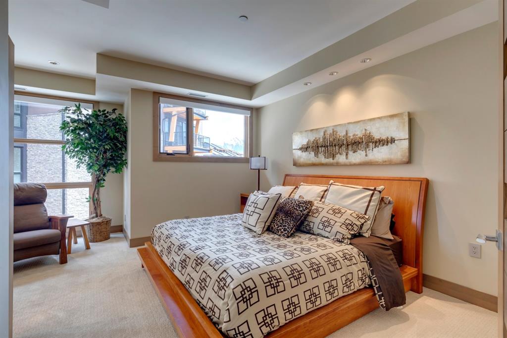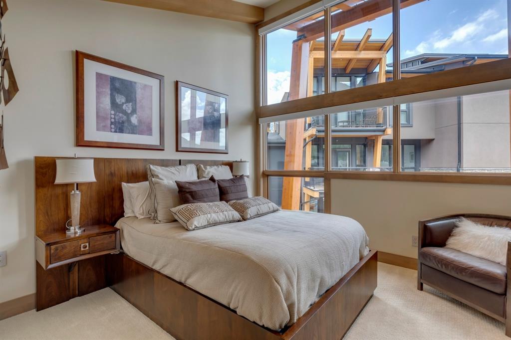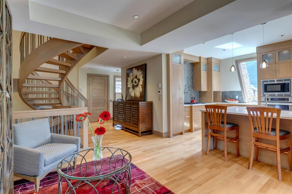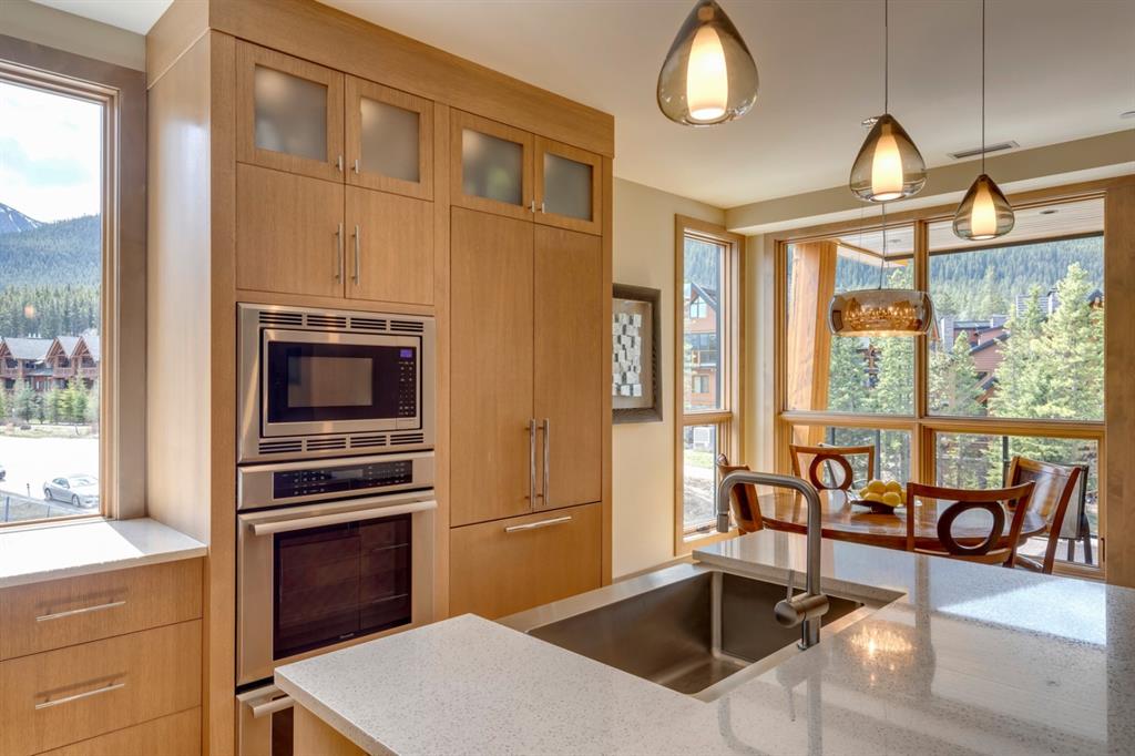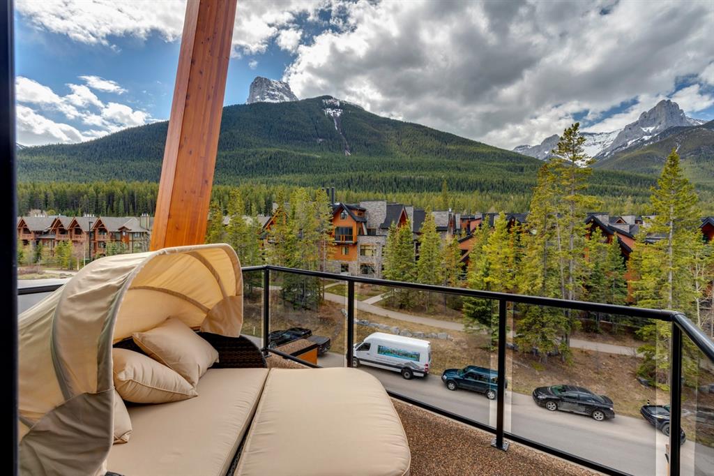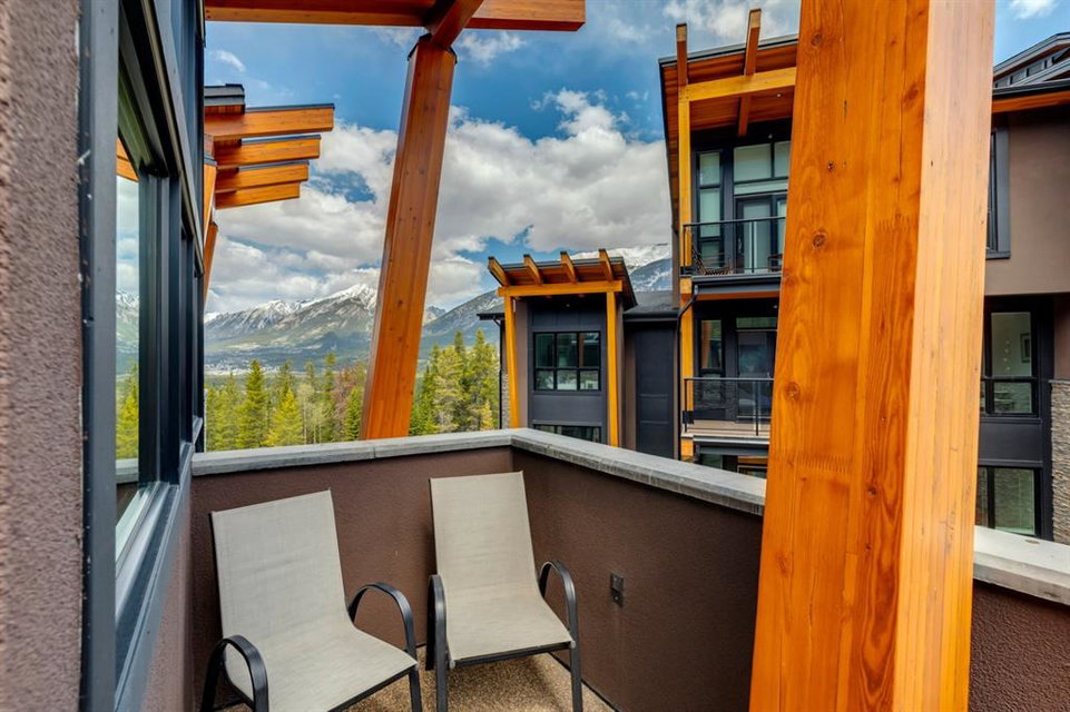 An incredible opportunity to own the ultimate luxury mountain property. This meticulously cared for and immaculate 3 bedroom, 3.5 bathroom townhouse with a private elevator exudes style and endless conveniences making it perfect for those looking for a full time property or part time vacation home. The stunning exterior architecture of the Renaissance development situated in desirable Three Sisters allows for unparalleled mountain views with a timeless exterior that will be as appealing in decades as it is today. The main level of the property is complete with an open concept living and dining area with the quality of finishing you’d expect – built-in Thermador appliances, a gas cooktop with pot filler, and farmhouse style sink. The kitchen overlooks the dining and living area and a gas fireplace is central to the living area and formal dining / flex space. Walls of windows and a large covered balcony off the dining area provide breathtaking viewings all year long. The main level is complete with a powder room, laundry room, and a large bedroom with full en suite including heated flooring, steam shower and endless windows to capture the views all day. The private elevator services the lowest level off the parkade, main level for front door entrance and main living level – making this the perfect fit for those who don’t want to be concerned about stairs. The top floor has two expansive bedrooms with large windows providing views from all sides. The master is complete with exposed structural beams, custom built closets, a private balcony, 3-way fireplace and oversized steam shower in addition to a soaker tub, private water closet and dual vanity all with in-floor heat. The third bedroom on the top level has its own private balcony and en suite also complete with a steam shower and in-floor heat. This property truly defines luxury from its custom built wooden spiral staircases, imported tile wainscotting, Brizo fixtures, and stunning design with windows covering all angles. If you’re looking for mountain luxury, this is it! Two heated underground parking stalls are included with the property and have direct entrance to the property where you’ll find a large mud room and additional storage space. Fun Fact: Dwayne Johnson viewed numerous properties to reside in while filming in the area, and this was his home of choice.