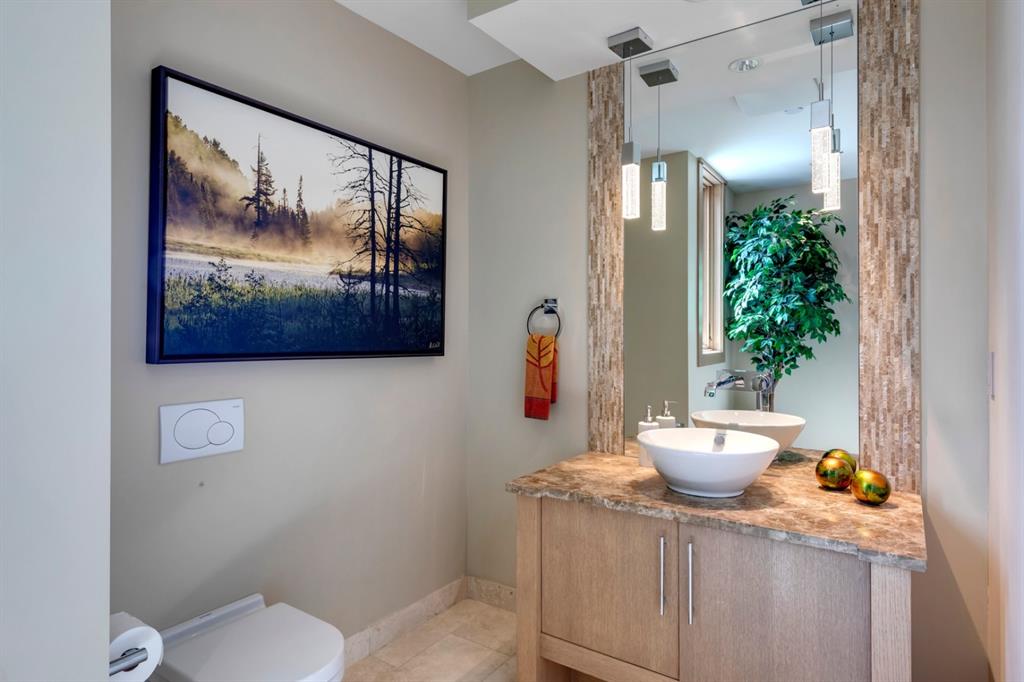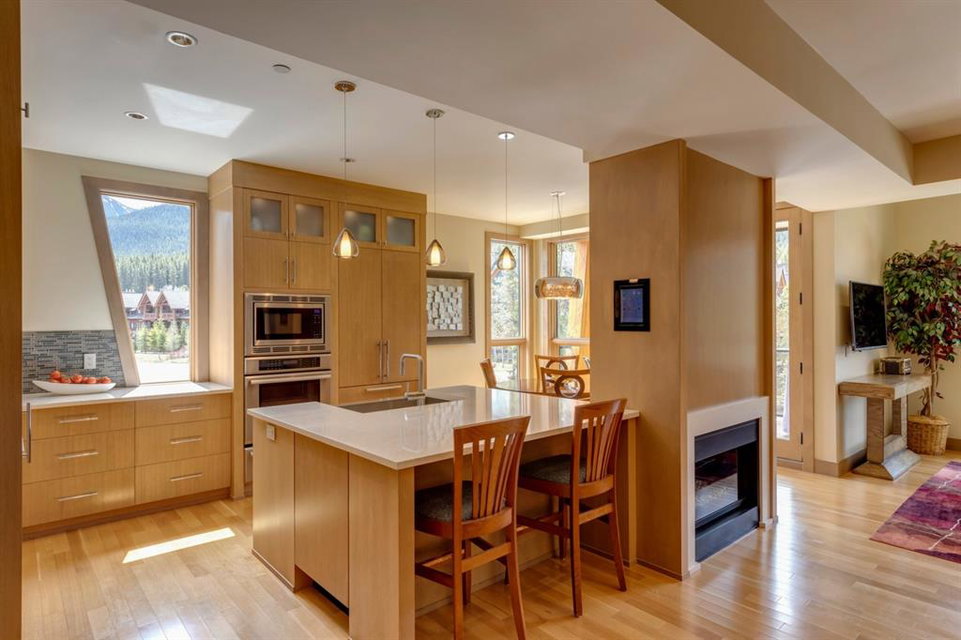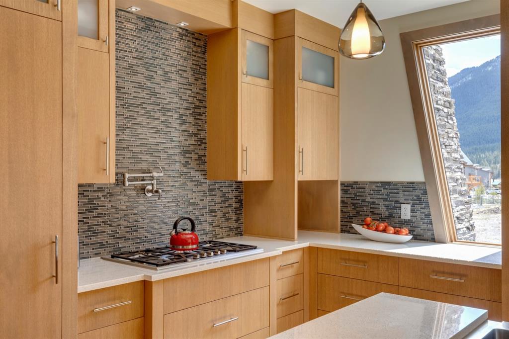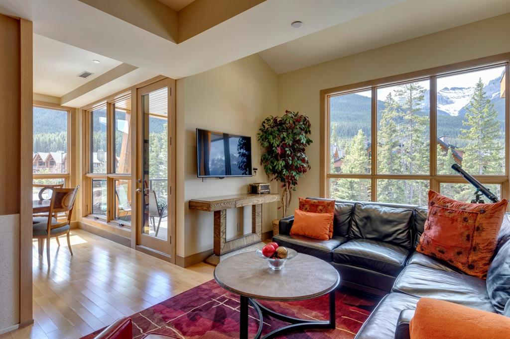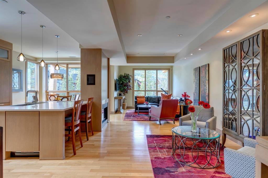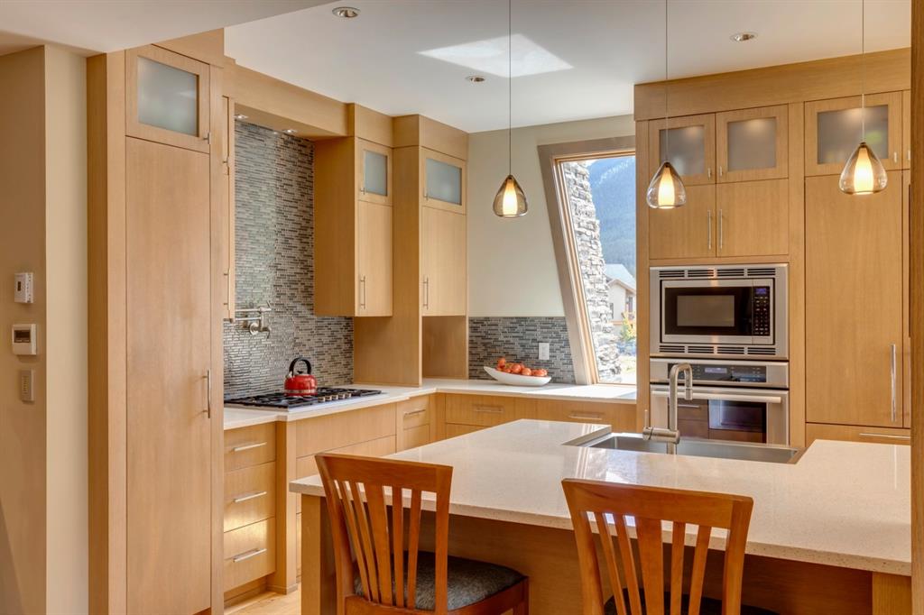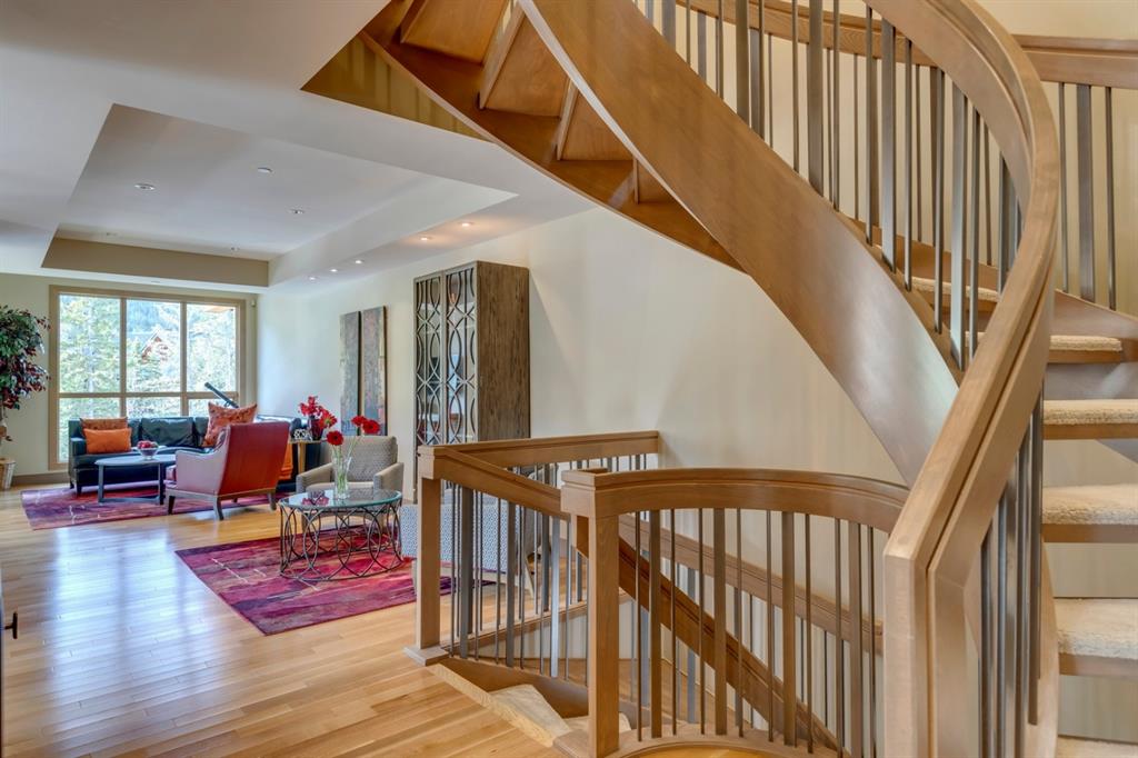 An incredible opportunity to own the ultimate luxury mountain property. This meticulously cared for and immaculate 3 bedroom, 3.5 bathroom townhouse with a private elevator exudes style and endless conveniences making it perfect for those looking for a full time property or part time vacation home. The stunning exterior architecture of the Renaissance development situated in desirable Three Sisters allows for unparalleled mountain views with a timeless exterior that will be as appealing in decades as it is today. The main level of the property is complete with an open concept living and dining area with the quality of finishing you’d expect – built-in Thermador appliances, a gas cooktop with pot filler, and farmhouse style sink. The kitchen overlooks the dining and living area and a gas fireplace is central to the living area and formal dining / flex space. Walls of windows and a large covered balcony off the dining area provide breathtaking viewings all year long. The main level is complete with a powder room, laundry room, and a large bedroom with full en suite including heated flooring, steam shower and endless windows to capture the views all day. The private elevator services the lowest level off the parkade, main level for front door entrance and main living level – making this the perfect fit for those who don’t want to be concerned about stairs. The top floor has two expansive bedrooms with large windows providing views from all sides. The master is complete with exposed structural beams, custom built closets, a private balcony, 3-way fireplace and oversized steam shower in addition to a soaker tub, private water closet and dual vanity all with in-floor heat. The third bedroom on the top level has its own private balcony and en suite also complete with a steam shower and in-floor heat. This property truly defines luxury from its custom built wooden spiral staircases, imported tile wainscotting, Brizo fixtures, and stunning design with windows covering all angles. If you’re looking for mountain luxury, this is it! Two heated underground parking stalls are included with the property and have direct entrance to the property where you’ll find a large mud room and additional storage space. Fun Fact: Dwayne Johnson viewed numerous properties to reside in while filming in the area, and this was his home of choice.