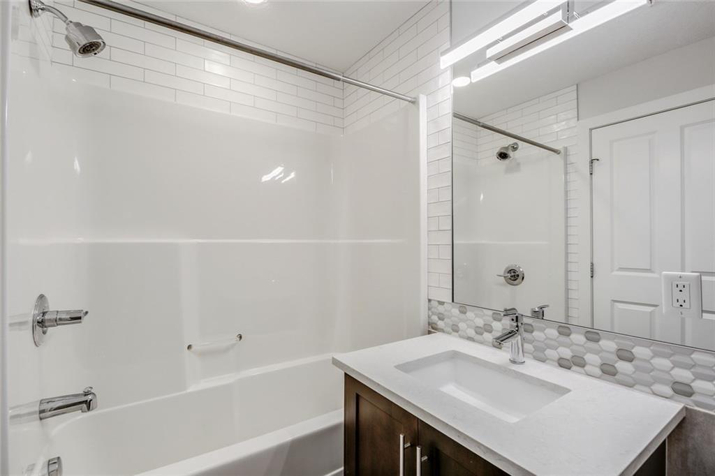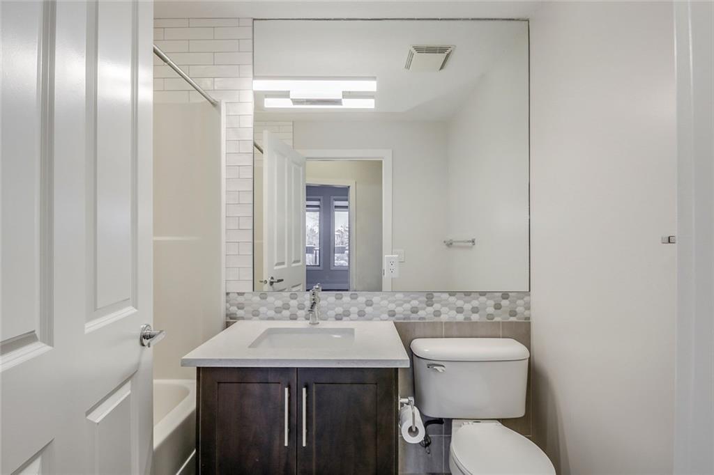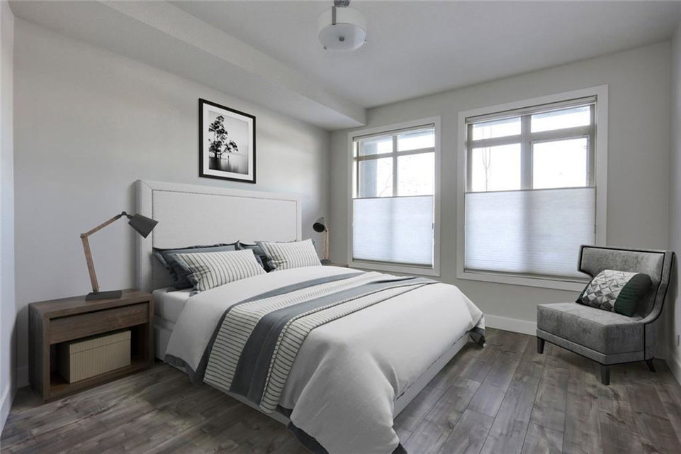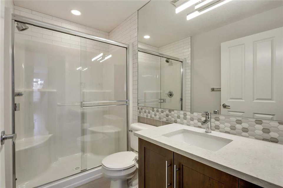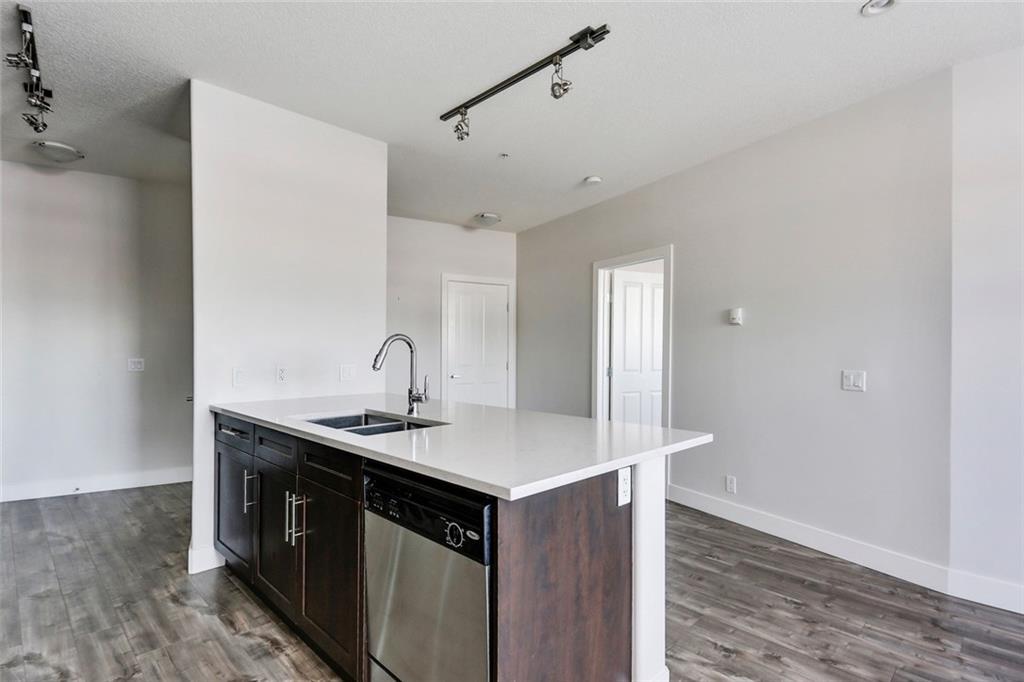 Completely renovated and updated 2 bathroom, 1 bedroom + den condo located in the desirable community of Killarney. The open concept living and dining area provide the perfect space for entertaining. Kitchen is complete with quartz countertops including an expansive 8′ quartz peninsula that offers ample room for dining. New laminate flooring flows throughout the entire condo! The large master bedroom has ample room for a king bed and has a large walk-through closet that leads into the full ensuite. A large den provides the perfect space for a home office, TV room, or second bedroom, which is located next to the second full bathroom with walk-in shower. Titled underground parking stall keeps your vehicle safe and warm all year round. Walk to the LRT in minutes, take advantage of the Killarney Aquatic Centre across the street or relax in the two-city-block park located directly across the street. Newer building with a fully renovated unit in the heart of Killarney – Main Floor PET FRIENDLY – so convenient!