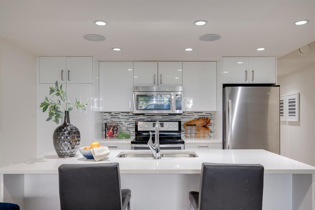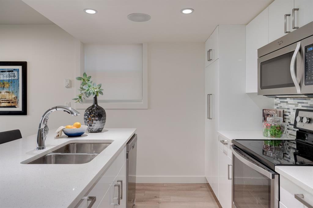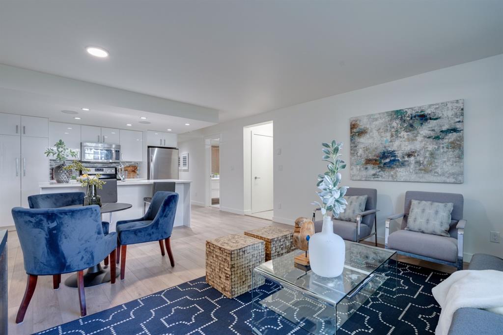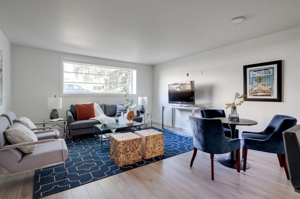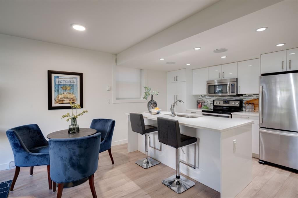 Located in the heart of Marda Loop, this 2 bedroom condo is perfect for young professionals or first time buyers looking for a home and a lifestyle. Just a block from 33rd Avenue with countless amenities, this like-new condo was professionally renovated only a few years ago and has just been freshly painted throughout. Resilient laminate flooring flows throughout the unit (no carpet) and the kitchen is finished with timeless white cabinets, quartz countertops and stainless steel appliances. Large windows allow for natural light to pour through all day long. The large master bedroom has ample space for a king bed and the second bedroom can also double as a home office if desired. The building has a communal outdoor living area and a parking stall included with the unit. Finding a property that is nearly 800 square feet in the heart of Marda Loop in a fully renovated building with 2 bedrooms, in-suite laundry and a wide open living space is rare! Perfect for investors and young professionals, this property won’t disappoint.