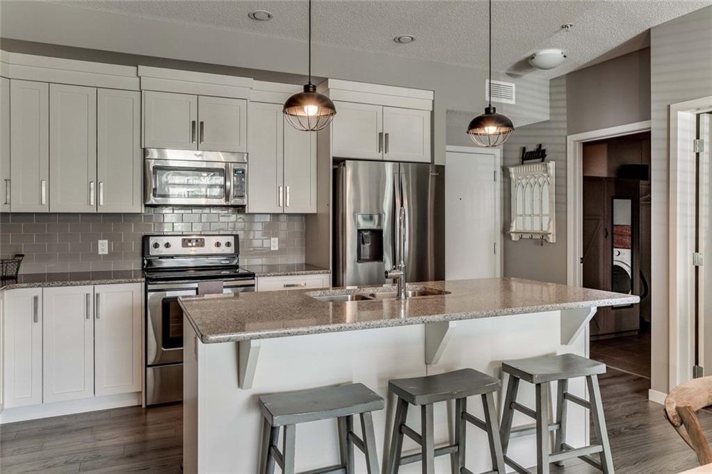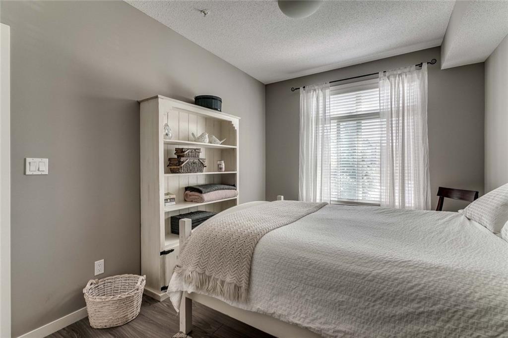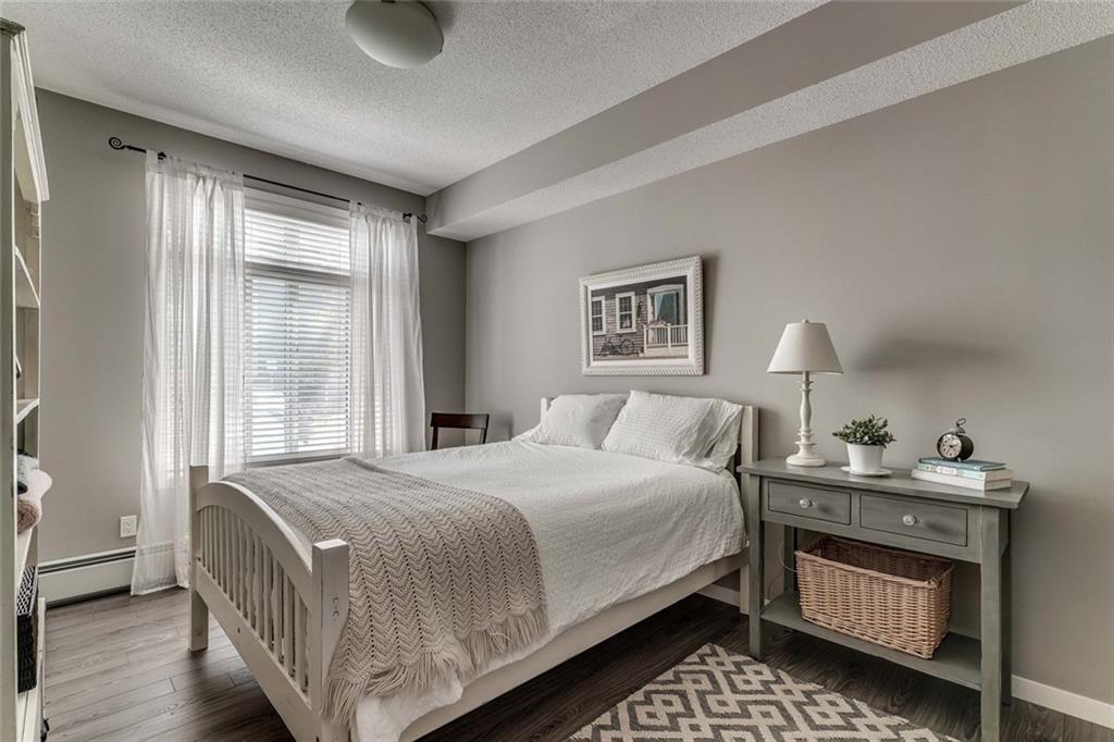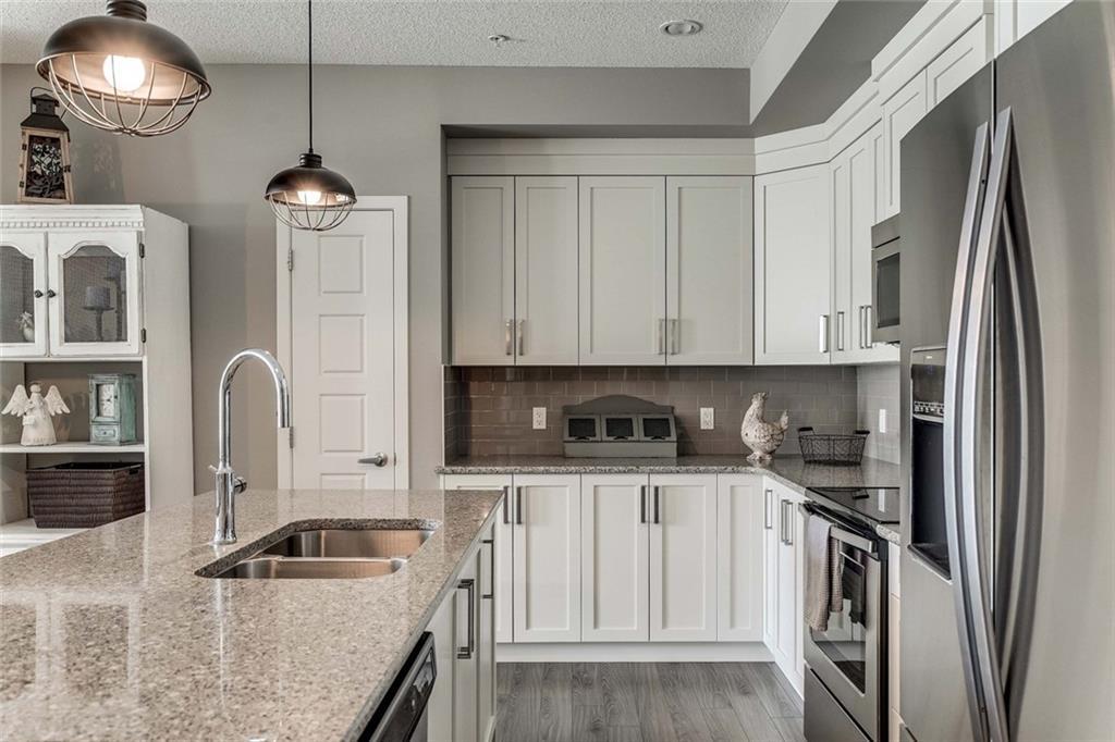 Immaculate 2 bedroom, 2 bathroom main level condo with south exposure! This bright and beautiful condo features a wall of south windows allowing for natural light to flow through the entire space all day long. The open concept design has a timeless white kitchen that opens to the living and dining area. Ceiling-height cabinets, premium appliances including fridge with waterline, custom lighting and a quartz island with additional seating complete the bright kitchen. The living area has a functional layout and a complete wall of windows ensuring a bright space all day. The large master bedroom has a walk-through closet that leads to the private ensuite with walk-in shower. A second bedroom, main bathroom, and large laundry / storage room complete this unit. Titled underground parking and private storage will keep your vehicle and belongings warm and safe all year long. Conveniently located on the main level, this bright condo is easily accessible, meticulously cared for and move in ready!