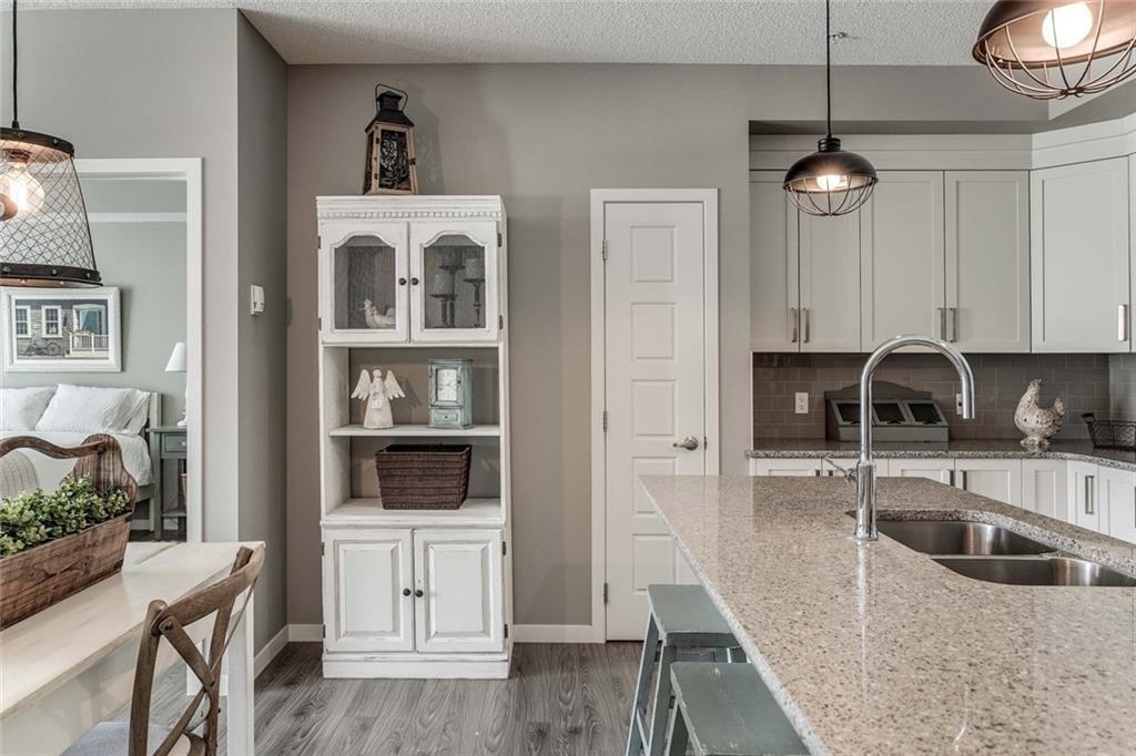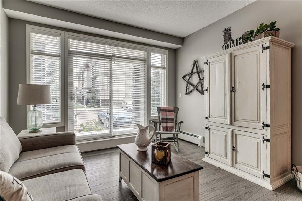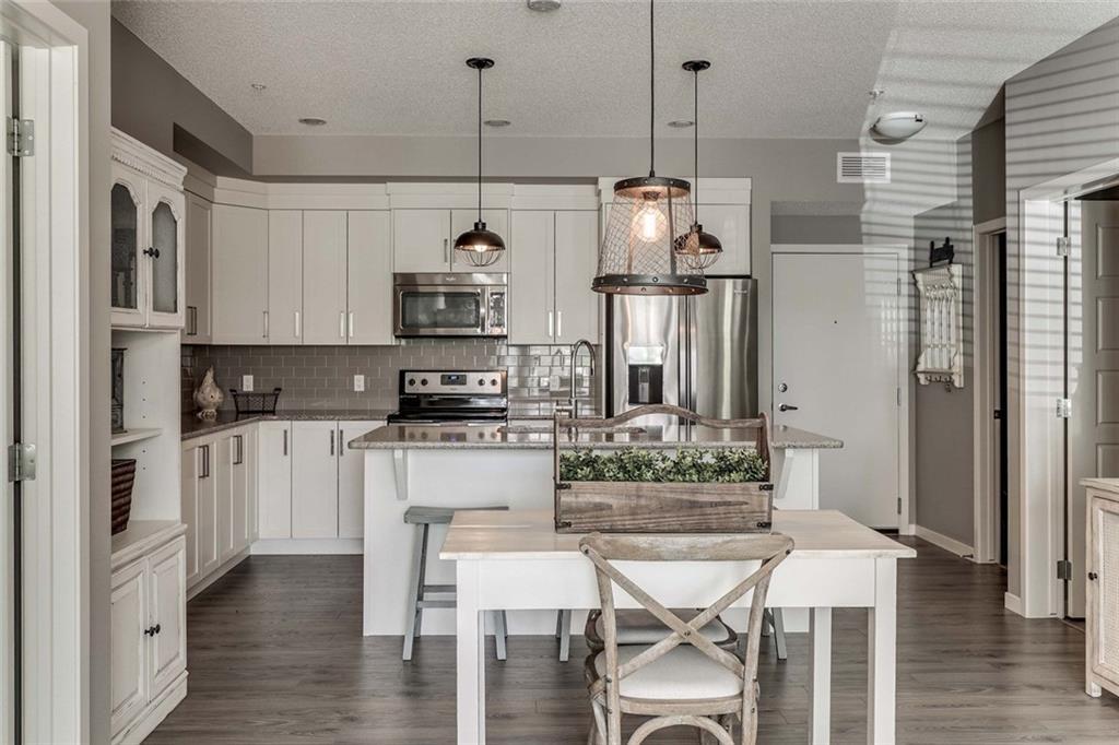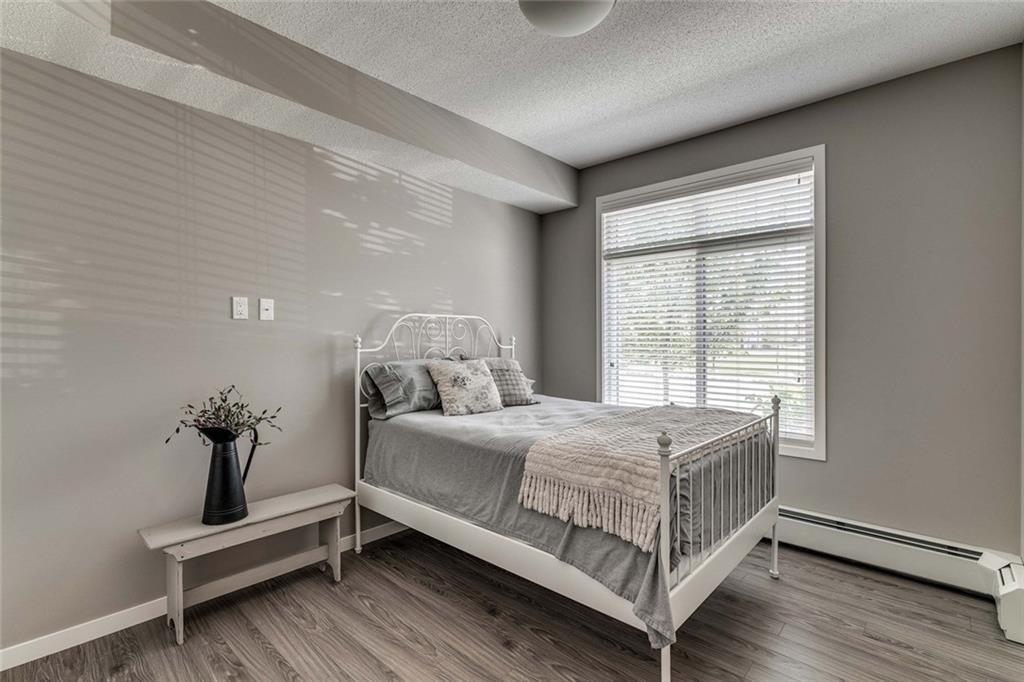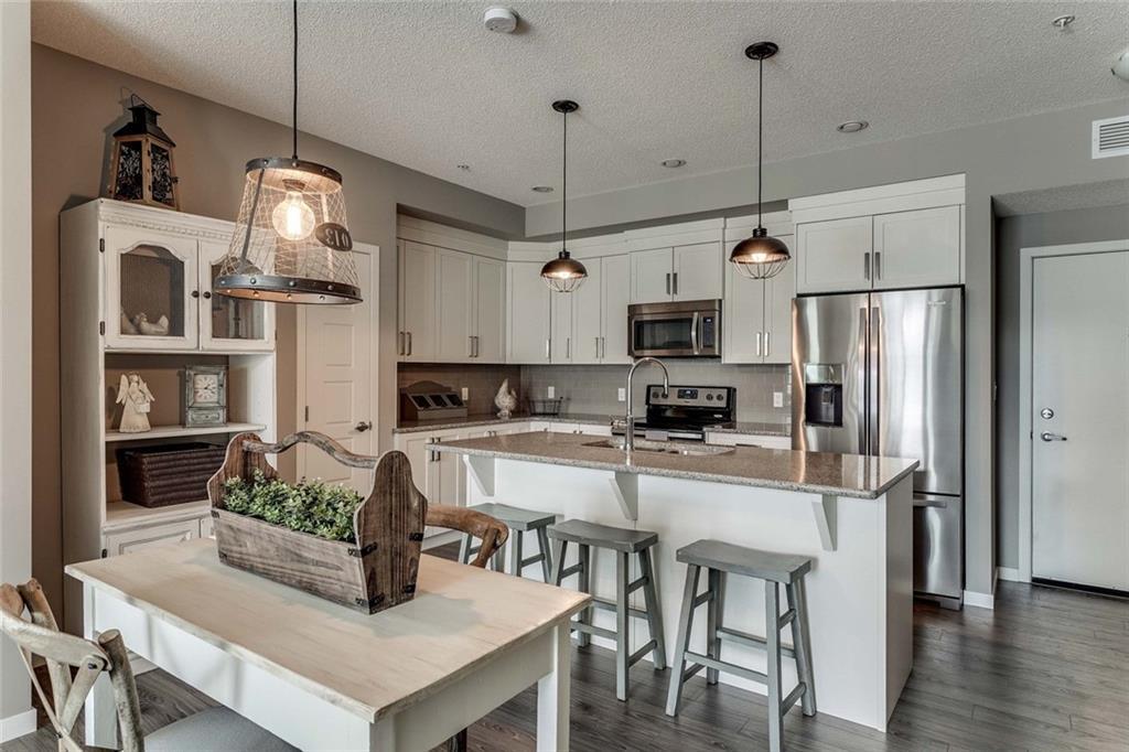 Immaculate 2 bedroom, 2 bathroom main level condo with south exposure! This bright and beautiful condo features a wall of south windows allowing for natural light to flow through the entire space all day long. The open concept design has a timeless white kitchen that opens to the living and dining area. Ceiling-height cabinets, premium appliances including fridge with waterline, custom lighting and a quartz island with additional seating complete the bright kitchen. The living area has a functional layout and a complete wall of windows ensuring a bright space all day. The large master bedroom has a walk-through closet that leads to the private ensuite with walk-in shower. A second bedroom, main bathroom, and large laundry / storage room complete this unit. Titled underground parking and private storage will keep your vehicle and belongings warm and safe all year long. Conveniently located on the main level, this bright condo is easily accessible, meticulously cared for and move in ready!