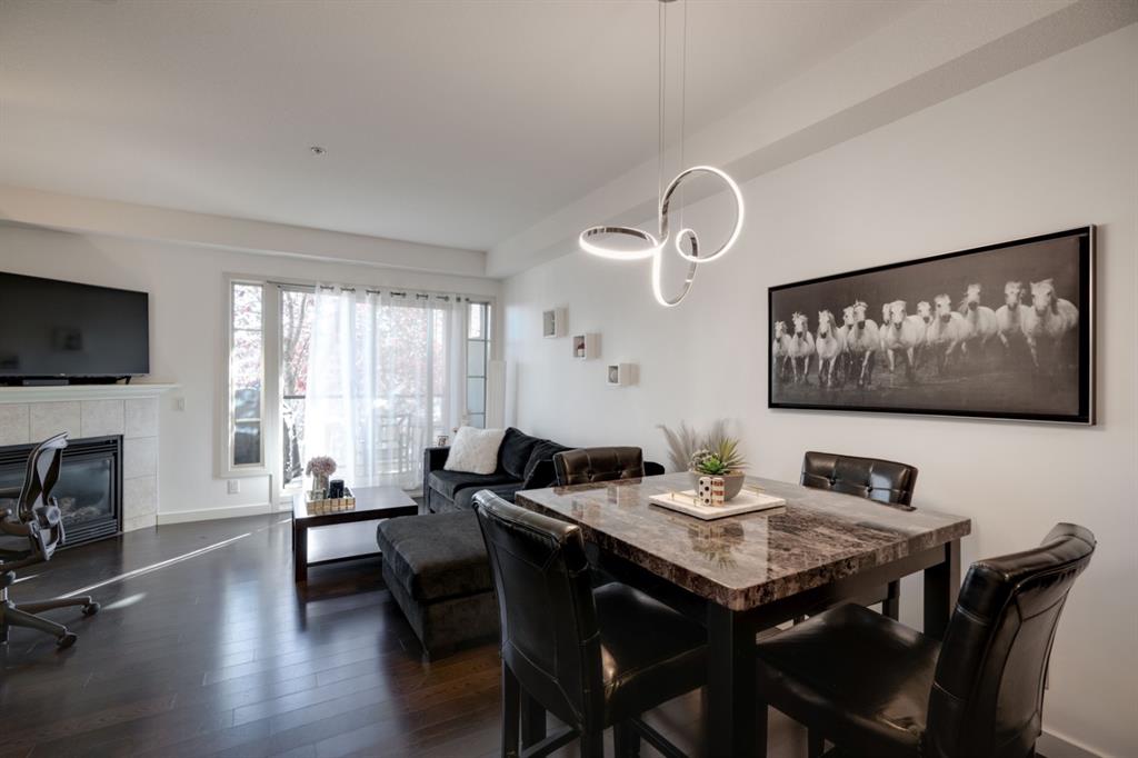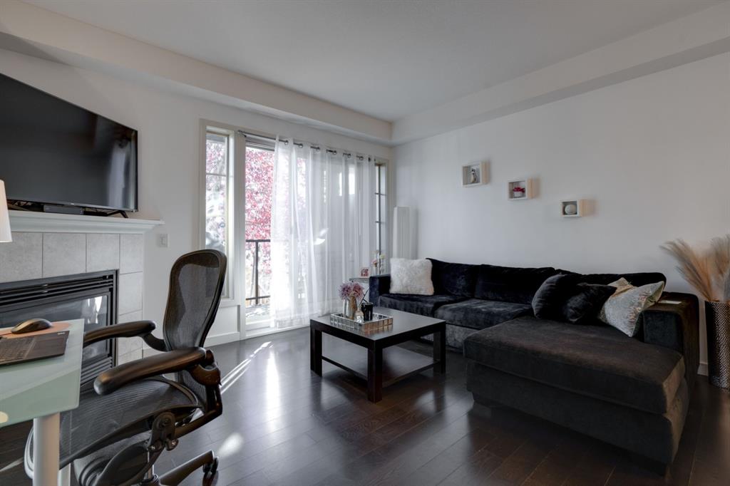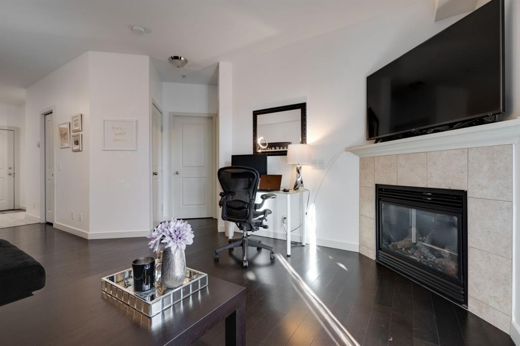 Welcome to the Orchard! This beautiful 1 Bedroom + Den inner city condo is perfect for investors, a working professional or a young couple. Located just steps away from coffee shops and restaurants and just minutes from Southern Alberta Institute of Technology (SAIT). The bright and open layout allows natural light into the entire home all day long. The well-maintained home includes an open concept with a kitchen that overlooks both living and dining areas perfect for entertaining guests. The living room is complete with a built-in gas fireplace keeping you cozy in the winter. The home is finished with rich wood cabinetry, stainless steel appliances and designer lighting. The primary bedroom is complete with a walk-through closet and a 4-piece en suite. The den provides a perfect work from home space or additional storage space. Additionally, the home has a 2-piece bathroom, in-suite laundry which offers added convenience to everyday living. The private balcony offers a perfect place to watch the sun rise while enjoying a morning coffee. Finishing the unit is an underground parking stall to keep your vehicle safe and secure year-round. Maintenance-free living in this charming condo offering incredible value for those wanting a 1 Bedroom + Den home. Stop renting and start building equity today. Come see all this amazing home has to offer!