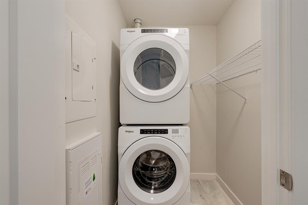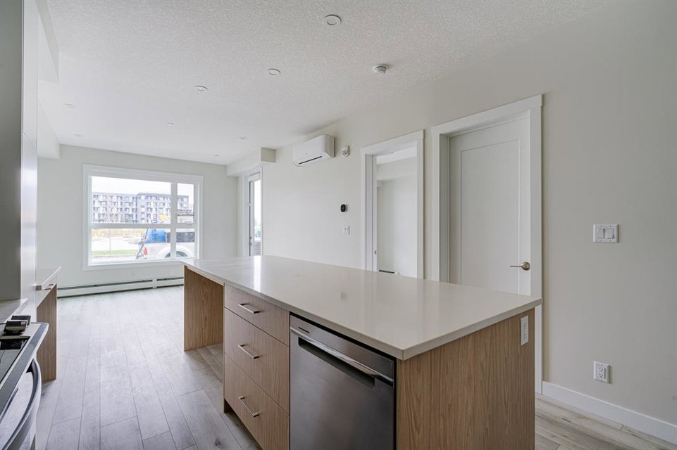 Welcome to Capella at University District! The ERI floor plan by Brookfield Residential features luxury vinyl plank floor throughout the open concept living space, full height kitchen cabinets with an oversized kitchen island, quartz countertops, beautiful gas range, window coverings and built-in desk. The main living areas provide the perfect space for entertaining with the dining area centering the living room and kitchen while the oversized patio adds over 100 sq. ft. of additional living space. The bedroom offers a peaceful space with picturesque views onto the Northwest Commons Park. The bathroom features quartz countertops, tile backsplash and a built-in floating shelf below the oversized mirror. With above and beyond sound attenuation methods, you will be able to enjoy some additional peace and quiet while soaking in the green space views. With Capella’s Built Green Gold certification, this high-efficiency home will have you enjoying monthly savings while living in luxury. University District has all the amenities an owner could desire with shopping, restaurants, banks, fitness studios and a movie theatre.