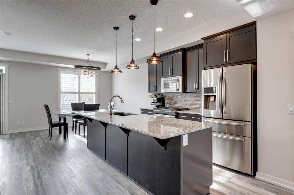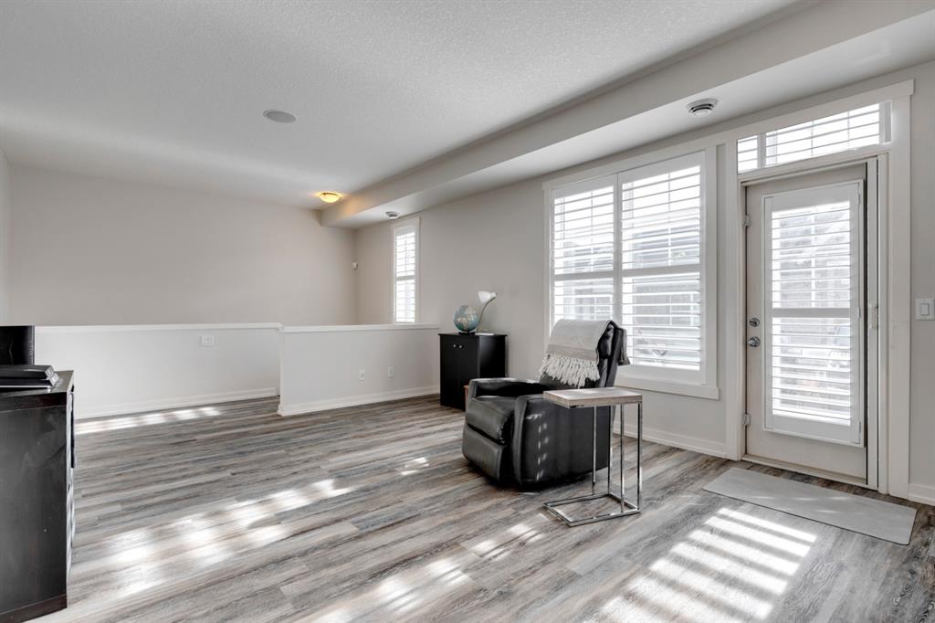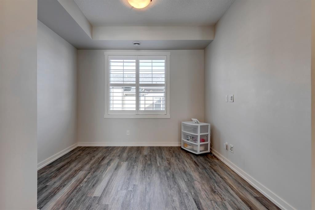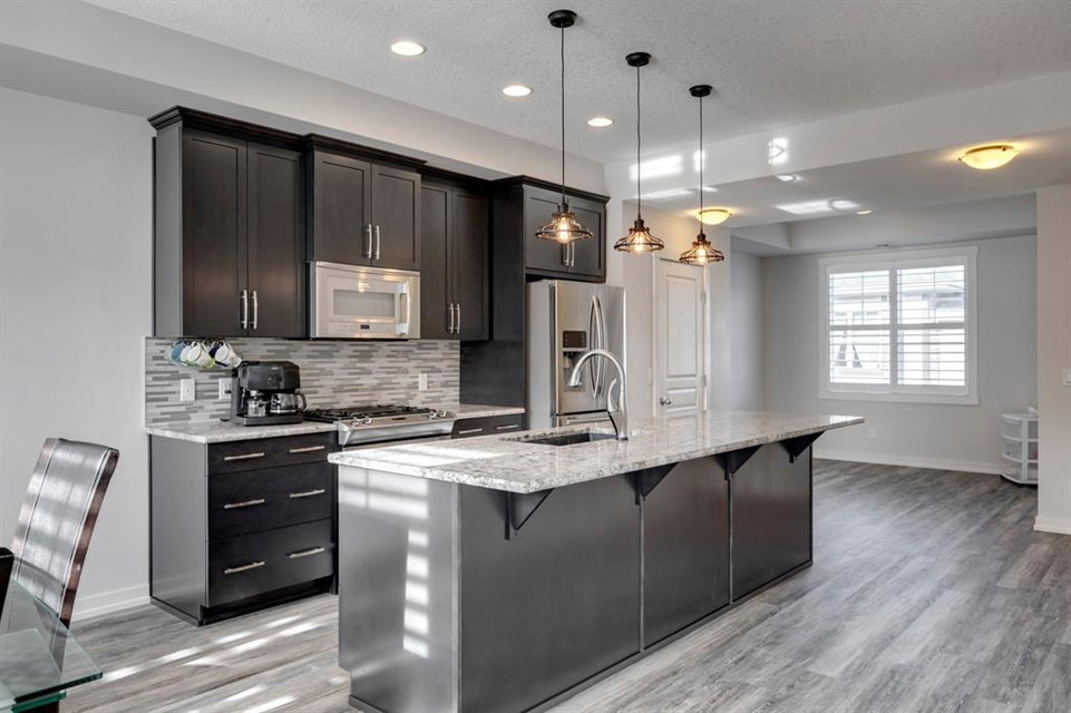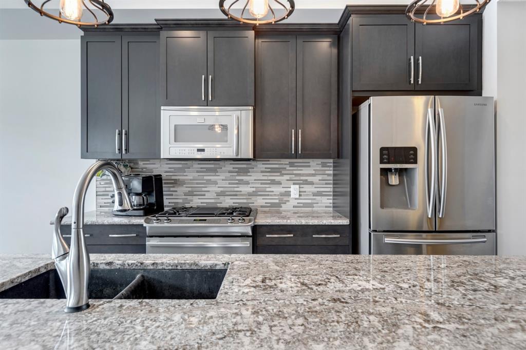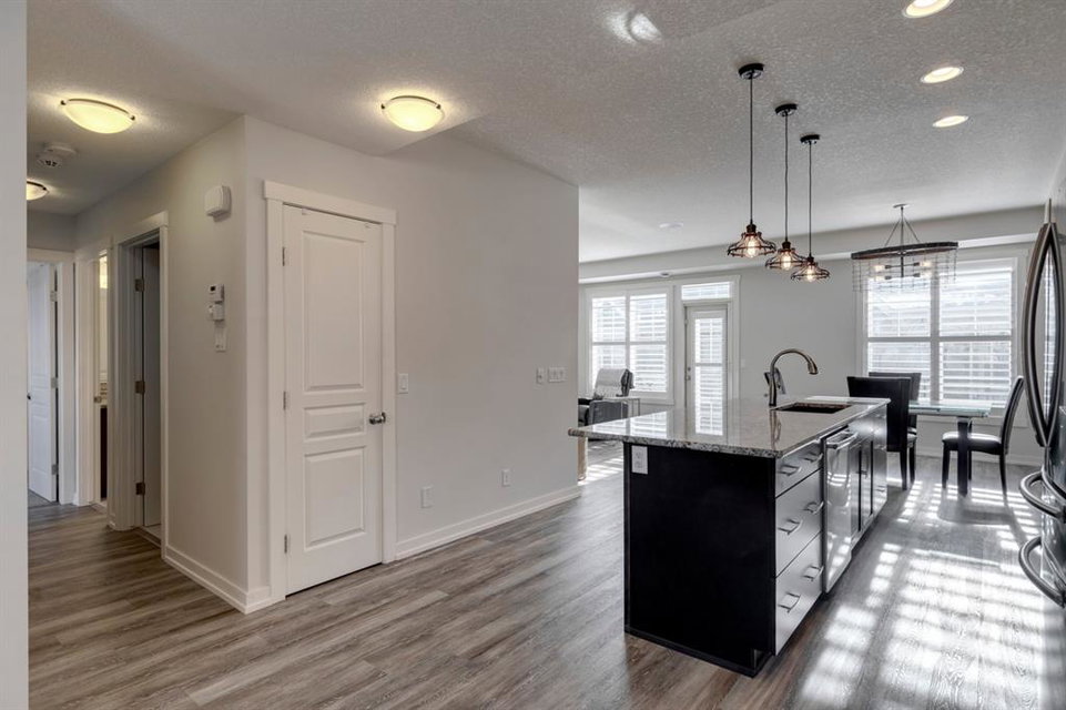 The most stunning unit at Mosaic Mirage is available and has brand new vinyl plank flooring, new carpet and fresh paint ! This beautiful home features over 1,340 sq.ft. of living space on one level with a private double attached garage. Complete with 2 bedrooms + den (which could easily be converted to a third bedroom), this spacious bungalow style home is fully upgraded throughout. Enjoy custom lighting, cabinetry & countertops and media upgrades that include ceiling speakers. Enjoy your private WEST facing 25’x8′ balcony all summer long. If it gets too warm, step inside and enjoy the central air-conditioning (an absolute MUST in these units). This home is perfectly set up for entertaining and is located just a few blocks from all the amenities of High Street. With so many custom options, including $6,000 Hunter Douglas Palm Beach window coverings, a gas range, central vac rough-in, and a partially finished garage and basement, this home is priced to sell! Enjoy the West exposure you deserve for such a beautiful balcony! This home is perfect for a small family, professionals or those looking to downsize. The property is like-new and fully move-in ready.
