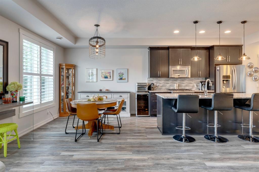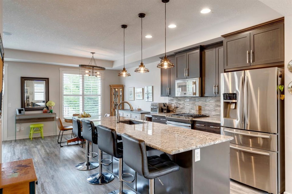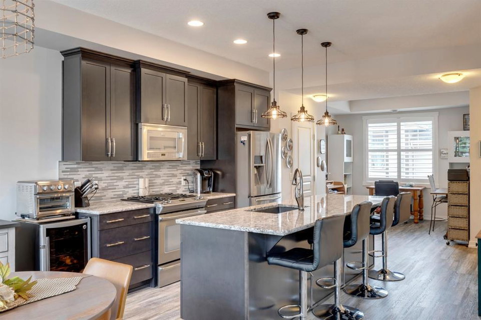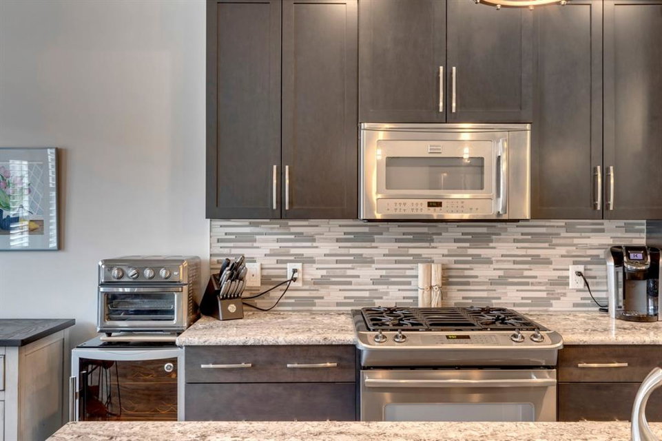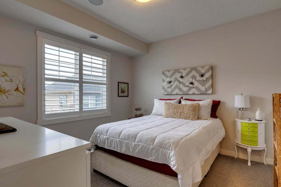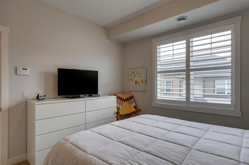 The most stunning unit at Mosaic Mirage is available and has new vinyl plank flooring, new carpet and fresh paint! This beautiful home features over 1,340 sq.ft. of living space on one level with a private double attached garage. Located in the walkable community of McKenzie Towne, this home is minutes away from all the amenities of High Street. Complete with 2 bedrooms + den (which could easily be converted to a third bedroom), this spacious bungalow style home is fully upgraded throughout. Enjoy custom lighting, cabinetry & countertops and media upgrades that include ceiling speakers. Enjoy your private WEST facing 25’x8′ balcony all summer long. If it gets too warm, step inside and enjoy the central air-conditioning (an absolute MUST in these units). This home is perfectly set up for entertaining and is located just a few blocks from all the amenities of High Street. With so many custom options, including Hunter Douglas Palm Beach window coverings, a gas range, central vac rough-in, and a partially finished garage and basement. Enjoy the West exposure you deserve for such a beautiful balcony! This home is perfect for a small family, professionals or those looking to downsize. The property is like-new and fully move-in ready with new toilets and a new hot water tank (2021).