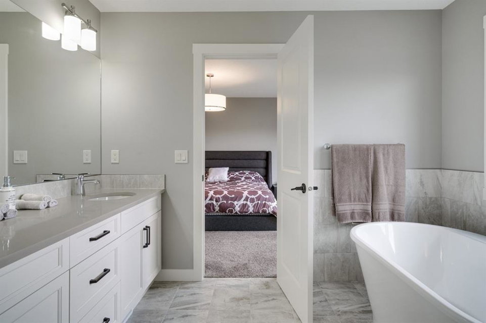 A beautiful fully developed 4 bedroom, 3.5 bathroom home built by award-winning ALBI Homes and situated on a very private lot. This immaculate home shows like new and has a completely private and fully landscaped backyard. The main level has an open concept design with timeless two tone cabinets in the kitchen complete with built-in appliances and quartz countertops. A wall of NW facing windows open to the backyard and allow for natural light to flow through the main level all day long. The upper level has a large bonus room with built-in desk, master bedroom complete with 5 pc en suite including an oversized tiled walk-in shower, two more bedrooms and a full bathroom. The professionally finished basement (completed by Albi as well) has a fourth bedroom, full bathroom and large rec area. The oversized heated double garage provides ample space for two vehicles and a workspace. The fully private backyard has an exposed aggregate patio and is low maintenance, including an underground sprinkler system and 220 plug for future hot tub, while capturing the perfect amount of sunshine.