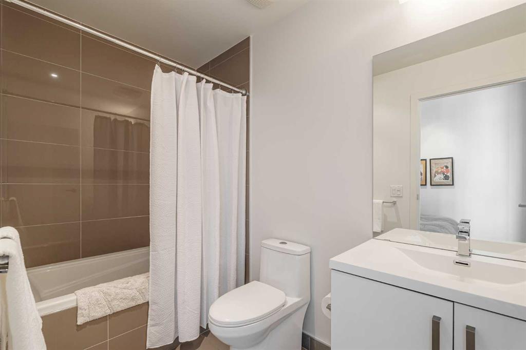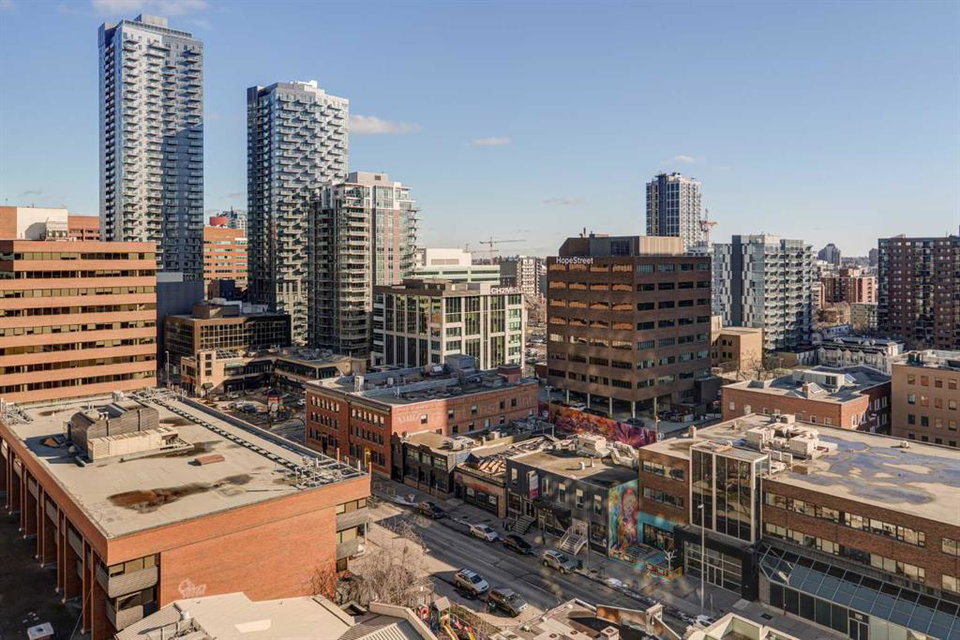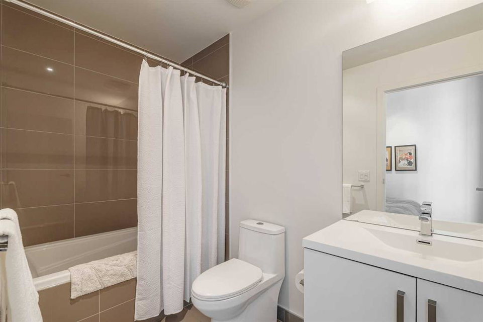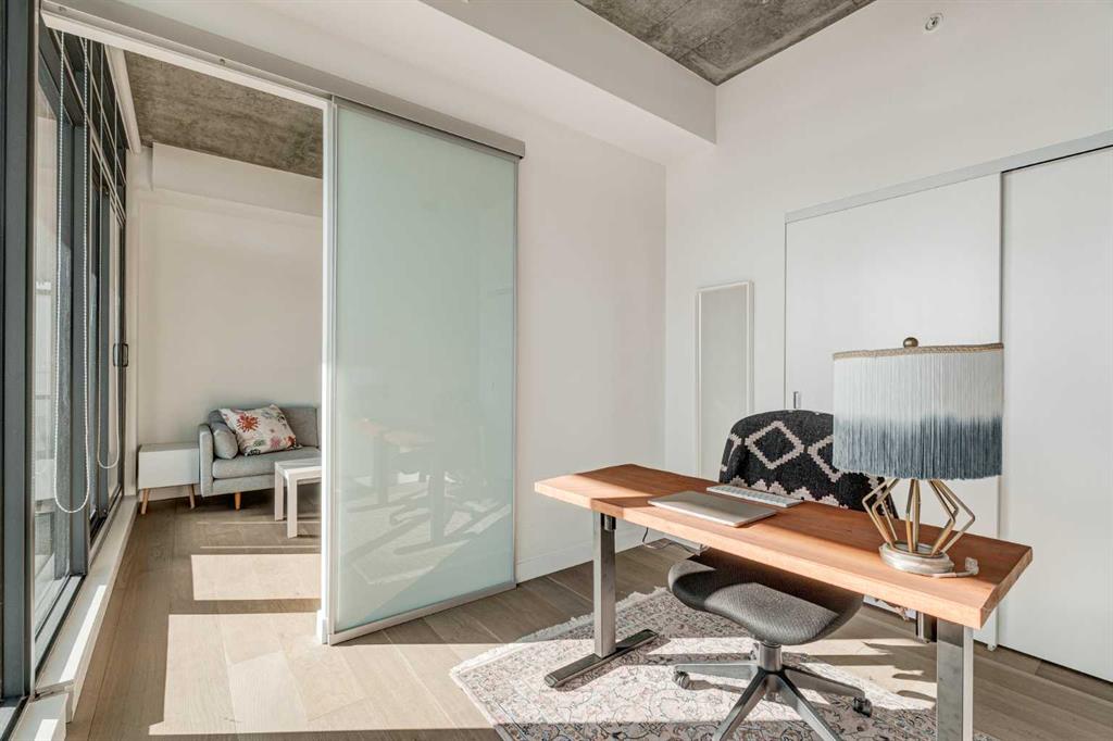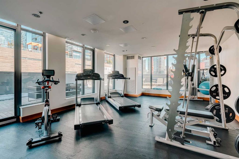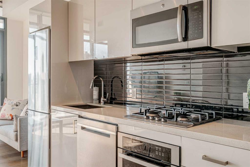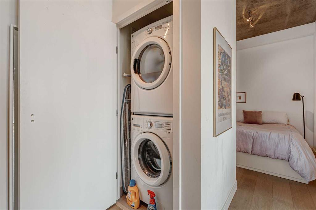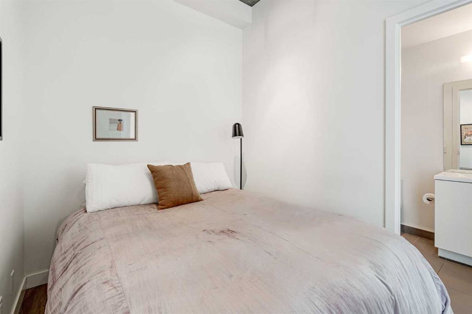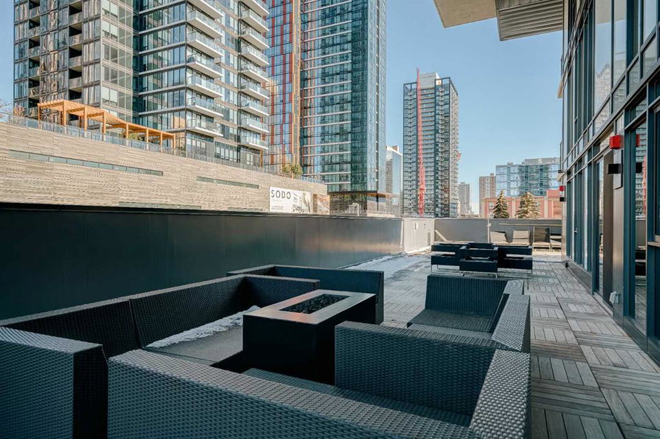 Welcome to this over 500 square foot condo located in the desirable and AirBnB friendly 6th and Tenth building in the heart of the Beltline that offers downtown living at its finest. This well-kept 1 bedroom + den, 1 bathroom unit is located on the 11th floor of this quiet concrete building and offers the perfect opportunity for first-time buyers or investors. The dedicated entryway greets you as you enter the home and newer engineered hardwood flooring flows throughout the unit. The main living area features an open-concept layout with 9-foot exposed concrete ceilings and South-facing floor to ceiling windows that flood the property with natural light throughout the day. The kitchen features quartz countertops, amble cabinetry and storage, and stainless steel appliances, including a gas cooktop and a built-in oven. The kitchen is open to the dining and living areas – making this the perfect space for entertaining friends and family. The spacious bedroom features a large double closet with built-ins and also offers floor to ceiling windows with unobstructed stunning views of downtown. The additional den space offers a great flex area that can be used as an additional bedroom if desired. The expansive South-facing balcony offers a great space to enjoy the warmer summer months and features a gas line for your barbeque and plenty of space for patio furniture. Completing this property is in-unit laundry for your convenience and central air conditioning. Situated within one of the most sought-after buildings in Calgary, this unit offers access to a plethora of amenities including a sky garden lounge with an outdoor pool, a landscaped terrace, a large fitness center, secure bike storage, and concierge. This pet-friendly building has no weight restrictions for dogs and only requires board approval. Centrally located in the heart of the Beltline, this property features the perfect walkable location and is only a short walk to nearby restaurants, cafes, shopping, and entertainment. Within only a 2 minute walk you have top restaurants like Orchard Restaurant, Bridgette Bar, and Pampa Brazilian Steakhouse. 6th and Tenth is one of very few buildings in downtown Calgary that allows for short-term rentals, making this property a great opportunity for investors or buyers looking for their first home. Don’t miss out on this incredible opportunity in the Beltline!