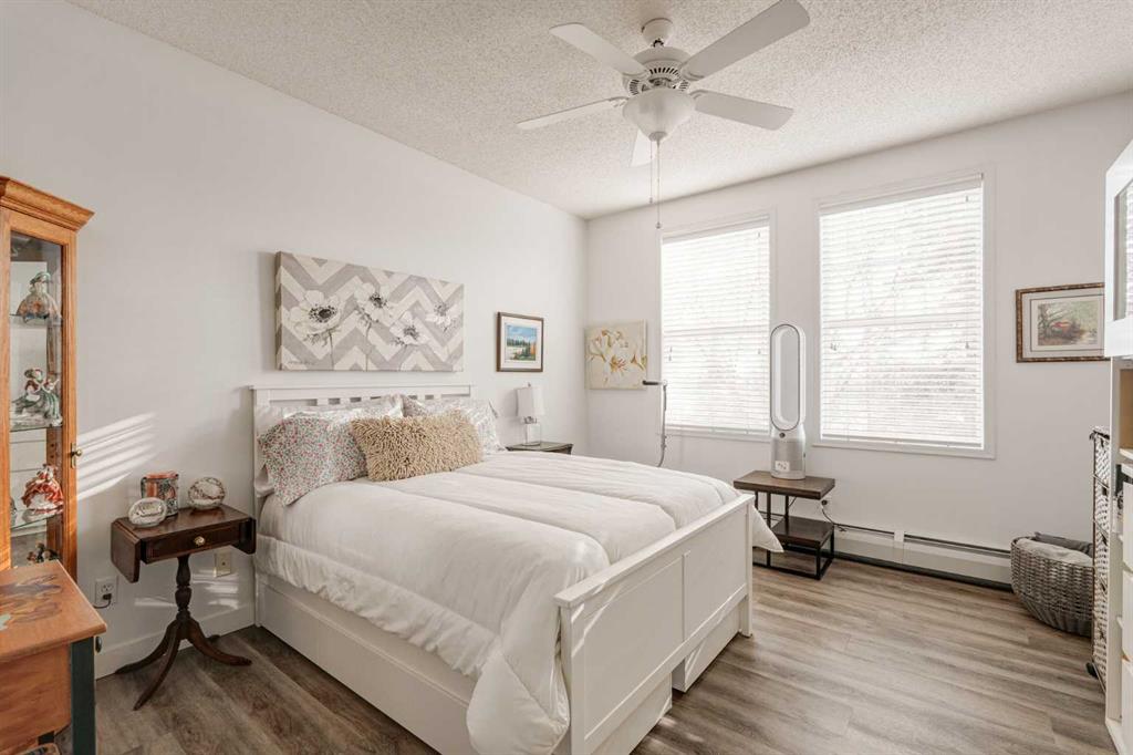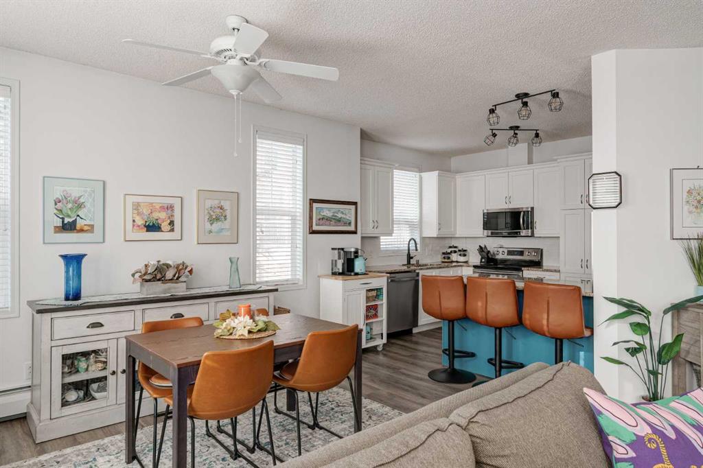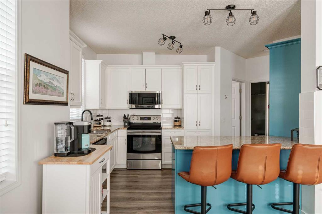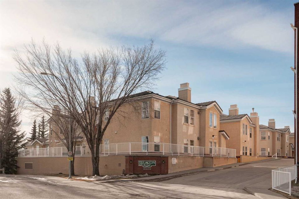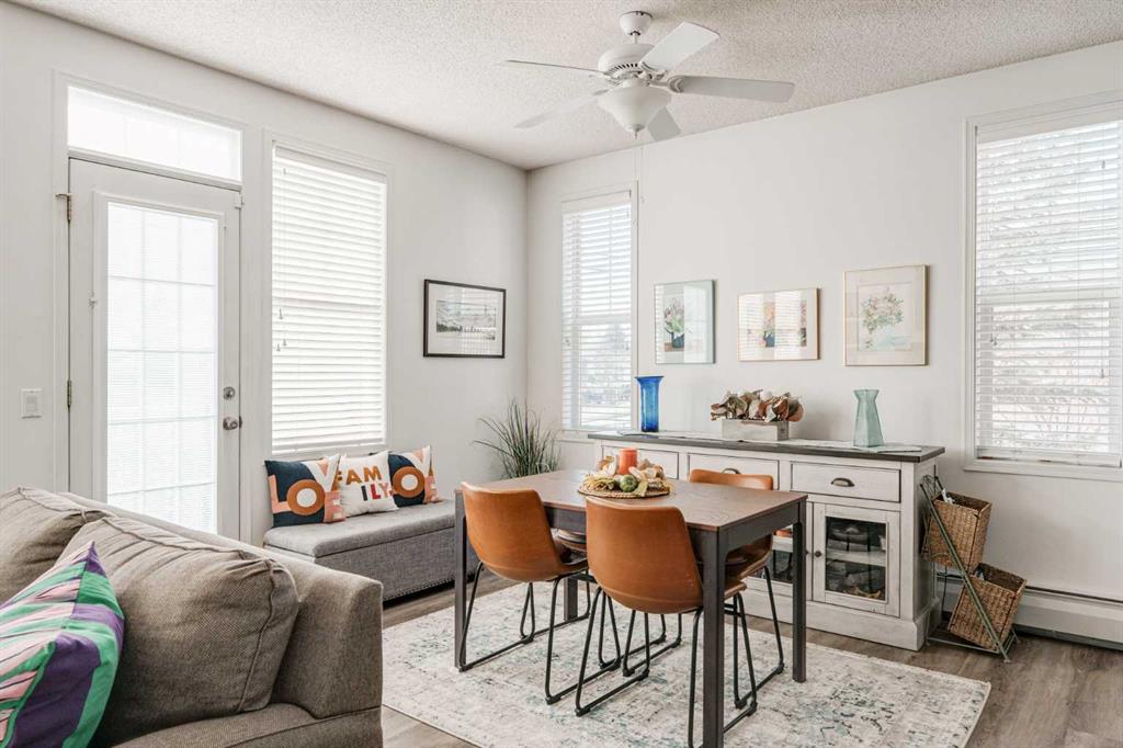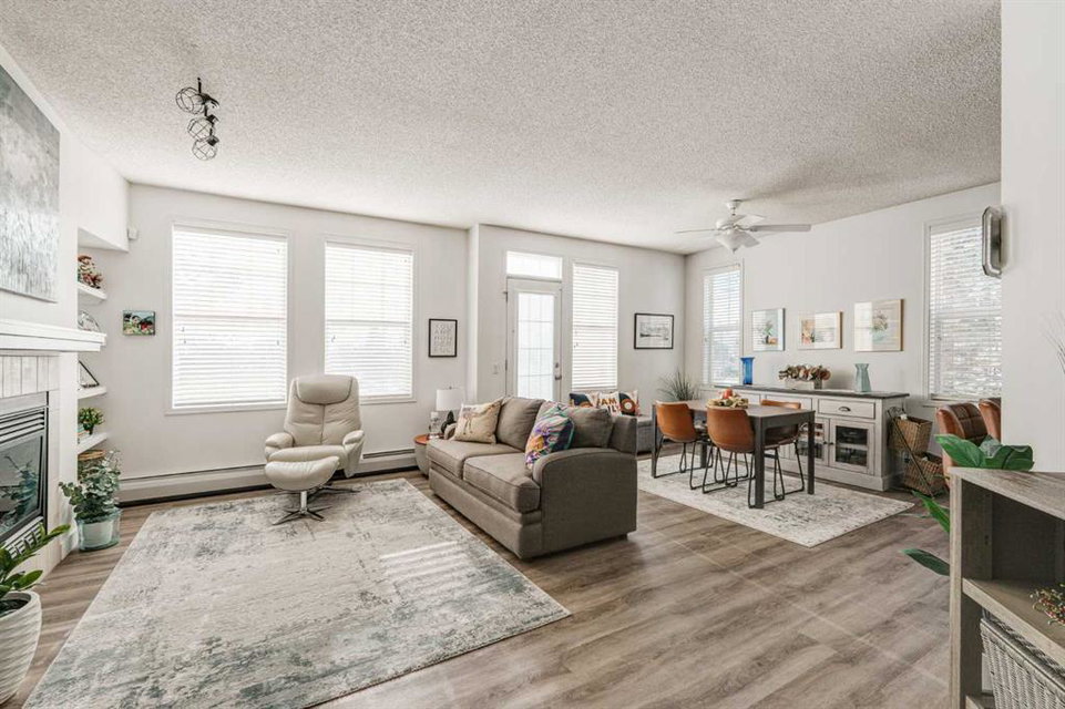 This meticulously maintained townhome is located in the desirable neighbourhood of Shawnee Slopes, just steps from the breathtaking Fish Creek Park and a wealth of amenities. This spacious 2-bedroom, 2-bathroom + den home has been beautifully updated, offering a turn-key living experience perfect for those looking to downsize without compromising on style or functionality. The recently renovated interior features luxury vinyl plank flooring throughout and large windows that bathe the space in natural light from morning to evening. The timeless kitchen boasts white shaker cabinetry, a striking blue accent peninsula with an eating bar, a subway tile backsplash, granite countertops, a suite of newer stainless-steel appliances, and a side pantry for extra storage. The open-concept design seamlessly connects the kitchen, dining, and living areas, creating the perfect space for entertaining guests or family. The dining area comfortably accommodates formal dinners and offers direct access to a private balcony, while the generous living room provides ample space for a cozy seating area centred around a gas fireplace with built-in shelving—a warm and inviting retreat on cold winter days. The two bedrooms are thoughtfully positioned on opposite sides of the home, ensuring privacy for each bedroom. The primary suite features a large walk-in closet and a recently updated 4-piece ensuite with a new toilet and sleek black plumbing fixtures. The second bedroom offers flexibility—perfect for family, guests, or even a play area for children. The second full bathroom has also been updated with a new toilet and matching black plumbing fixtures. Adding to the home’s convenience, there is a dedicated office/den, as well as an in-suite laundry and storage room, ensuring everyday convenience. The south-facing balcony provides the perfect spot to enjoy the sunshine, offering an outdoor retreat for morning coffee or relaxing in the warmer months. Adding to the convenience, this home includes two titled underground parking stalls and an assigned storage locker, ensuring secure, year-round parking and ample space for belongings. This is your opportunity to embrace the ease of townhome living without compromising on quality, design, or lifestyle. Beacon Hill offers a vibrant community-oriented lifestyle with a range of amenities, including a fitness center, resident lounge, party room, guest suites, and even a car wash. Residents can also enjoy regular social activities. Ideally situated, this home is just a short drive from shopping, dining, and major roadways, making daily errands and commutes effortless. This is a rare opportunity to enjoy the ease of low-maintenance living without compromising on quality, comfort, or lifestyle.