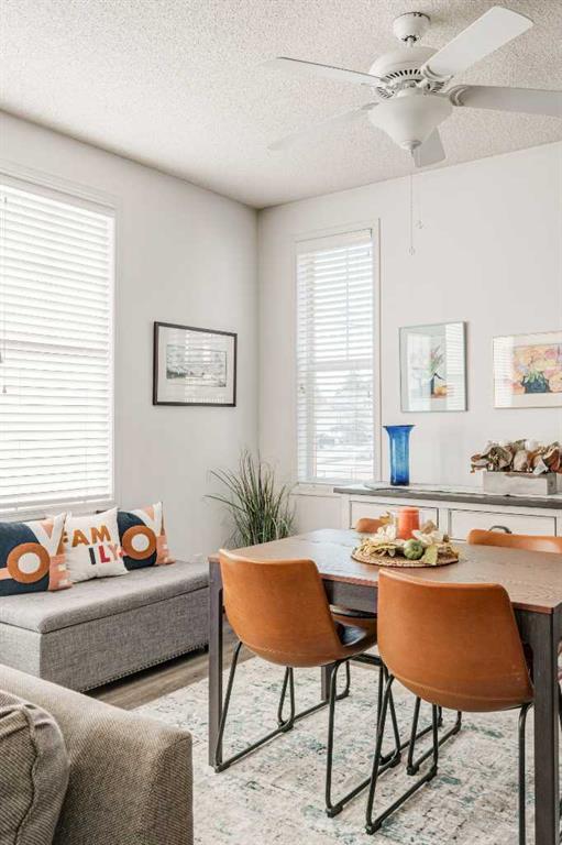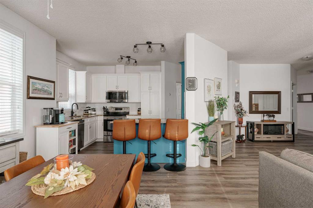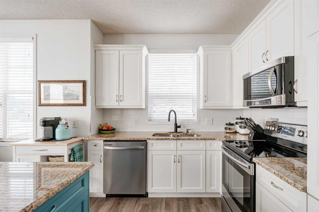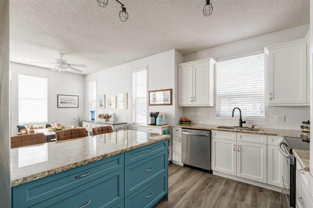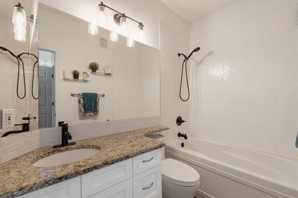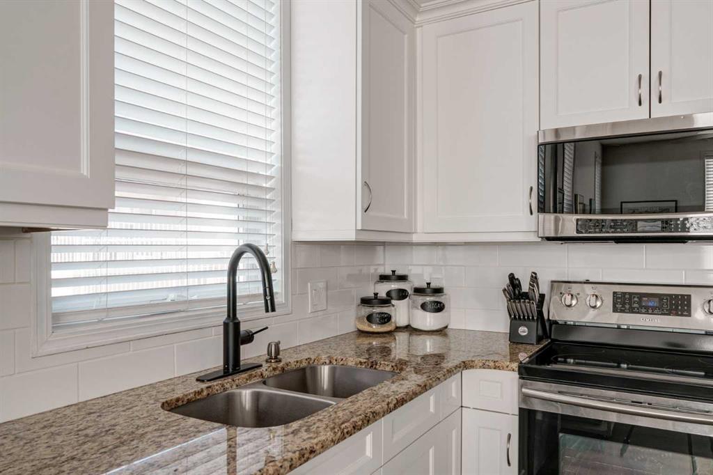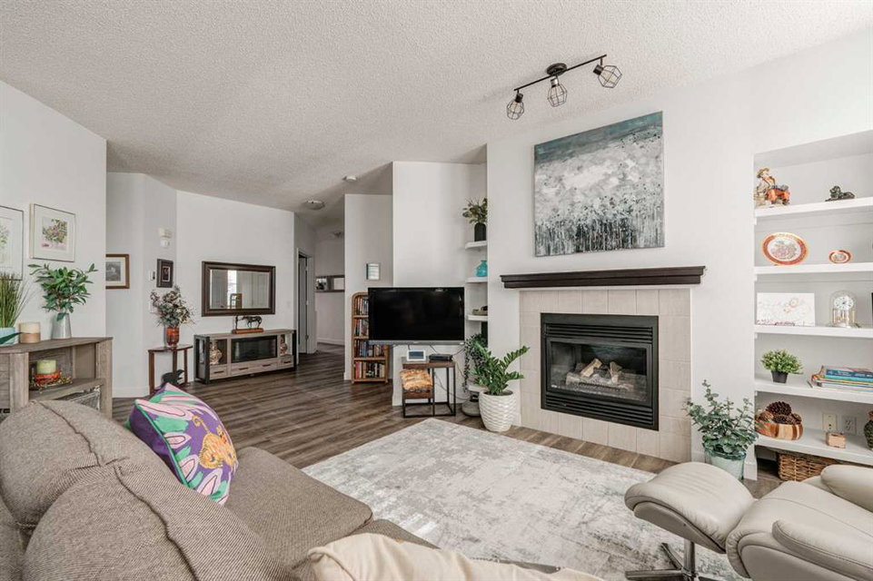 This meticulously maintained townhome is located in the desirable neighbourhood of Shawnee Slopes, just steps from the breathtaking Fish Creek Park and a wealth of amenities. This spacious 2-bedroom, 2-bathroom + den home has been beautifully updated, offering a turn-key living experience perfect for those looking to downsize without compromising on style or functionality. The recently renovated interior features luxury vinyl plank flooring throughout and large windows that bathe the space in natural light from morning to evening. The timeless kitchen boasts white shaker cabinetry, a striking blue accent peninsula with an eating bar, a subway tile backsplash, granite countertops, a suite of newer stainless-steel appliances, and a side pantry for extra storage. The open-concept design seamlessly connects the kitchen, dining, and living areas, creating the perfect space for entertaining guests or family. The dining area comfortably accommodates formal dinners and offers direct access to a private balcony, while the generous living room provides ample space for a cozy seating area centred around a gas fireplace with built-in shelving—a warm and inviting retreat on cold winter days. The two bedrooms are thoughtfully positioned on opposite sides of the home, ensuring privacy for each bedroom. The primary suite features a large walk-in closet and a recently updated 4-piece ensuite with a new toilet and sleek black plumbing fixtures. The second bedroom offers flexibility—perfect for family, guests, or even a play area for children. The second full bathroom has also been updated with a new toilet and matching black plumbing fixtures. Adding to the home’s convenience, there is a dedicated office/den, as well as an in-suite laundry and storage room, ensuring everyday convenience. The south-facing balcony provides the perfect spot to enjoy the sunshine, offering an outdoor retreat for morning coffee or relaxing in the warmer months. Adding to the convenience, this home includes two titled underground parking stalls and an assigned storage locker, ensuring secure, year-round parking and ample space for belongings. This is your opportunity to embrace the ease of townhome living without compromising on quality, design, or lifestyle. Beacon Hill offers a vibrant community-oriented lifestyle with a range of amenities, including a fitness center, resident lounge, party room, guest suites, and even a car wash. Residents can also enjoy regular social activities. Ideally situated, this home is just a short drive from shopping, dining, and major roadways, making daily errands and commutes effortless. This is a rare opportunity to enjoy the ease of low-maintenance living without compromising on quality, comfort, or lifestyle.