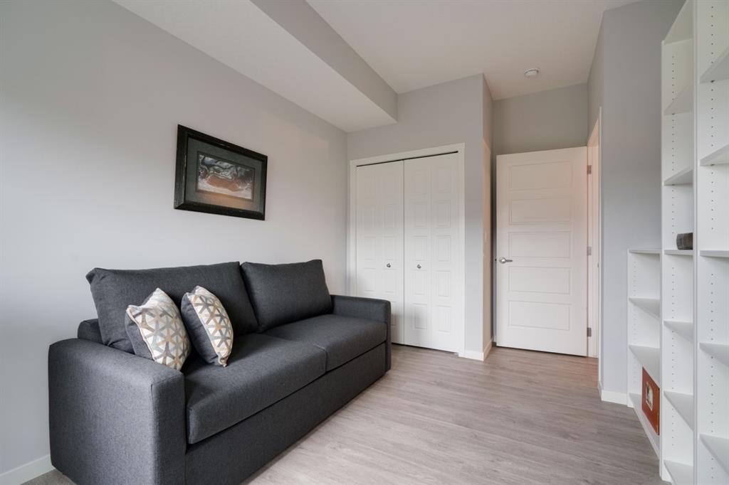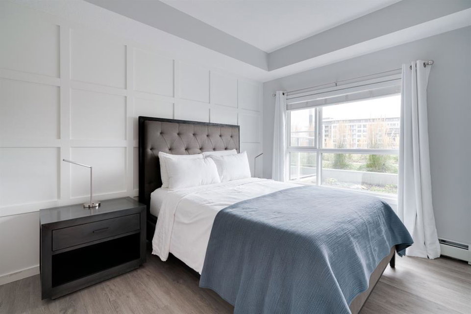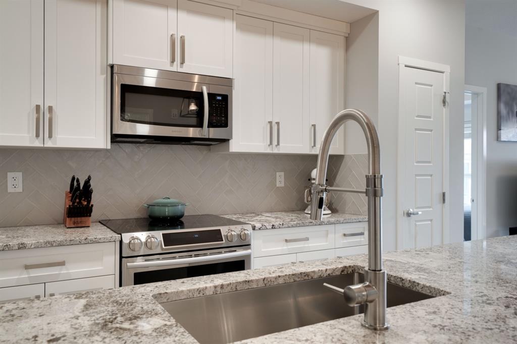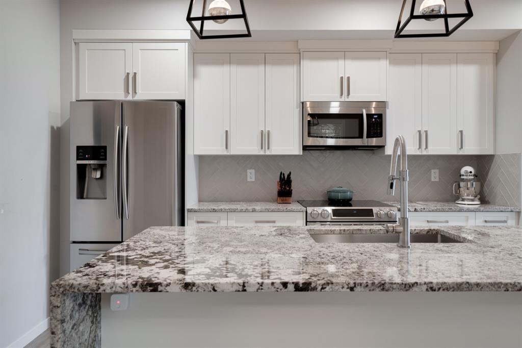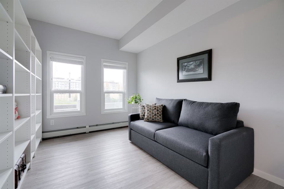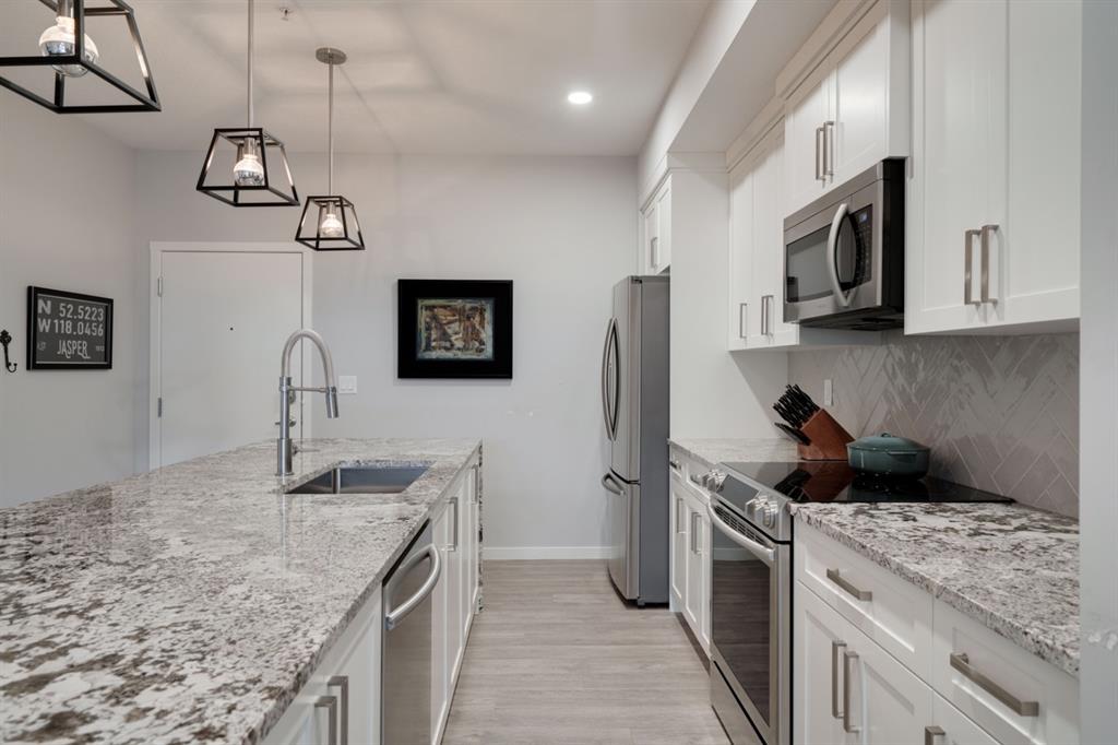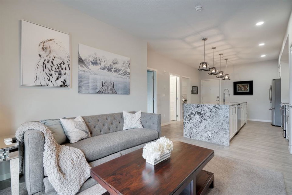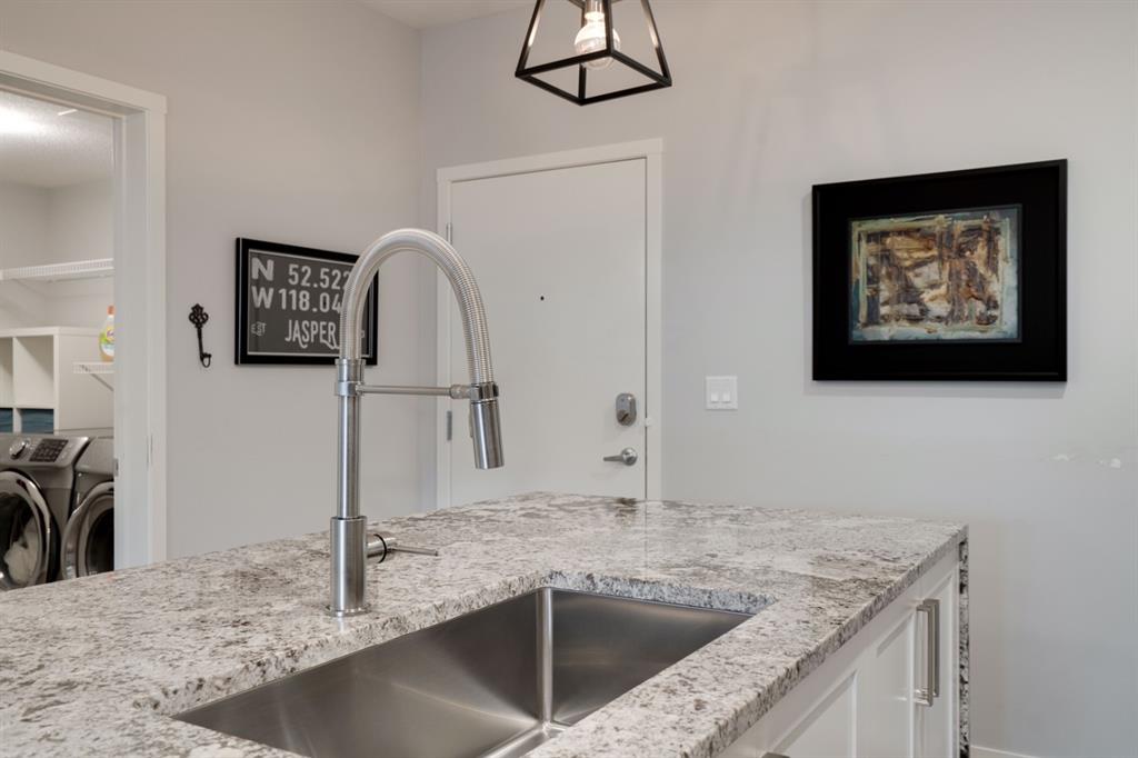 This well-maintained 2 bedroom, 2 bathroom main-level condo offers incredible value and is perfect for a young couple, investor or those looking to downsize. This well located unit overlooks a 16 acres park providing a natural surrounding not found in many condos while also being steps away from the South Health Campus, YMCA and the Seton Retail shopping district. The bright and open layout allows natural light into the entire home all day long. The open concept living area includes a large kitchen that overlooks the living area and has an oversized granite island for dining. The large living area provides the perfect space for entertaining and overlooks the 16 acre park. The home is finished with timeless full height white cabinetry, luxury vinyl plank flooring, granite countertops, extended island and a suite of stainless-steel appliances. The primary bedroom is complete with a walk-through 4-piece en suite with dual sinks, full height tile walk-in shower and spacious walk-in closet. Additionally, the home has a second bedroom, 4-piece bathroom, in-suite laundry and a large storage area which offers added convenience to everyday living. The balcony offers a perfect place to enjoy the outdoors with unobstructed views of the adjacent park with ample space for lounging. Finishing the unit is a titled underground parking stall and assigned storage locker to keep your valuables and vehicle safe and secure year-round. Maintenance-free living in this great condo offering incredible value for those wanting a spacious two-bedroom home. Stop renting and start building equity today!
