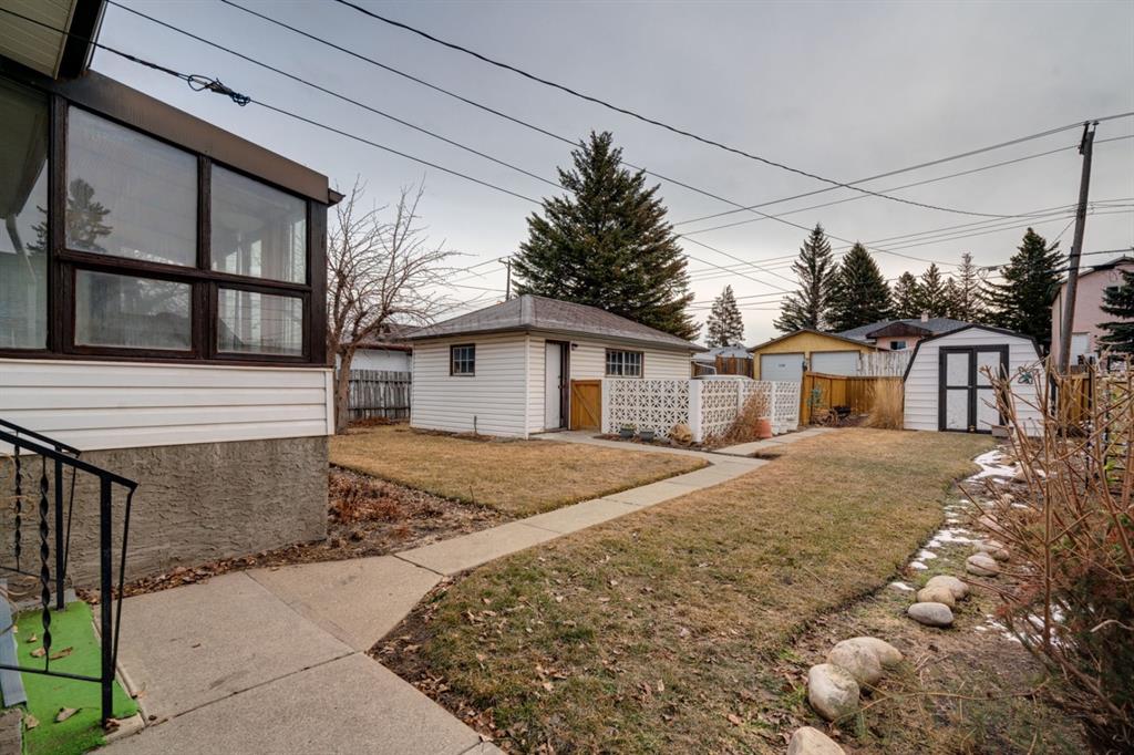 Investor Alert! An incredible opportunity to make this 4 bedroom, 2 bathroom bungalow your own. Conveniently located minutes away from Elliston Park and steps away from the countless nearby amenities of International Avenue. This well-kept home features a kitchen that overlooks the rear sunroom which creates the perfect space for entertaining guests. Original hardwood flooring flows throughout the main level while large east and west-facing windows allow natural light to pour through the space all day. The main level offers 3 bedrooms and 1 full bathroom, a large dining/living room and kitchen with ample storage space. The lower level is complete with a separate entrance and offers an additional bedroom (does not meet egress) a generous family room with bar and a lower level laundry room. Completing the home is a large, private backyard with a single detached garage ideal for your vehicle or a workshop. Additionally, the home has a parking pad with space for 3 more vehicles, a garden and shed. This original-owner bungalow provides endless opportunities for investors looking to develop a future basement suite (illegal) or rental property. Come see all this property has to offer today!