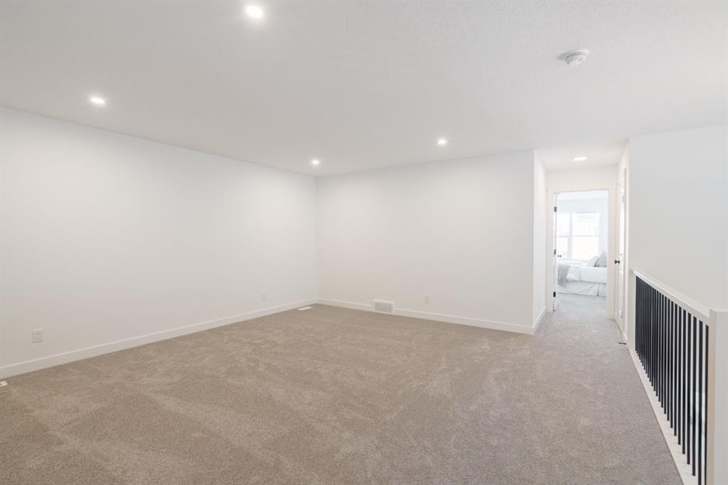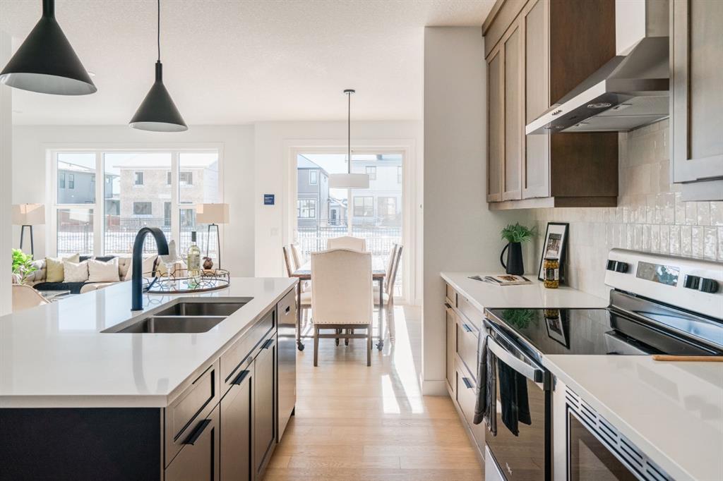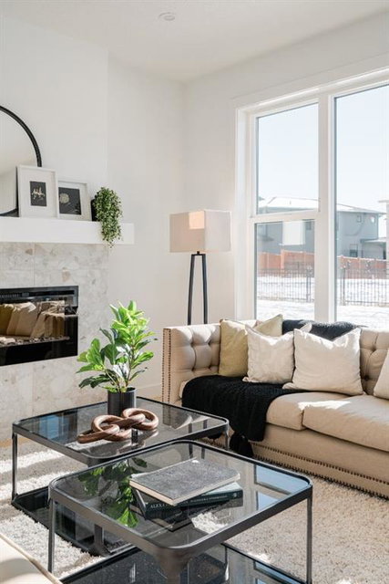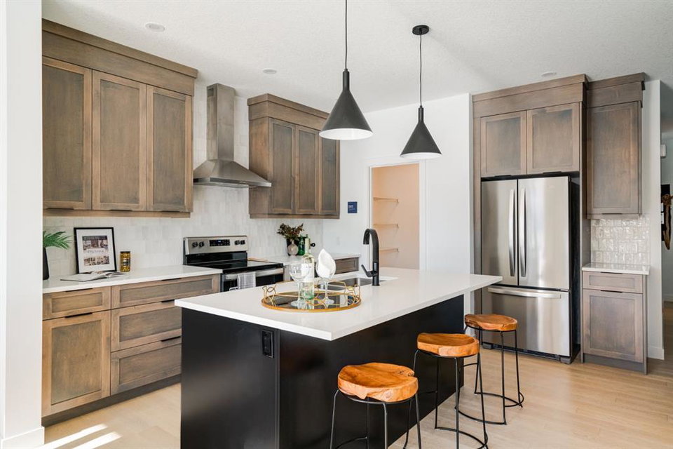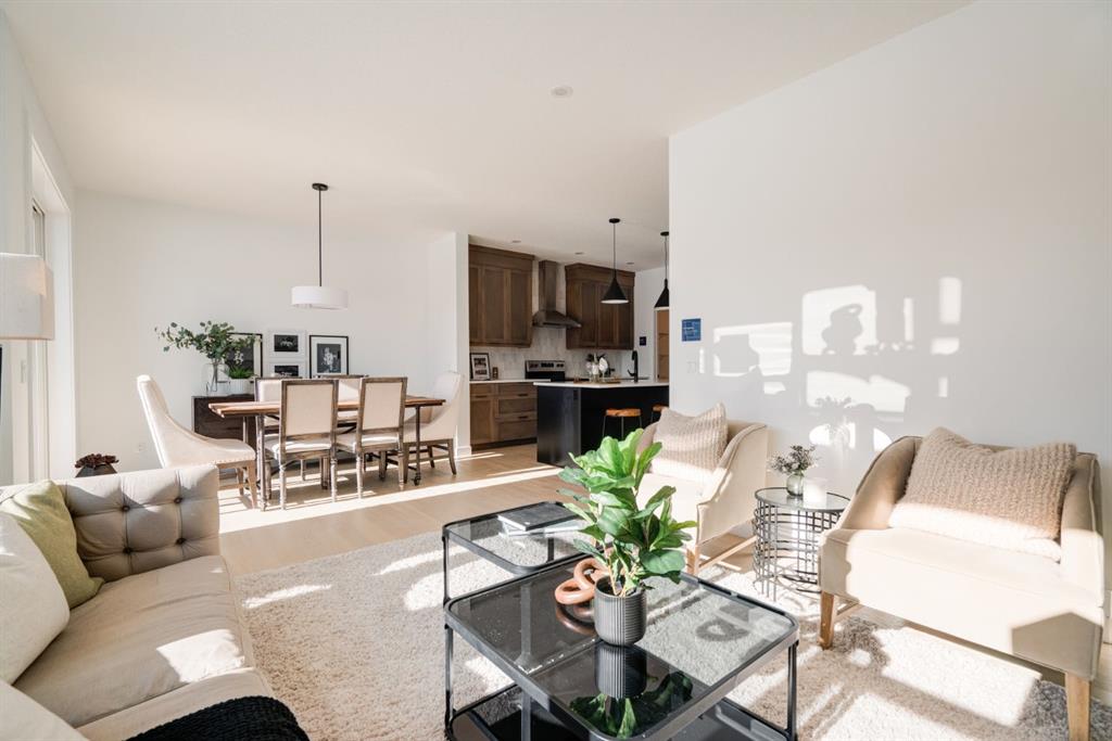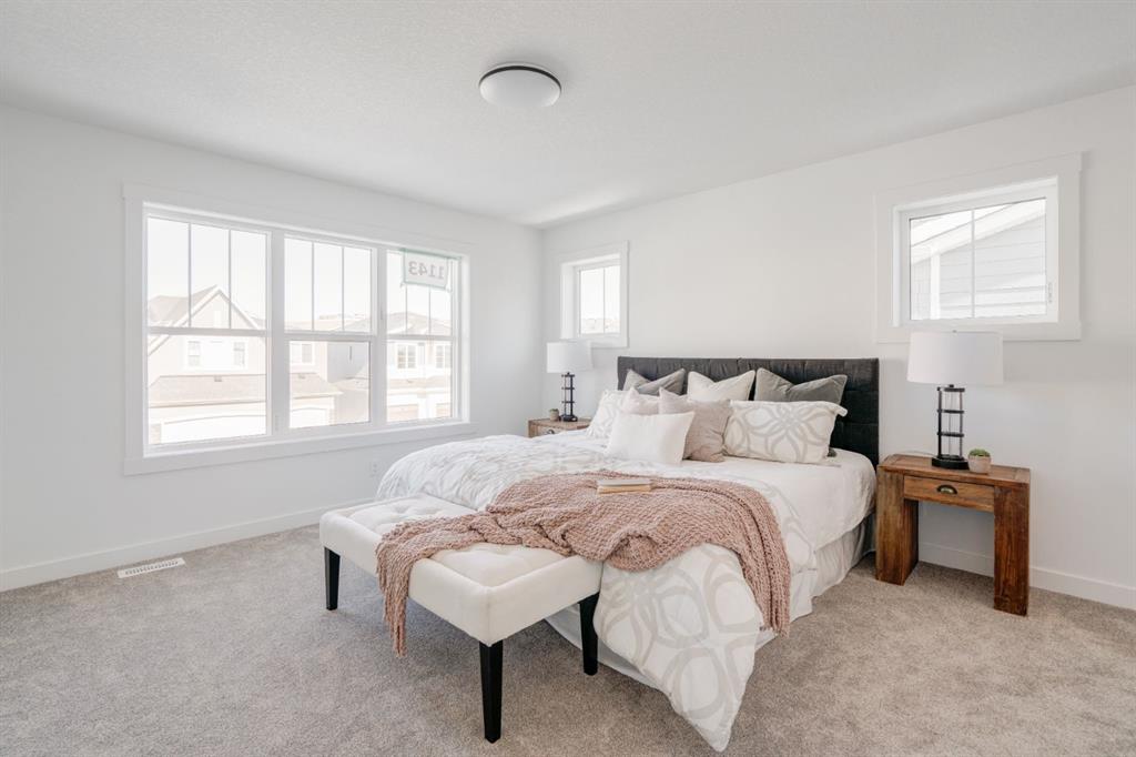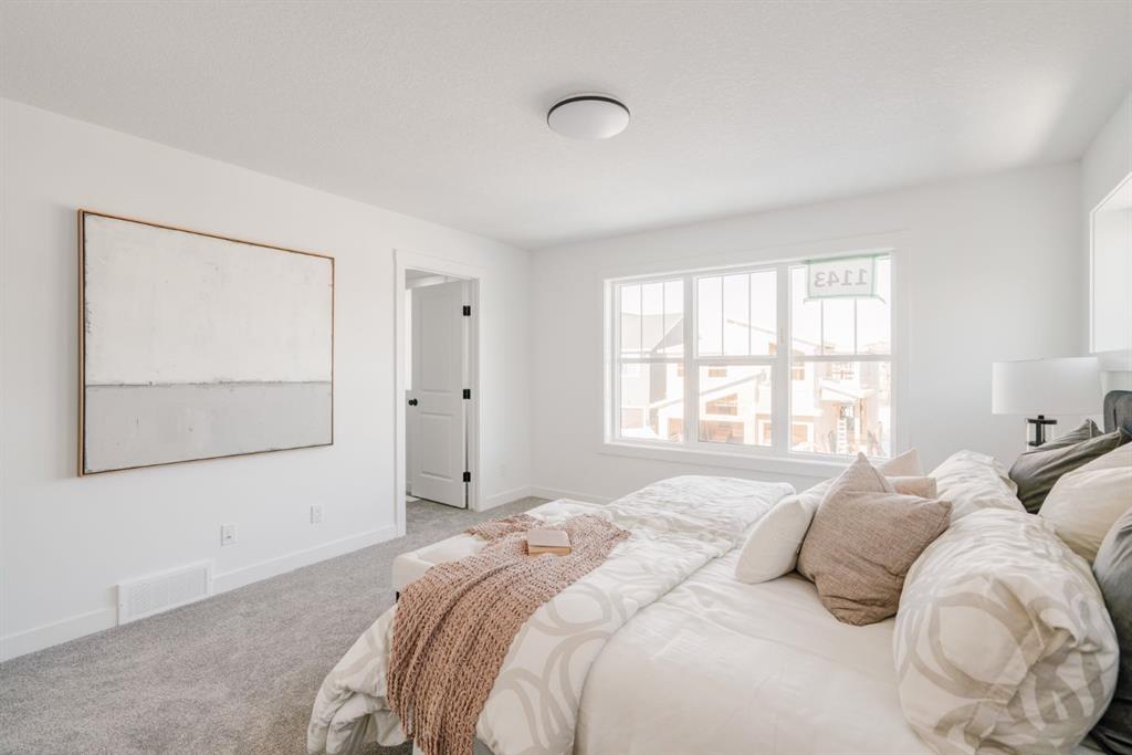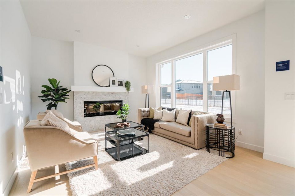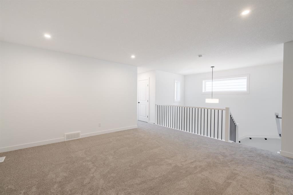 The stunning and incredible efficient NET ZERO home is officially for sale! Built by Brookfield Residential, this home far surpasses modern day building code requirements and provides all the luxuries of a brand new home without the rising utility costs. Additional benefits of a Net Zero home include: more even temperatures throughout the home, exceptional indoor air quality, less noise and a quieter living environment, and an airtight home that is environmentally friendly. You can also save up to $8,200 with the CMHC Eco Plus Rebate! Intelligent design and construction advancements have made this net zero home significantly more efficient than your typical home built today – in fact, up to 80% more efficient! Net Zero specific features that make differentiate this new home from others include: more efficient insulation, air sealing around doors, vents, outlets and windows (both inside and outside), premium high performing windows, energy star appliances, LED lighting, an air source heat pump, advanced hot water tank and roof solar panels with an energy monitoring system. Beyond the unique efficiency features specific to this home is the incredibly popular Purcell 24 model with stunning design throughout. The property features an open concept main living area with a kitchen complete with warm maple cabinets, an accent island and quartz countertops – all overlooking both the living and dining area. The dining space has patio doors leading to the backyard and the living area has a central electric fireplace and wall of windows overlooking the south-facing backyard. A main floor office / flex space, powder room, walk through pantry and large mud room complete the main level. Open spindle railing leads to the second level where you’ll find a central bonus room separating the primary bedroom from the secondary rooms. The expansive primary suite has a 5 pc ensuite including a fully tiled walk-in shower, pedestal soaker tub, dual sinks and a private water closet in addition to the walk-in closet. Two more bedrooms, a full main bathroom and laundry room complete the upper level. Situated on a south-facing lot, this property captures the perfect sunshine all year long, further adding to its efficiency via solar panels. The property is perfectly located within the community, backing onto a walking path that leads straight to the Riverstone pathway system making you steps away from the beautiful Bow River. With rising utility costs, this home is the future of efficiency and savings! This home is fully complete and move-in ready today. This home represents reduced GHG emissions with 21 metric tonnes/year saved which is equal to 18.3 gas powered vehicles off the road for 1 year or 2,222 trash bags of waste recycled instead of landfilled – a truly unique property!
