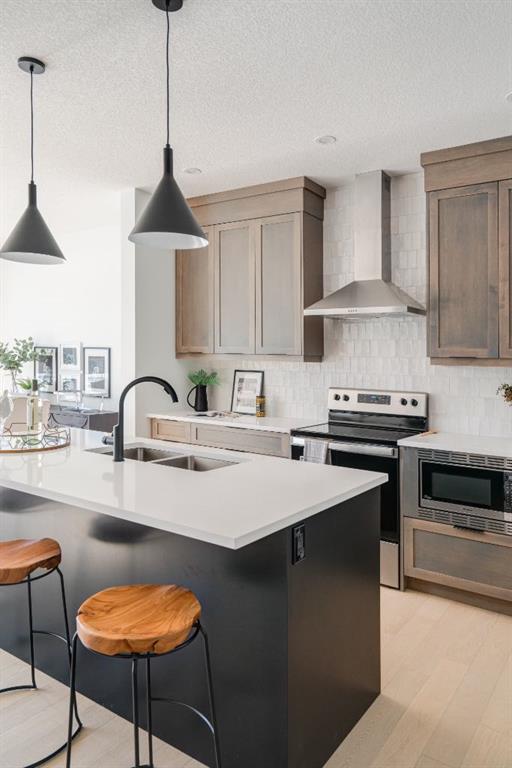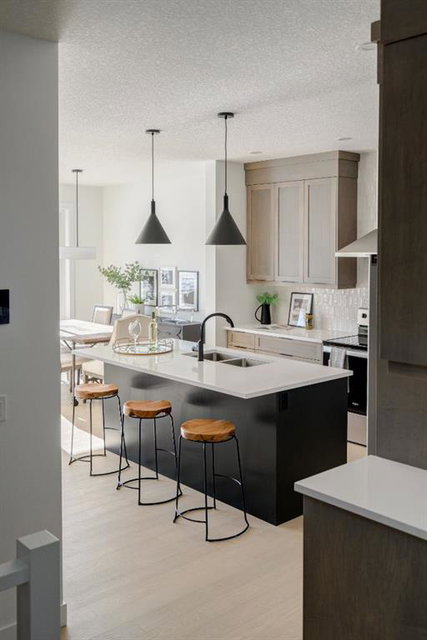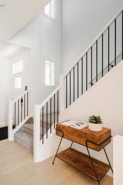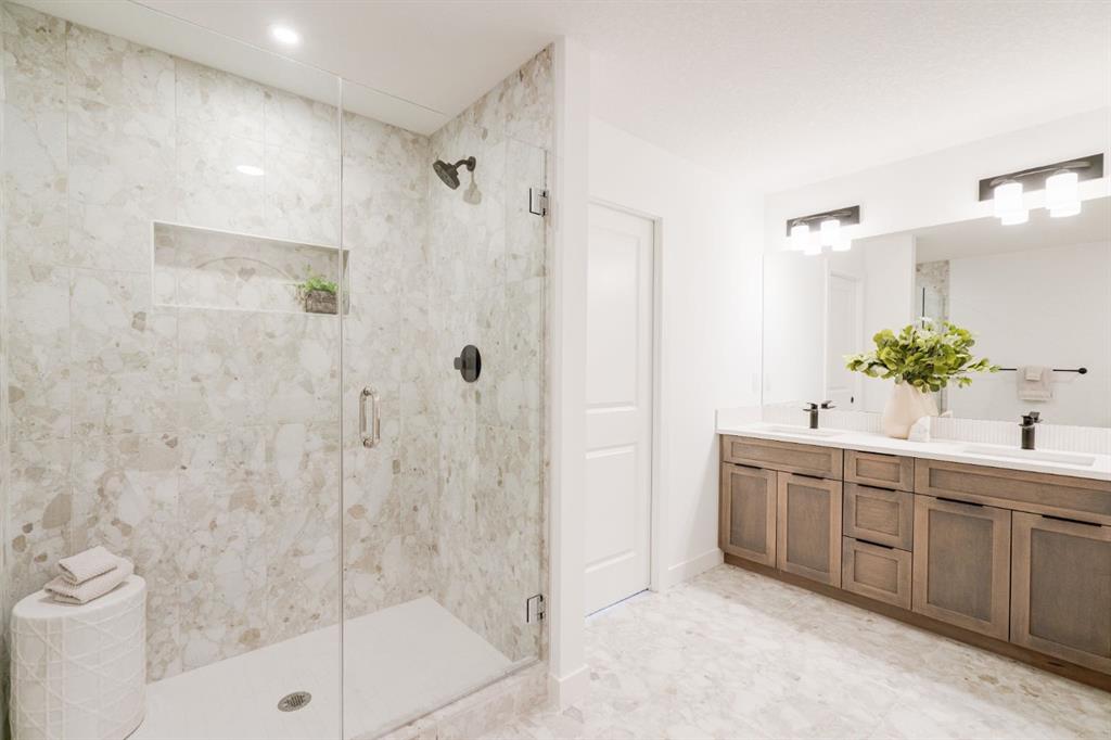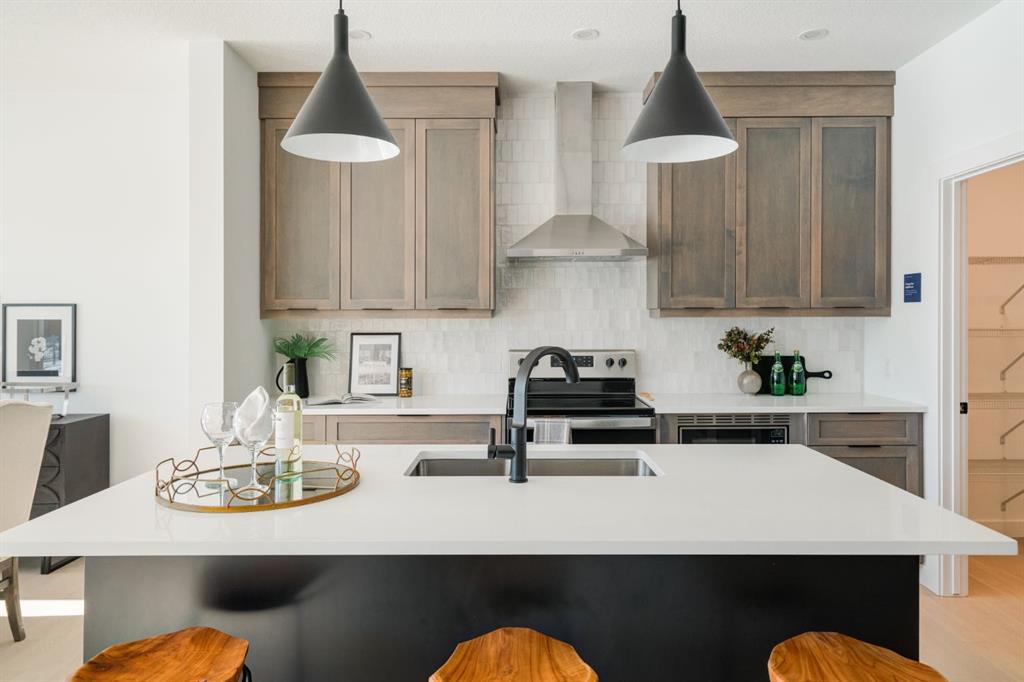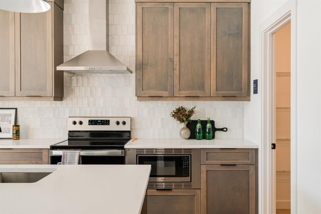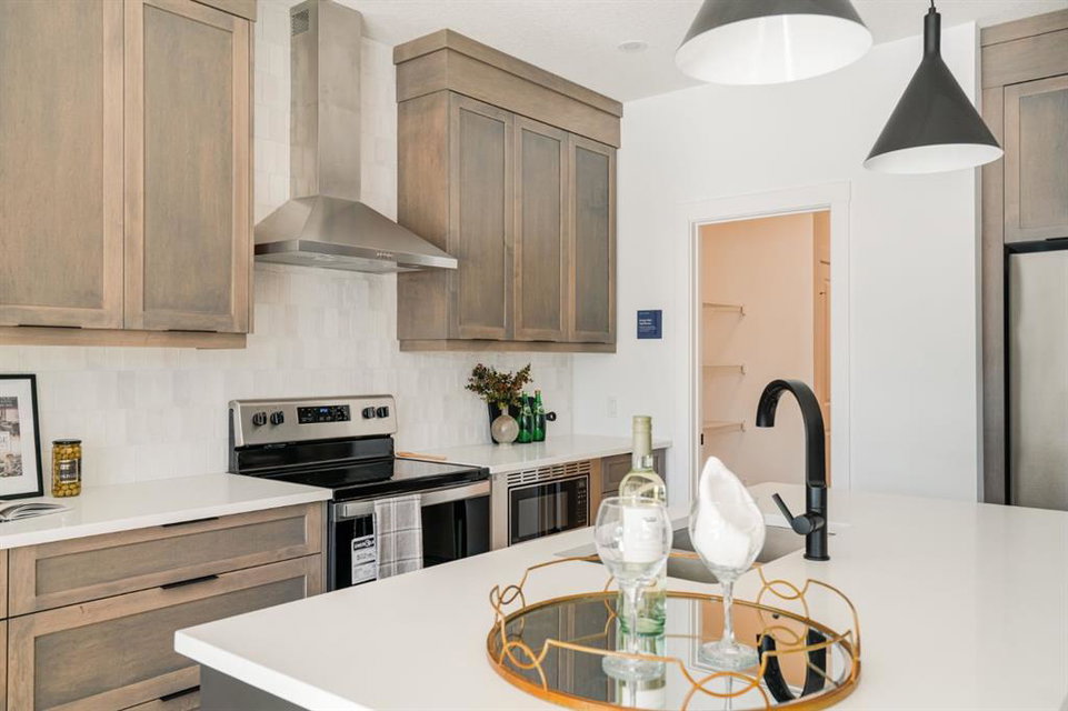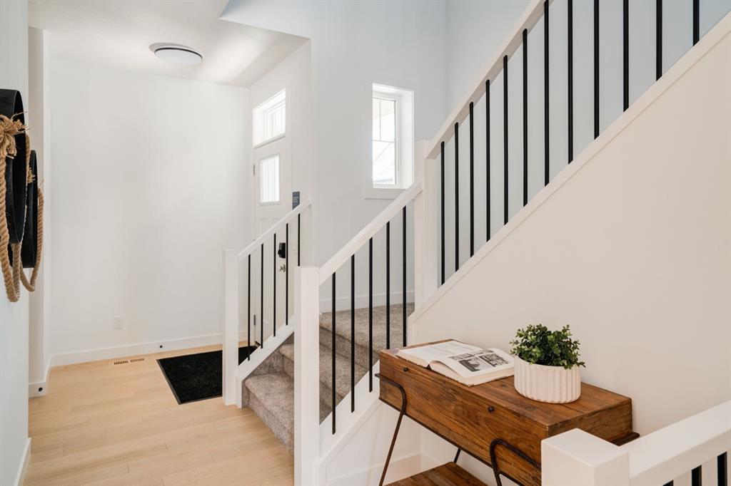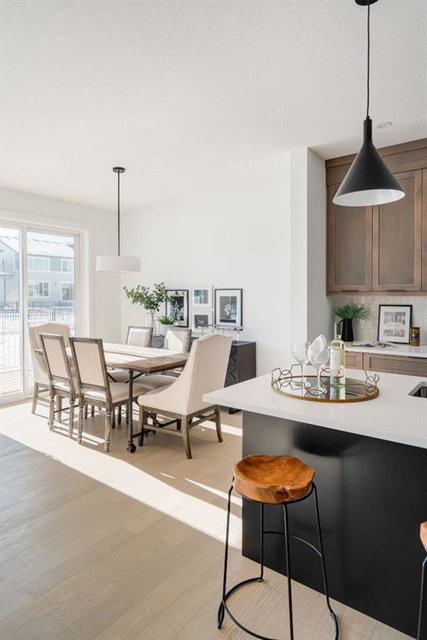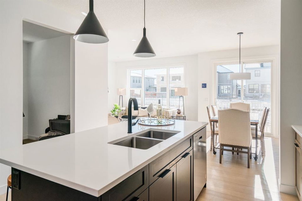 The stunning and incredible efficient NET ZERO home is officially for sale! Built by Brookfield Residential, this home far surpasses modern day building code requirements and provides all the luxuries of a brand new home without the rising utility costs. Additional benefits of a Net Zero home include: more even temperatures throughout the home, exceptional indoor air quality, less noise and a quieter living environment, and an airtight home that is environmentally friendly. You can also save up to $8,200 with the CMHC Eco Plus Rebate! Intelligent design and construction advancements have made this net zero home significantly more efficient than your typical home built today – in fact, up to 80% more efficient! Net Zero specific features that make differentiate this new home from others include: more efficient insulation, air sealing around doors, vents, outlets and windows (both inside and outside), premium high performing windows, energy star appliances, LED lighting, an air source heat pump, advanced hot water tank and roof solar panels with an energy monitoring system. Beyond the unique efficiency features specific to this home is the incredibly popular Purcell 24 model with stunning design throughout. The property features an open concept main living area with a kitchen complete with warm maple cabinets, an accent island and quartz countertops – all overlooking both the living and dining area. The dining space has patio doors leading to the backyard and the living area has a central electric fireplace and wall of windows overlooking the south-facing backyard. A main floor office / flex space, powder room, walk through pantry and large mud room complete the main level. Open spindle railing leads to the second level where you’ll find a central bonus room separating the primary bedroom from the secondary rooms. The expansive primary suite has a 5 pc ensuite including a fully tiled walk-in shower, pedestal soaker tub, dual sinks and a private water closet in addition to the walk-in closet. Two more bedrooms, a full main bathroom and laundry room complete the upper level. Situated on a south-facing lot, this property captures the perfect sunshine all year long, further adding to its efficiency via solar panels. The property is perfectly located within the community, backing onto a walking path that leads straight to the Riverstone pathway system making you steps away from the beautiful Bow River. With rising utility costs, this home is the future of efficiency and savings! This home is fully complete and move-in ready today. This home represents reduced GHG emissions with 21 metric tonnes/year saved which is equal to 18.3 gas powered vehicles off the road for 1 year or 2,222 trash bags of waste recycled instead of landfilled – a truly unique property!