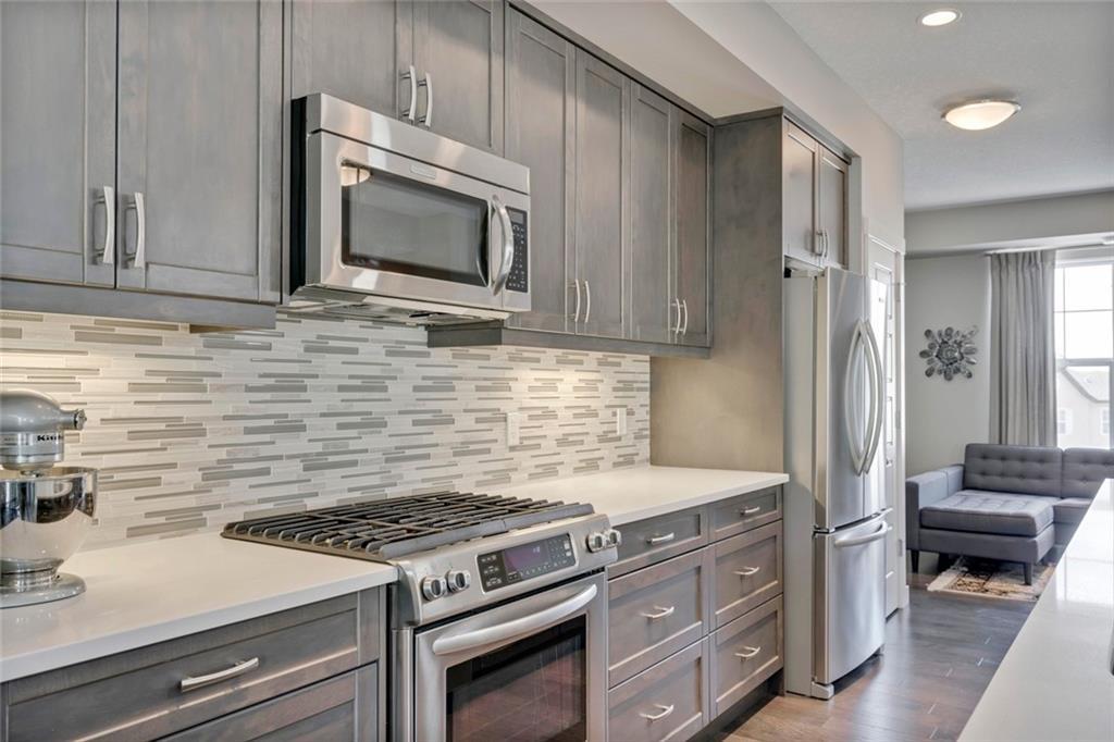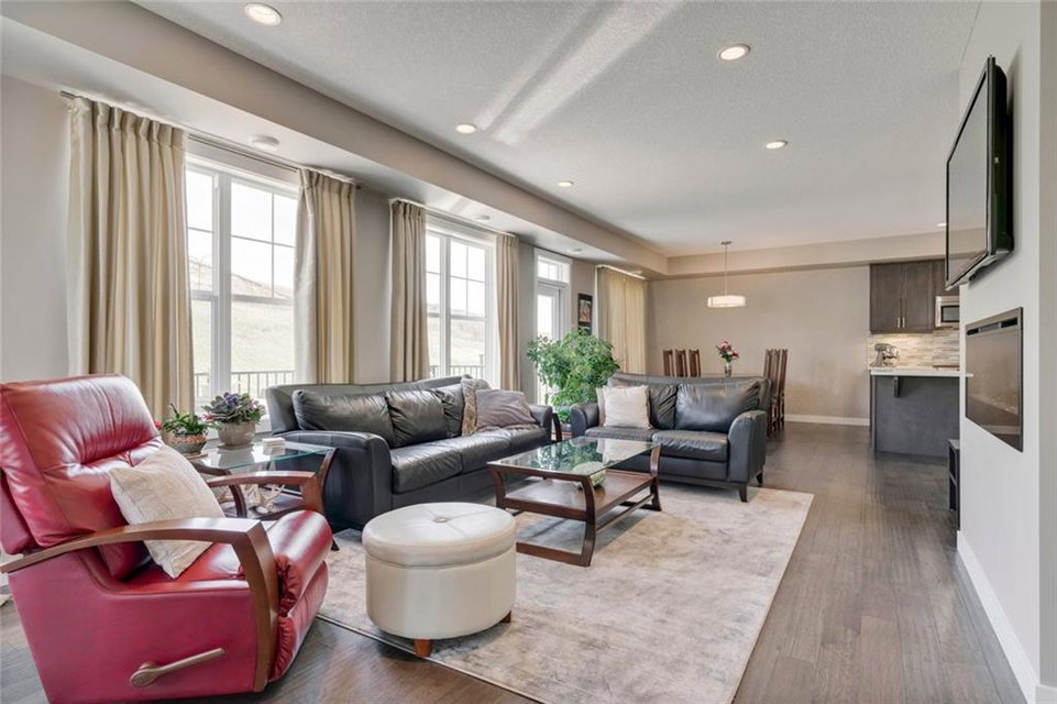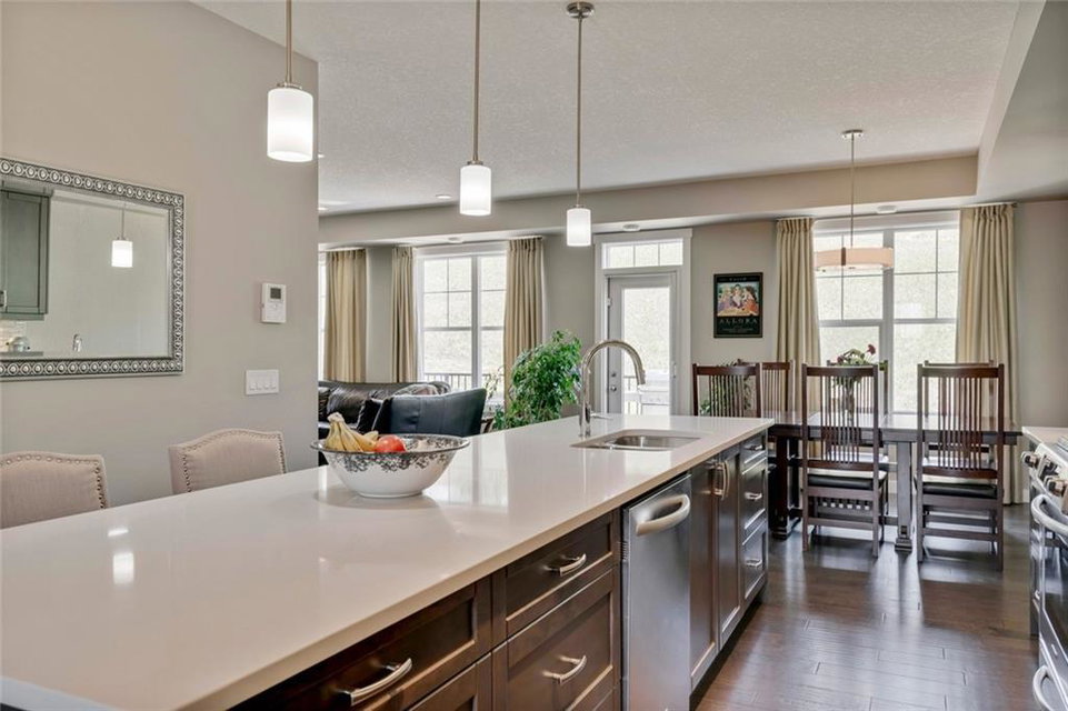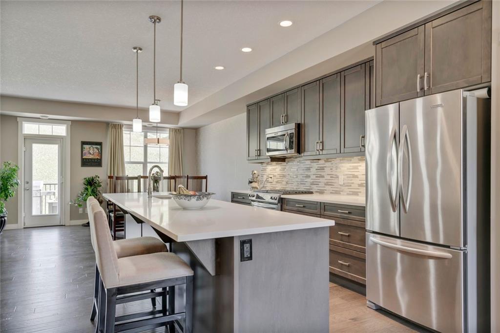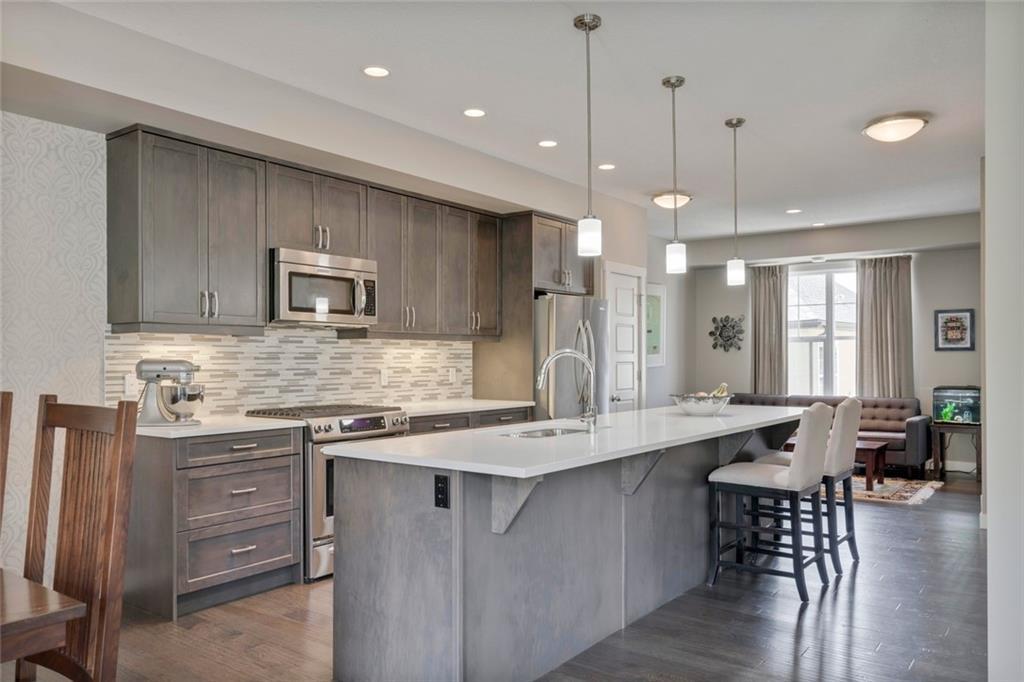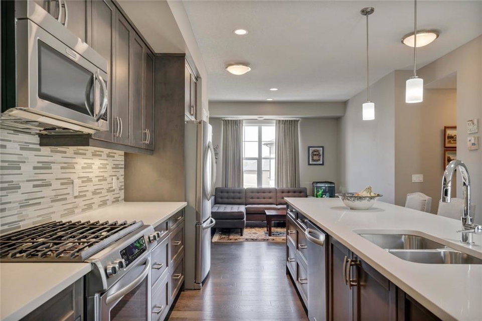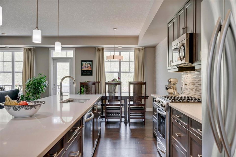 Absolutely beautiful Estate Townhome located in the heart of Riverstone! This 2 bedroom, 2 bathroom end unit townhouse features over 1,450 square feet of living space on one level with a double attached garage. The main living area is completely open and perfect for entertaining. Complete with a gas range, oversized granite island & timeless cabinets with pot and pan drawers throughout. The large flex space off of the kitchen is perfect for a home office, den, children’s play are or reading nook. The large master bedroom has additional windows (due to being an end unit), an en suite with dual sinks & walk-in shower & a walk-in closet. The second bedroom, main bathroom & laundry room complete the living space. A large balcony faces the escarpment, providing beautiful views of wildlife combined with full privacy. The partial undeveloped basement off of the double attached garage provides ample storage space for those downsizing. With one of the best locations at Mosaic Riverstone, with is a must see!