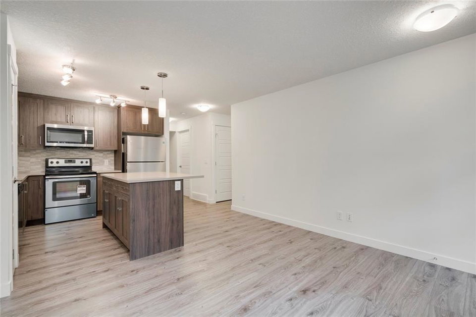 This open layout plan is the perfect amount of space for your new home! This home provides you with the comfort of single level living with the convenience of your own tandem (double) attached garage. The new L-shaped kitchen with island has ample storage with full height cabinetry and beautiful quartz countertops. The main living area has durable laminate flooring with tile in the bathroom. Stainless steel appliances and washer and dryer are all included with this brand new home! Start your new maintenance-free lifestyle right away in the comfort of your new Ivory home in the beautiful community of Livingston! Complete with a warm colour palette, this beautiful new home is fully move-in ready! This new home includes legal closing costs and comes with a 10 year Alberta New Home Warranty.