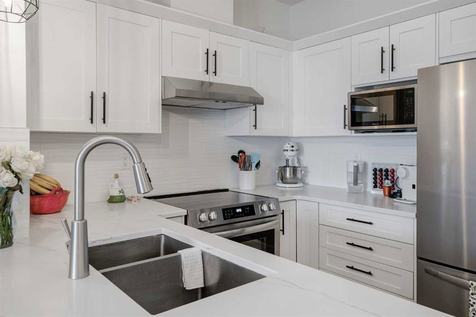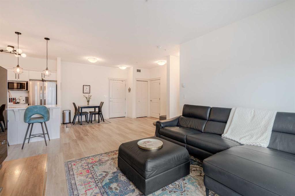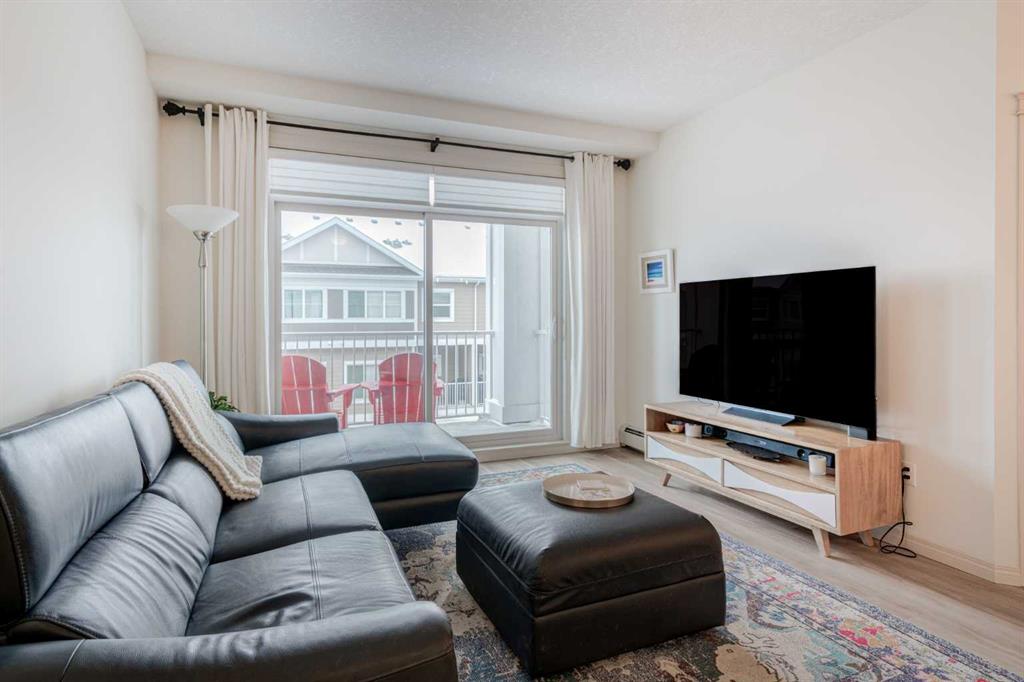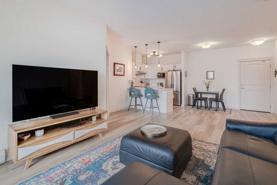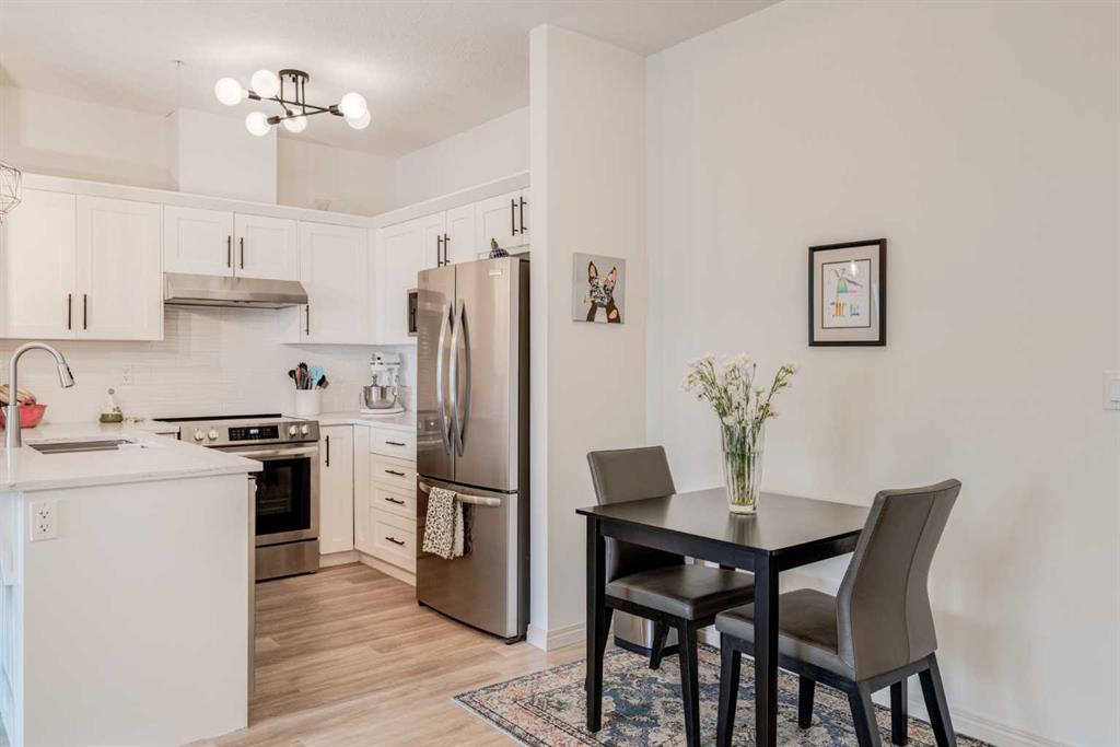 Welcome to this beautiful condo located in the sought-after community of Cranston that is perfect for investors, first-time buyers, or those looking to downsize. This 2 bedroom, 2 bathroom property features an open-concept layout with nearly 850 square feet of living space. New vinyl flooring flows throughout the entire unit (no carpet) and large windows allow natural light to pour throughout the space. The kitchen offers new quartz countertops, new stainless steel appliances, plenty of storage, and a breakfast bar for additional seating. The kitchen overlooks the living and dining area – making this the perfect space for entertaining friends and family. The primary bedroom features ample space, a walk-in closet, and a 3-piece ensuite bathroom, and the secondary bedroom has its own 4-piece bathroom. Completing this condo is a spacious and covered balcony, in-unit laundry, and a large storage room. Additional updates include fresh paint throughout (including baseboards and trim), new light fixtures, new window coverings, new faucets, newer bathroom vanities, and new bathroom mirrors. This unit offers titled parking in the building’s secure underground parkade along with an assigned storage locker that is conveniently located behind the parking stall. Located within the desirable Cranston Ridge development, this condo is perfect for pet owners with no size or weight restrictions. Ideally situated within Cranston, this property is a short walk from nearby parks, shopping, restaurants, schools, and trails along the ridge and river that offer breathtaking views of the mountains. Access around the city and daily commuting is easy with quick access to both Deerfoot and Stoney Trail. Don’t miss out on this incredible opportunity in Cranston!