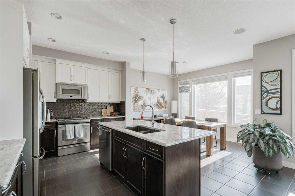 This stunning 3-bedroom, 2.5-bathroom home has been meticulously maintained and is perfect for a young couple or growing family seeking an unmatched location in a heavily upgraded home. Set on a spacious 4,284 square-foot pie-shaped lot, this home boasts over 2,200 square feet of beautifully developed space + includes a full basement that awaits your imagination. At the front of the home is a den featuring a 2-sided gas fireplace—ideal for a work-from-home space, or it could easily be converted into a children’s play area. The beautiful kitchen features timeless two-tone cabinetry, with white upper cabinets and maple wood lower cabinets and island. It’s complete with granite countertops, a Silgranit sink, a suite of stainless-steel appliances, and a walk-through pantry with additional storage. The kitchen opens to the dining area, which features large south-facing windows overlooking the backyard, and the living room, which includes a stunning feature wall and the other side of the 2-sided gas fireplace. Completing the main level is a 2-piece bathroom and a rear mudroom with access to the garage and pantry, providing added convenience for daily living. Resilient tile flooring flows throughout the main level – perfect for those with children and pets. Timeless maple railing with iron spindles leads to the second level. The upper level offers three bedrooms, with a central bonus room that provides separation between the primary suite and the secondary bedrooms. The primary suite is flooded with natural light, features a sleek accent wall and is complete with a 5-piece ensuite with dual sinks, granite countertops, a jetted soaker tub, a walk-in shower, and a large walk-in closet. Two additional large bedrooms, a full bathroom, and a laundry room with a laundry sink and extra storage complete this level. The unfinished basement is ready for your personal touch, with plenty of space for a 4th bedroom, full bathroom, and recreation room. The south-facing backyard is an entertainer’s dream, offering plenty of green space for the whole family to enjoy, with no neighbours behind for ultimate privacy. The pie-shaped lot provides a large side yard and a concrete patio—perfect for hosting friends and family all summer long. Additional upgrades and features include ceiling speakers, tinted south-facing windows, 60 amp backyard power, a garden shed, exposed aggregate driveway, central air conditioning and more! This beautiful original-owner home has been heavily upgraded and lovingly cared for over the years and is ready for you to move in and make it your own. **3D virtual tour available upon request.**