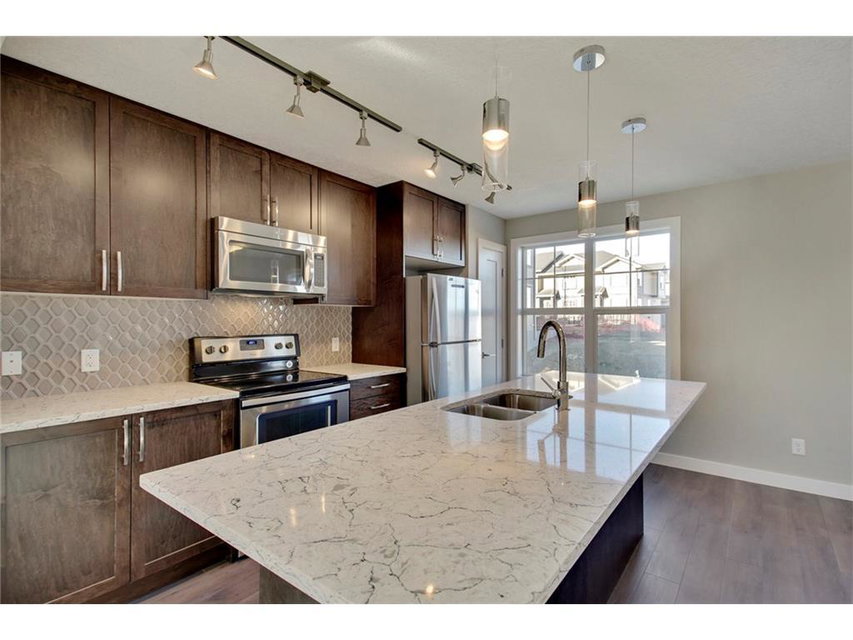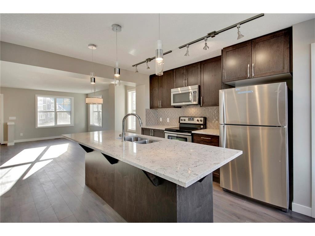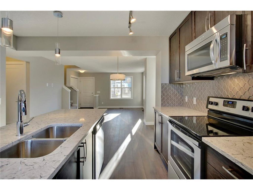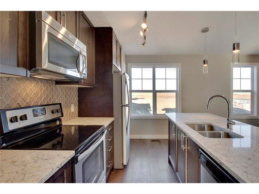 This 3 bedroom home is made for entertaining and has everything you need in the highly desired community of Evanston! With a south facing front gated space, you’ll enjoy sun on your patio and ample light in this bright end home. Home features include laminate and tile flooring throughout the main floor, stone countertops, stainless steel appliances and much more. The upper level is complete with a spacious master bedroom that includes a walk0in closet and it’s own private en suite as well as two additional bedrooms and a main bathroom. Enjoy your double attached garage for the upcoming winter months. You can move into this home right away and enjoy the benefits of being within walking distance to Sobeys, Shoppers Drug Mart, restaurants and retail shops! Home includes a full builder warranty, ten year Alberta New Home Warranty as well as legal closing costs. Come and see this beautiful home – you will be happy you did!