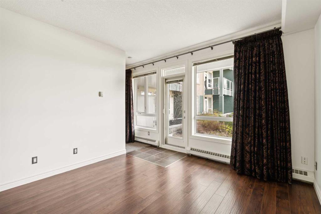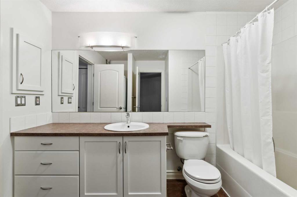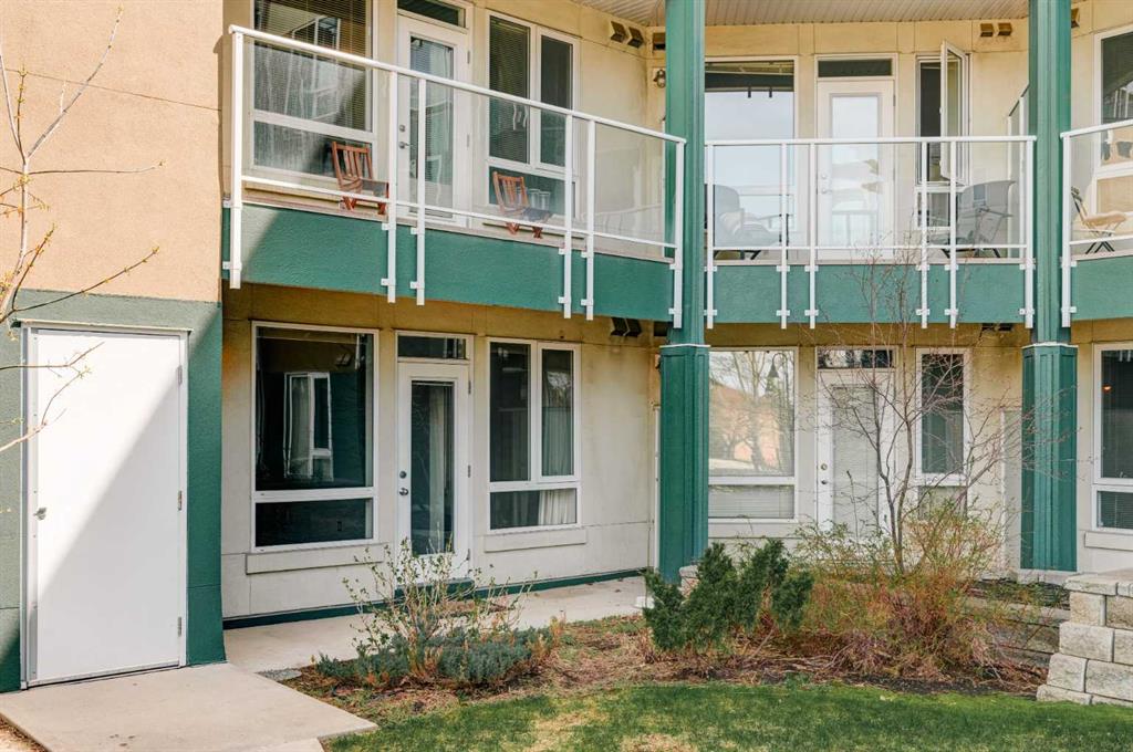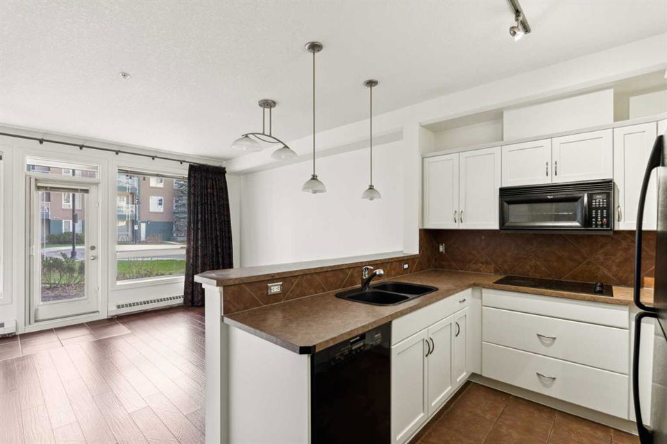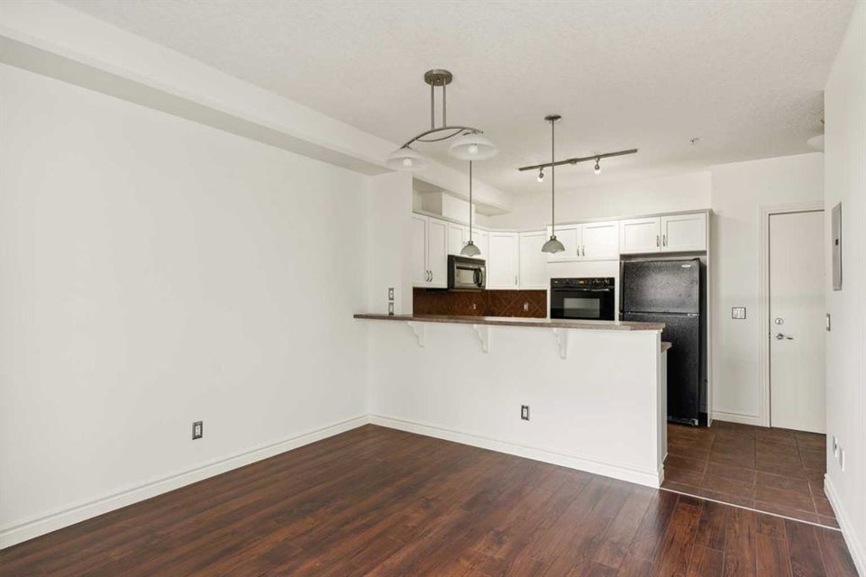 Welcome to this beautifully updated condo located in the sought-after community of Varsity that is perfect for investors, first time buyers, or students. This 1 bedroom, 1 bathroom unit features an open-concept layout with 553 square feet of living space and is located directly across from the University of Calgary. Durable laminate flooring and ceramic tile flow throughout the freshly painted unit and large windows allow natural light to flow throughout the space all day. The kitchen offers a breakfast bar for additional seating and a built-in stove and oven to maximize storage space in the updated kitchen with refinished cabinetry. The kitchen overlooks the dining and living area – making this the perfect space for entertaining friends and family. The spacious bedroom can comfortably fit a king-sized bed with additional furnishings and connects directly to the 4-piece bathroom that features refinished cabinetry, stacked laundry, and a separate door to the main living space. Completing this unit is a secure underground titled parking stall, titled storage, and a spacious patio that offers private access directly to the unit. The building offers a well-equipped gym and a beautiful communal courtyard with a barbecue to enjoy during the warmer months. Ideally situated in Varsity, this property is across from the University of Calgary campus and nearby shopping and restaurants. Access around the city and daily commuting is easy with quick access to Crowchild Trail and Highway 1. Don’t miss out on this incredible opportunity in Varsity!