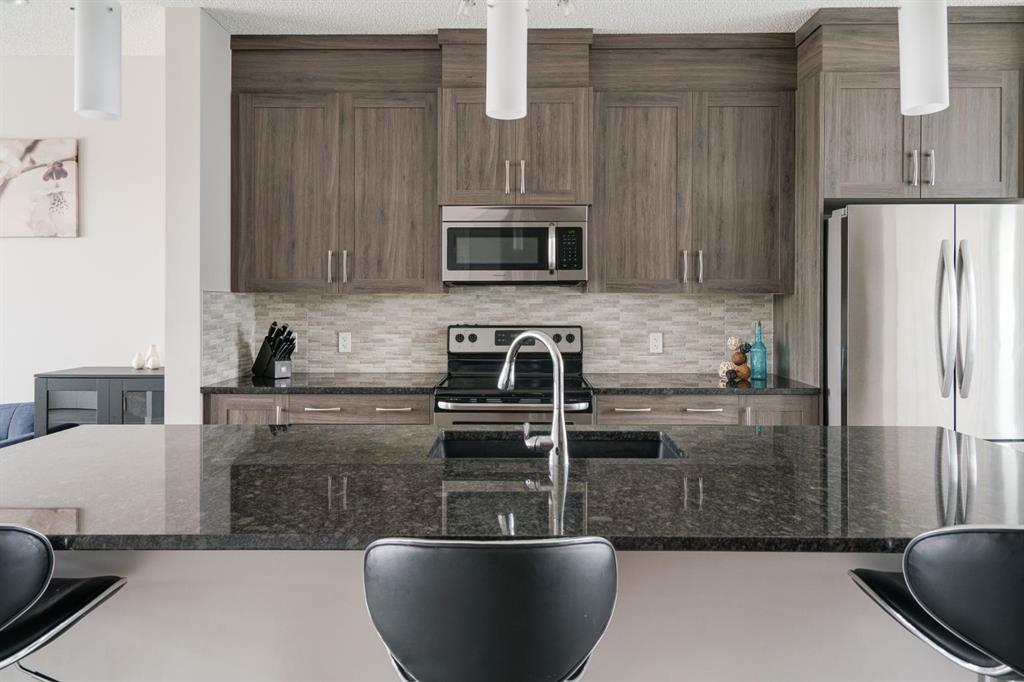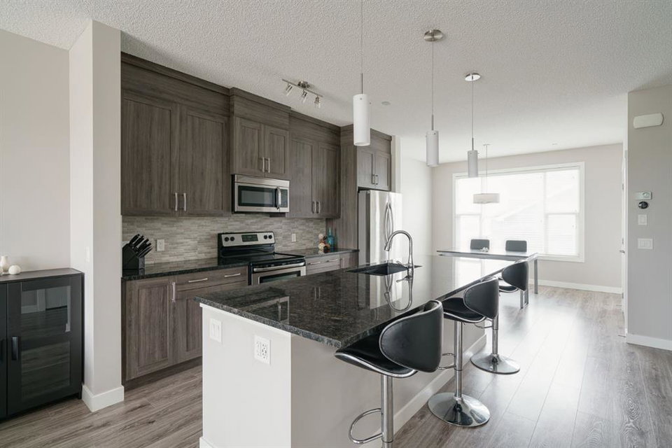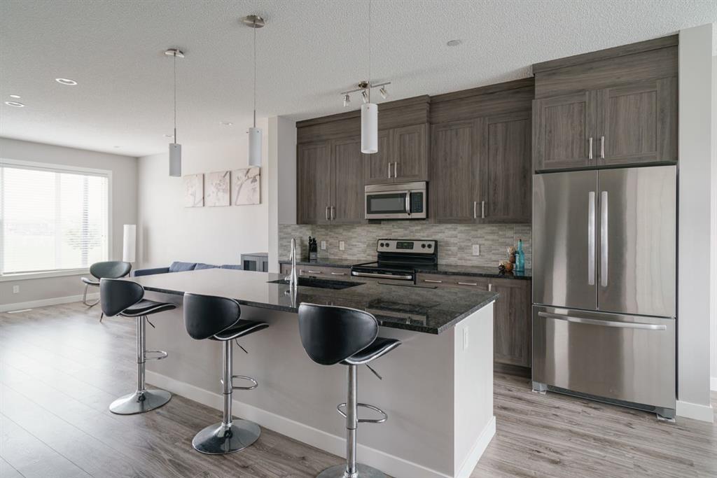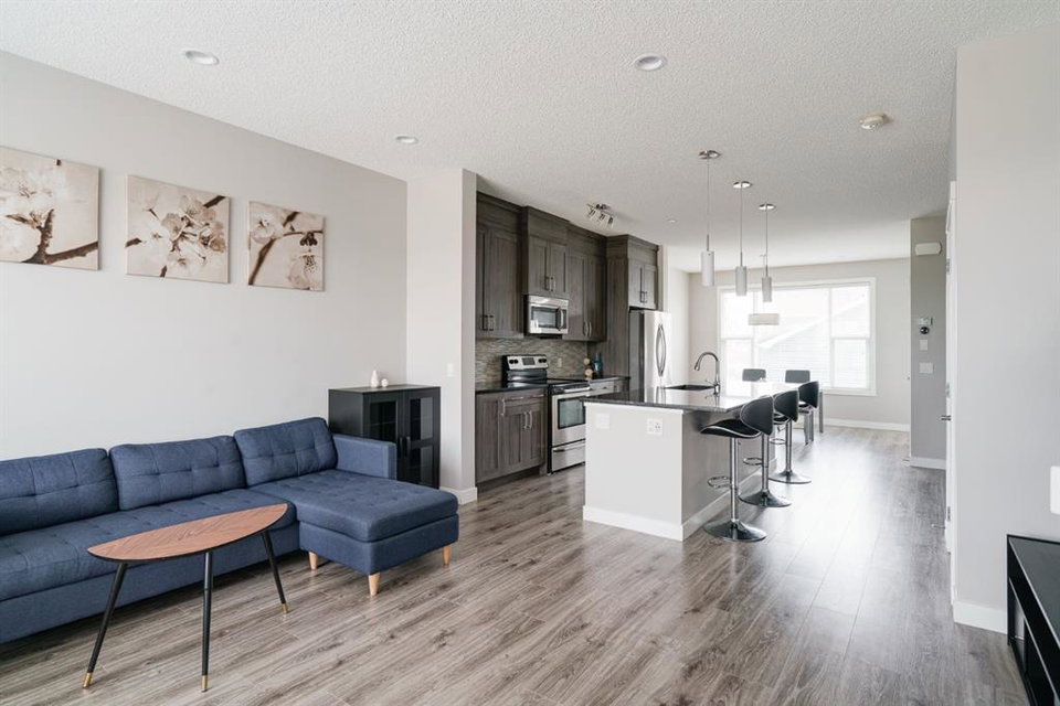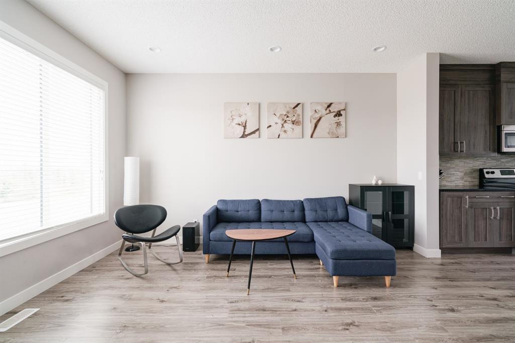 This immaculate home features 3 bedrooms, 2.5 bathrooms and is situated in desirable Livingston with easy access to parks, pathways, green spaces and directly across from the Homeowners Association and a future school – this property is perfectly located! The open concept layout home offers nearly 1,600 sq.ft of developed space with a kitchen that is centred between the living and dining rooms, each with large windows allowing natural light to pour into the home from morning to evening. The kitchen is finished with timeless full height cabinets to the ceiling, a large island, quartz countertops and a suite of stainless-steel appliances including a French door fridge with pull out freezer. The kitchen overlooks both the living and dining areas – making the perfect space for entertaining guests or those with young children. Completing the main level is a flex space, perfect for a home office or kids play area, 2 pc powder room and a rear mudroom. The upper level of the home features a primary suite which is complete with an expansive 5 pc ensuite including dual sinks, soaker tub, walk-in shower and a walk-in closet. Two more bedrooms, a full bathroom and full laundry room complete the second level. The basement offers endless potential for future development with space for a 4th bedroom, full bathroom and family room. The backyard has been fully sodded and offers plenty of green space for the family to enjoy. The double detached garage will keep your vehicle and valuables safe and secure year-round. Central Air Conditioning will keep you cool all summer long while you capture the sunshine in the backyard on summer evenings. This well-cared for home is perfect for a first-time buyer, a growing family or investor and is centrally located within the community offering quick access to major thoroughfares, downtown and the airport.