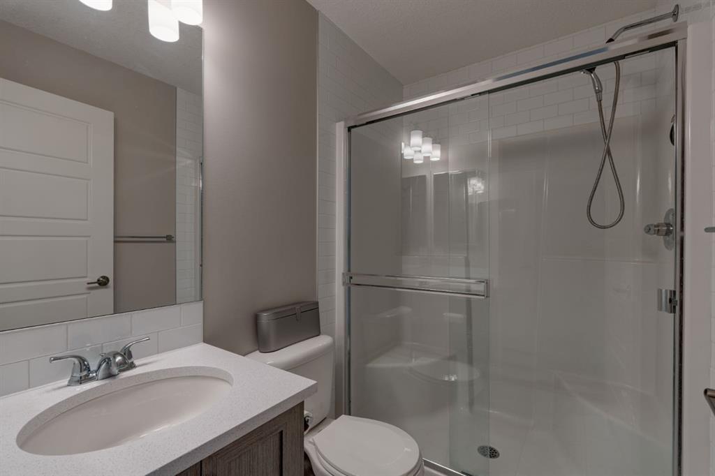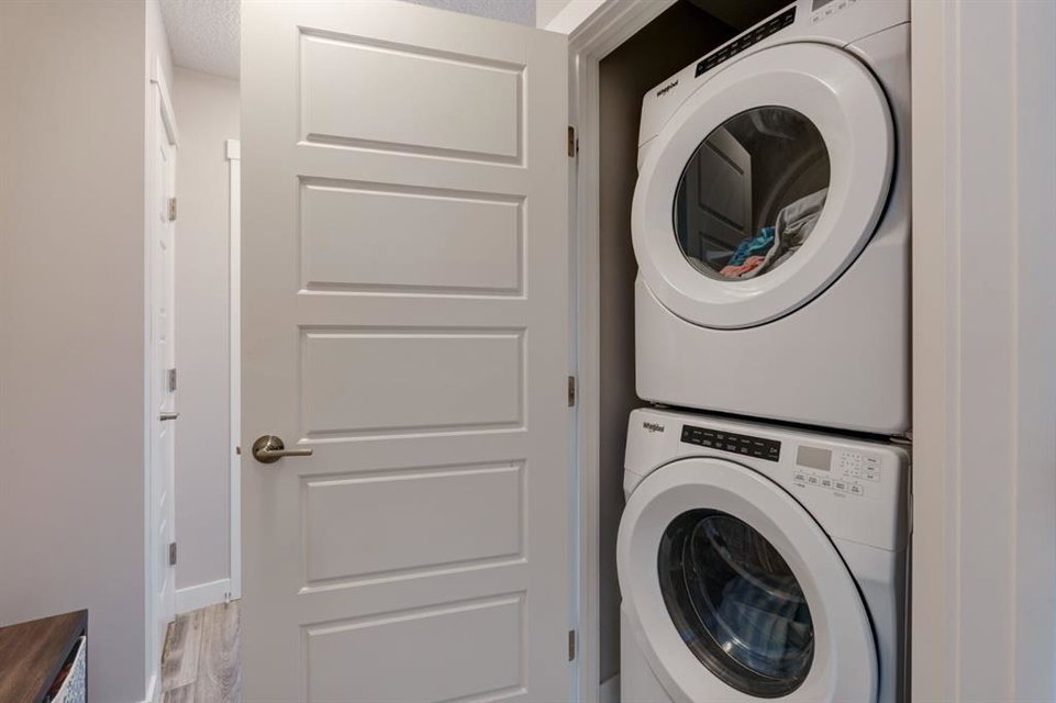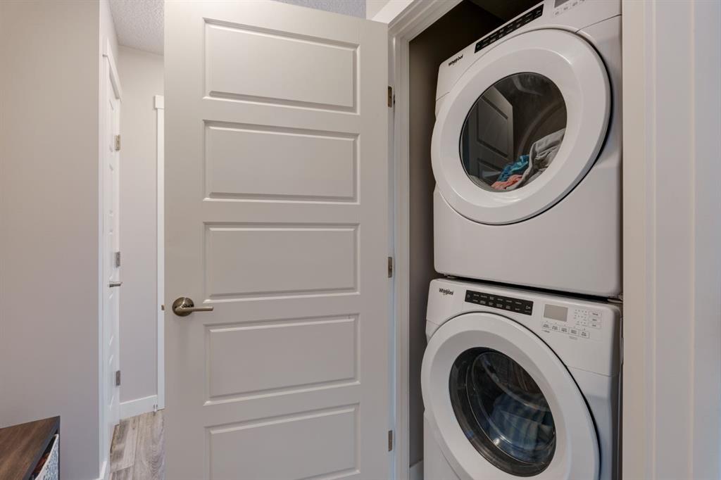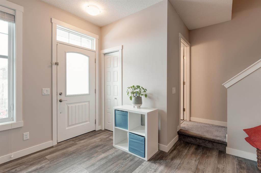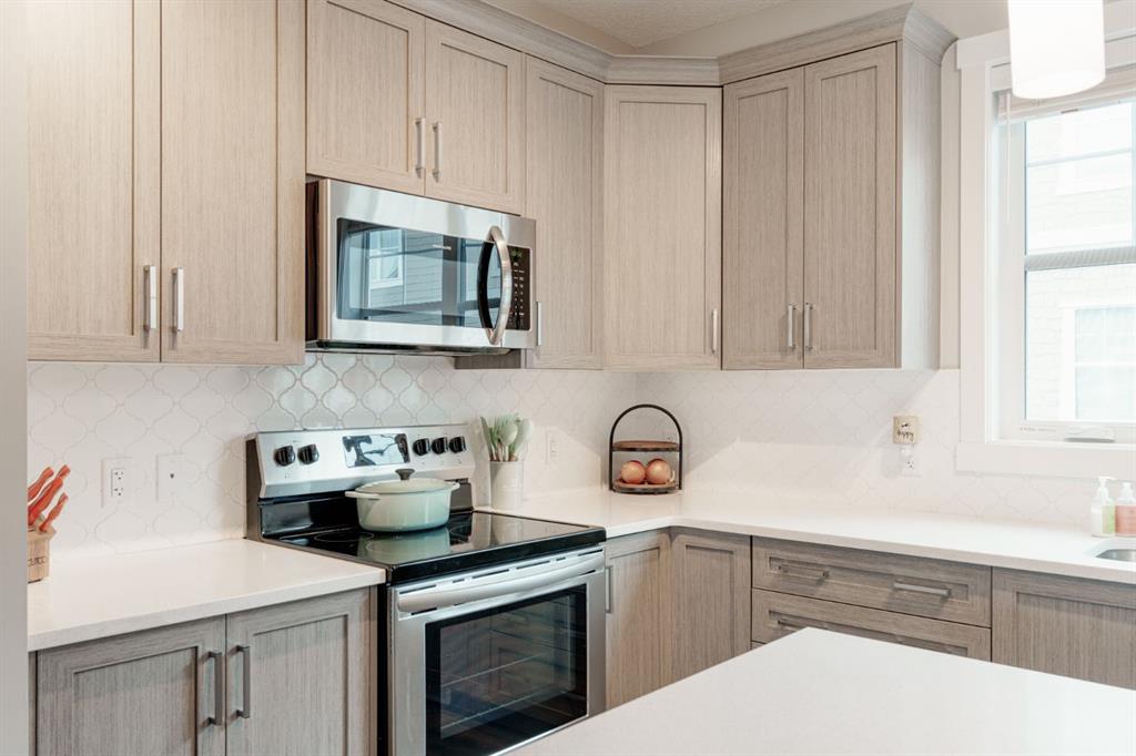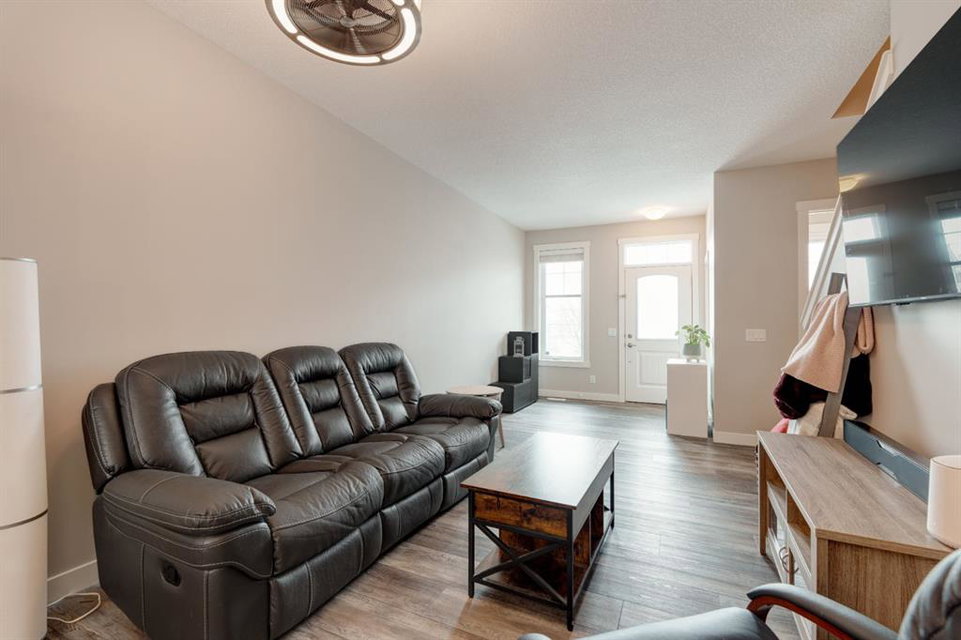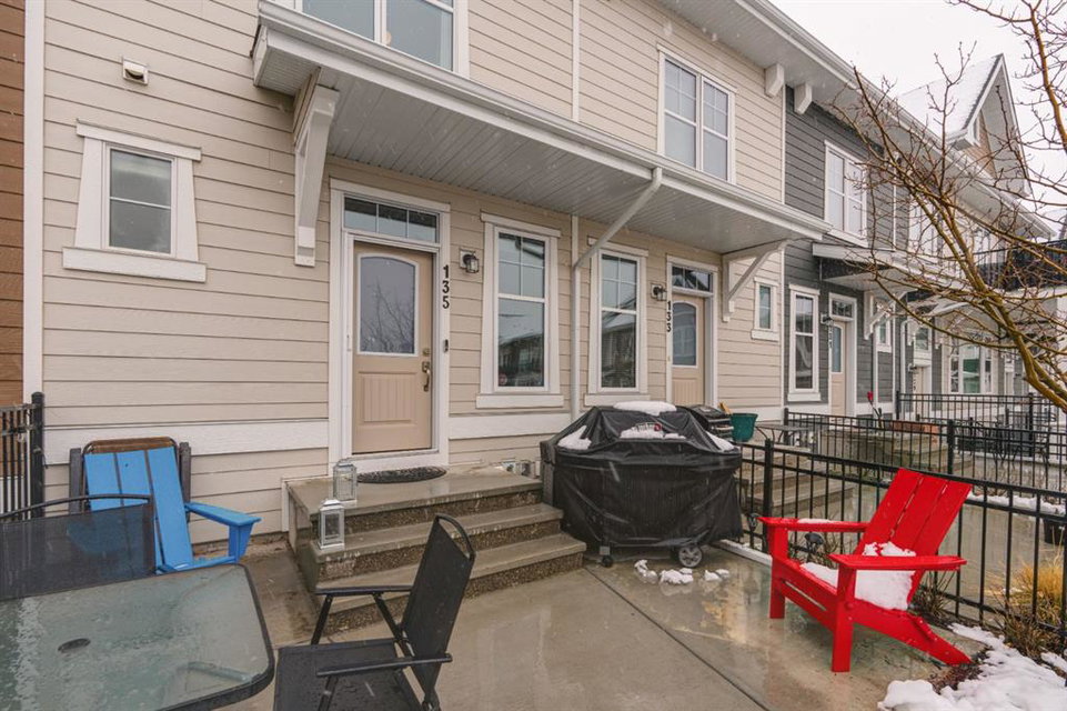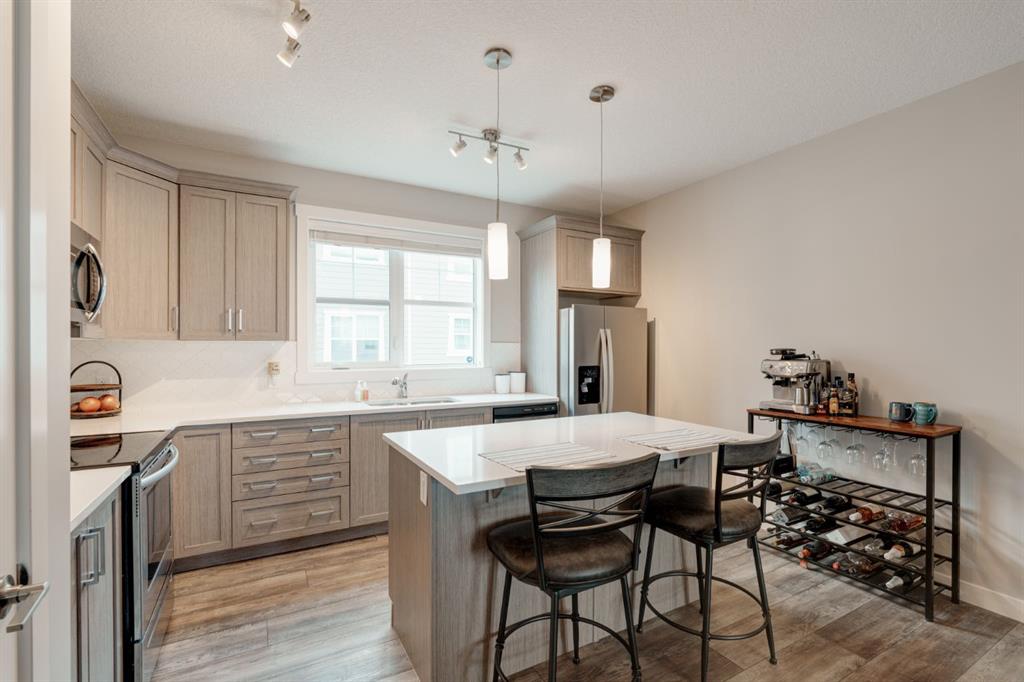 This well-cared for and like-new townhomes features 2 bedrooms, 2.5 bathrooms and a private double attached (tandem) garage located in the heart of Riverstone overlooking green space. The bright and spacious main level has an open concept layout with a large kitchen that overlooks both the living and dining spaces. The kitchen is complete with warm mid-tone cabinetry, quartz countertops, a full pantry, a suite of stainless steel appliances and an island with additional seating. A large window over the kitchen sinks allows natural light to pour through the space all day long. Resilient vinyl flooring flows throughout the main level and the open layout makes the perfect space for entertaining. The main level is complete with a 2 pc powder room. On the upper level there are two primary bedrooms, each with their own private ensuites. Vinyl flooring flows throughout the upper level as well – perfect for those with pets, children or allergies to carpet. The largest primary bedroom overlooks the park / green space on the development and captures natural light all evening long. The room is complete with double closets and a 3 pc ensuite with walk-in shower. The second primary bedroom includes double closets and a 4 pc ensuite with tub and shower. The central hallway between the bedrooms includes a linen closet, conveniently located upper-floor laundry and a flex space with ample room for a desk if desired. The private double tandem garage has space for two vehicles or could be a great spot for a home gym + additional storage for those with one vehicle. This home is equipped with central A/C to keep you cool all summer long and the attached garage will keep your vehicle and valuables safe as well. Located in one of the best spots – this townhouse overlooks the development’s green space and is within walking distance to the countless pathways and Bow River – all within Riverstone! With easy access to Seton’s amenities and major roads, this property is perfectly located and ideal for first time buyers, downsizers or investors! **Virtual tour available upon request.