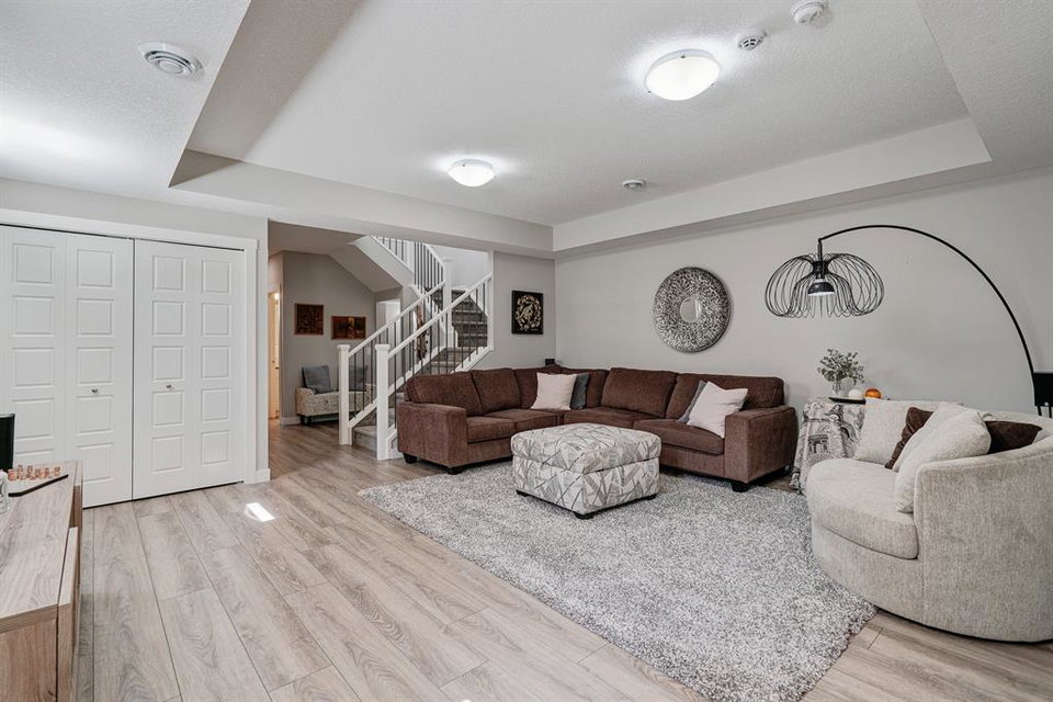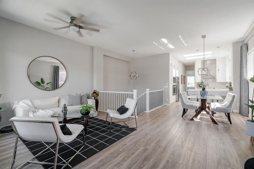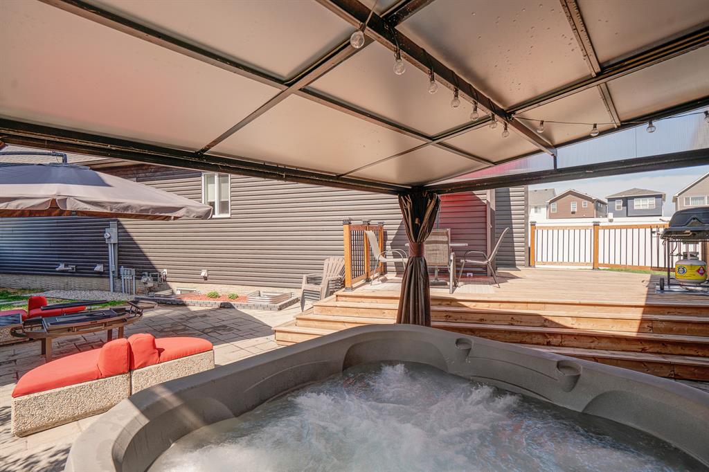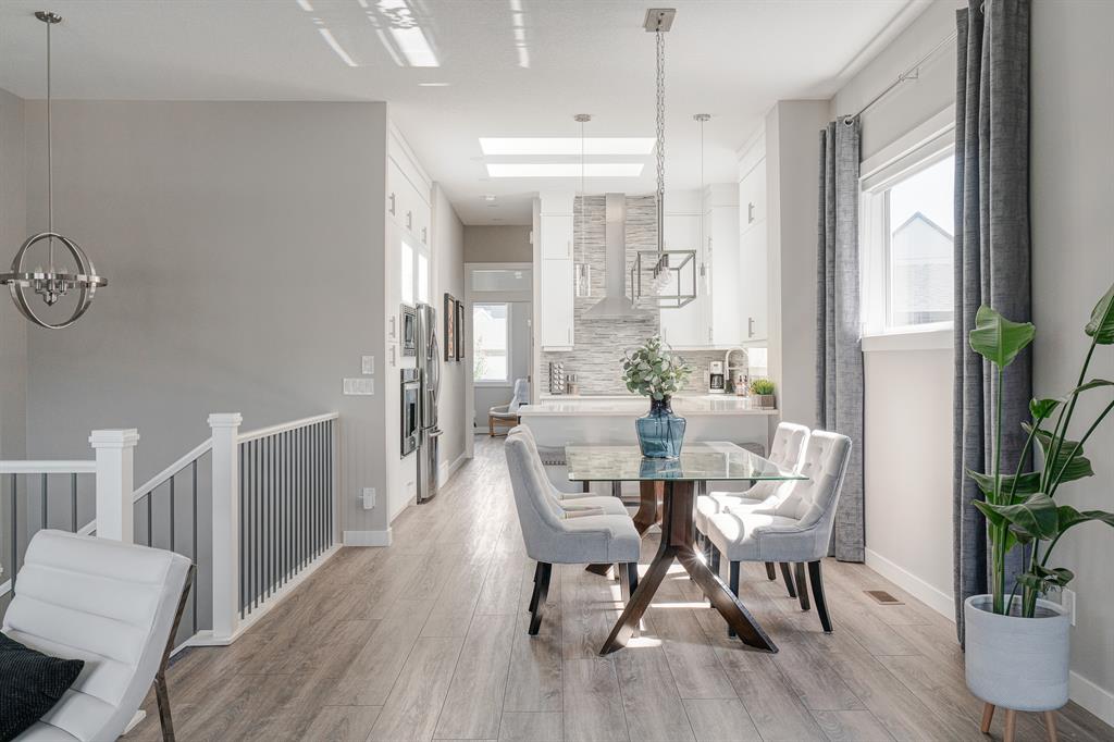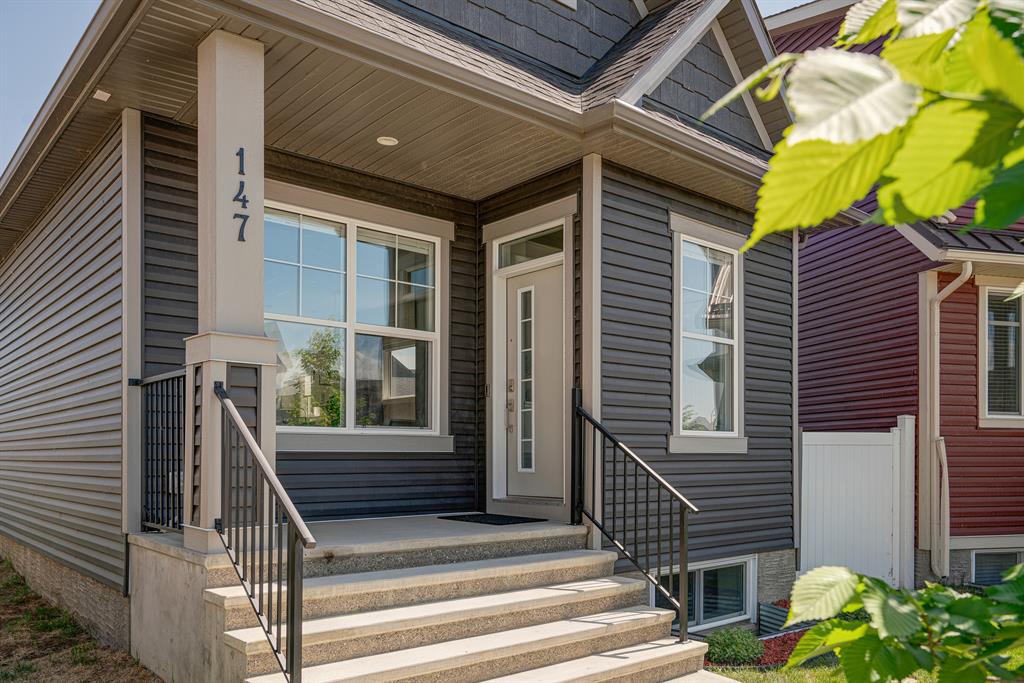 Welcome to 147 Seton Heath, located in the heart of Seton and featuring 3 bedrooms, 2.5 bathrooms, and nearly 2,200 square feet of developed living space in this beautifully appointed bungalow with a triple detached garage on a pie lot! The main level features an open concept layout, 10-foot ceilings with skylights, and southeast facing windows that allow plenty of natural light into the home throughout the day. Luxury vinyl plank flooring flows throughout the main level and leads into the living area, situated around an electric fireplace, and the spacious dining area. The kitchen features stainless steel appliances, full-height cabinetry, quartz countertops, and a breakfast bar for additional seating. The kitchen overlooks the dining and living areas – making this the perfect space to entertain friends and family. The main level is completed by a 2-piece bathroom and the primary bedroom that overlooks the backyard and features a stunning 5-piece ensuite bathroom and a large walk-in closet. The fully developed lower level offers an additional two bedrooms, a spacious rec room, a 4-piece bathroom, and a wet bar. Situated on a pie lot, this home offers a large backyard featuring a deck, landscaped patio, and a hot tub with its own gazebo. Additional features of this home include a water softener and water filtration system for everyday comfort as well as a triple detached garage and single parking pad, offering ample storage and parking space. Located in the highly sought-after community of Seton, this home offers easy access to nearby amenities and quick access to Deerfoot for daily commuting.