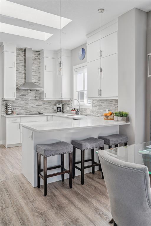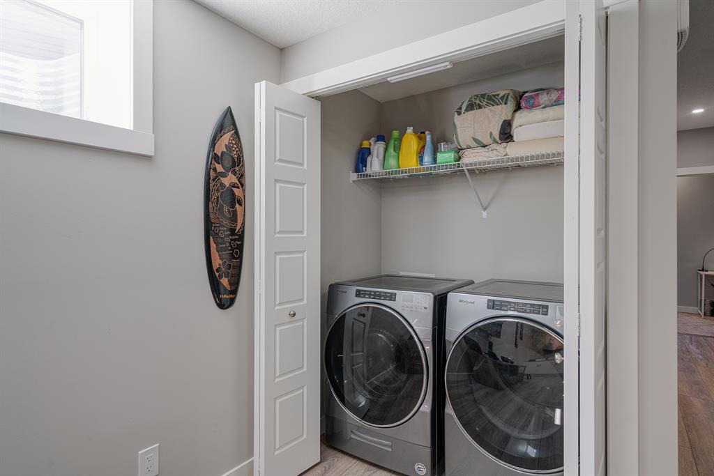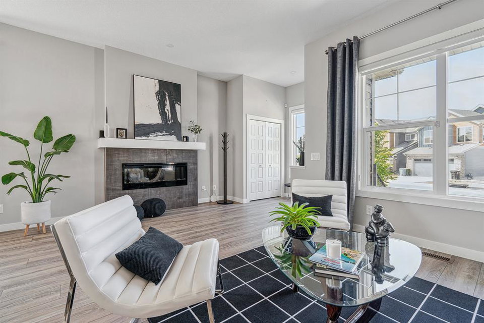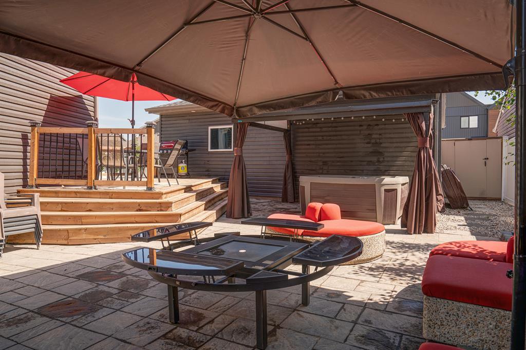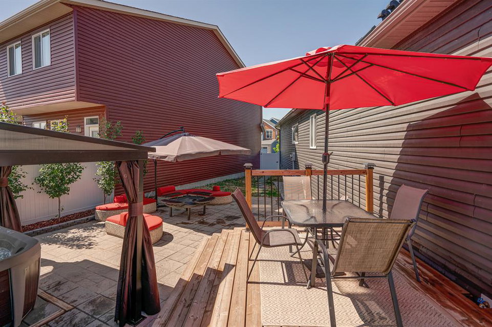 Welcome to 147 Seton Heath, located in the heart of Seton and featuring 3 bedrooms, 2.5 bathrooms, and nearly 2,200 square feet of developed living space in this beautifully appointed bungalow with a triple detached garage on a pie lot! The main level features an open concept layout, 10-foot ceilings with skylights, and southeast facing windows that allow plenty of natural light into the home throughout the day. Luxury vinyl plank flooring flows throughout the main level and leads into the living area, situated around an electric fireplace, and the spacious dining area. The kitchen features stainless steel appliances, full-height cabinetry, quartz countertops, and a breakfast bar for additional seating. The kitchen overlooks the dining and living areas – making this the perfect space to entertain friends and family. The main level is completed by a 2-piece bathroom and the primary bedroom that overlooks the backyard and features a stunning 5-piece ensuite bathroom and a large walk-in closet. The fully developed lower level offers an additional two bedrooms, a spacious rec room, a 4-piece bathroom, and a wet bar. Situated on a pie lot, this home offers a large backyard featuring a deck, landscaped patio, and a hot tub with its own gazebo. Additional features of this home include a water softener and water filtration system for everyday comfort as well as a triple detached garage and single parking pad, offering ample storage and parking space. Located in the highly sought-after community of Seton, this home offers easy access to nearby amenities and quick access to Deerfoot for daily commuting.