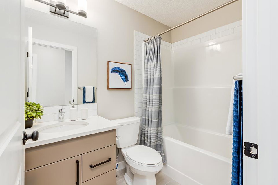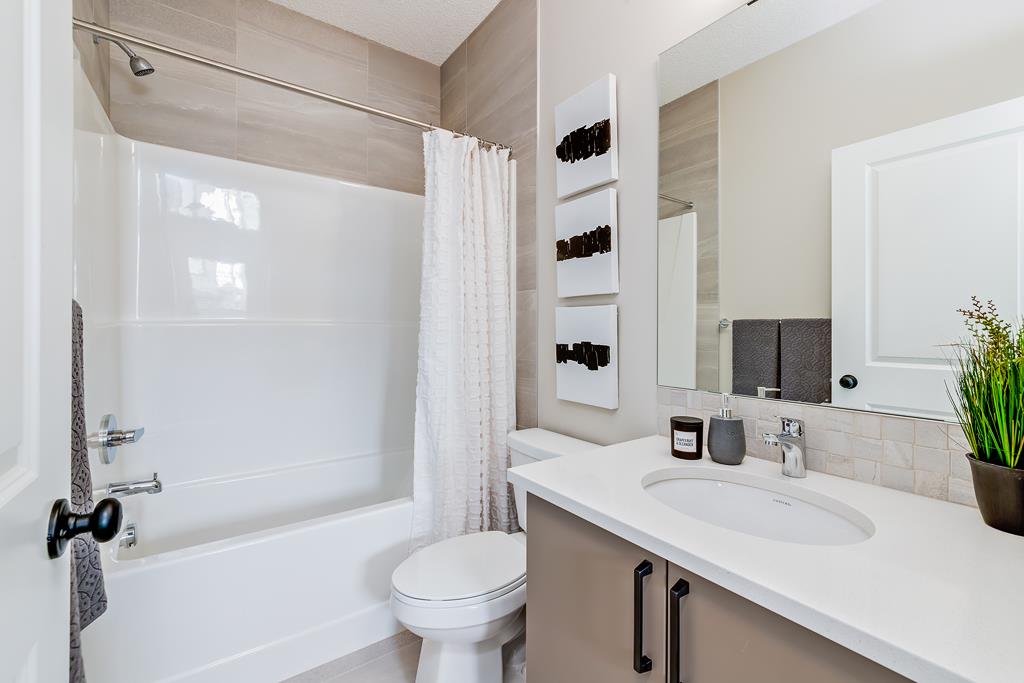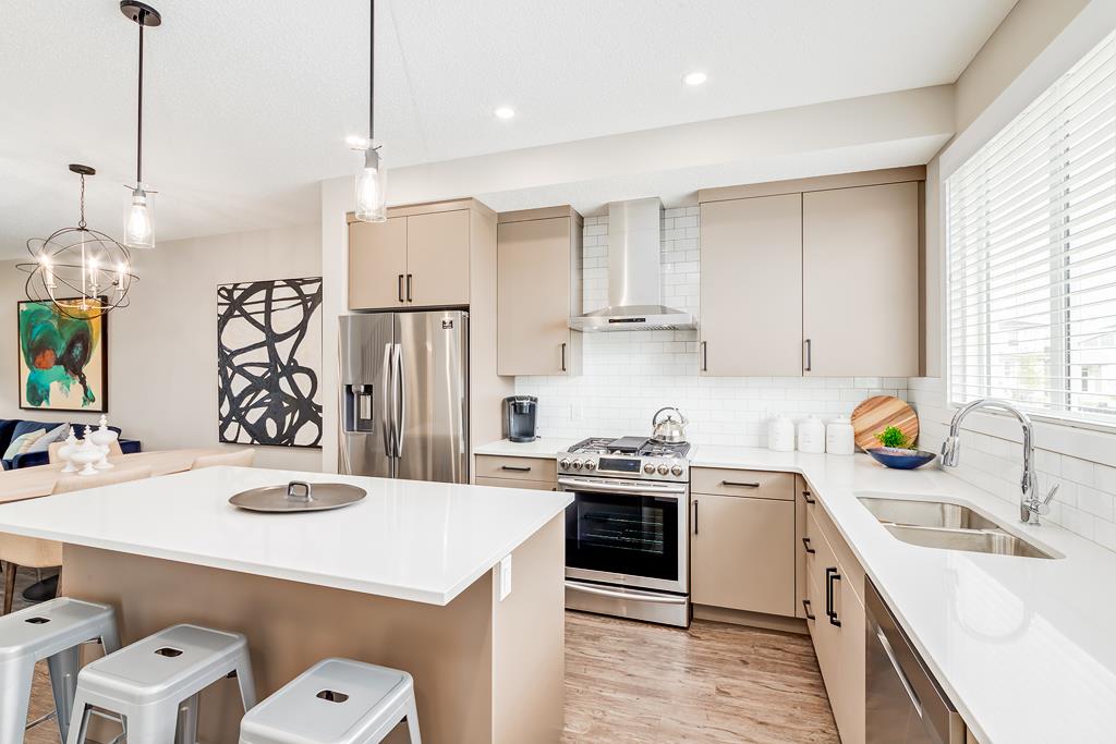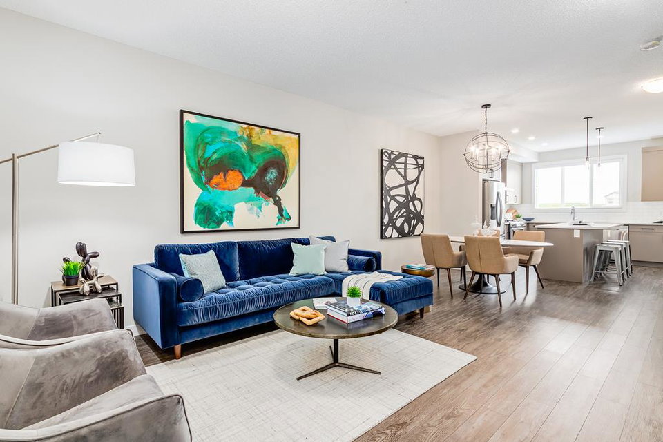 Boasting an array of sleek finishes and a thoughtfully designed layout, this beautiful 3-bedroom, 2.5-bathroom townhouse is a paradigm of contemporary living. Featuring 1,522 sq. ft. of living space over two levels (1,412 RMS) + an undeveloped basement, this home is perfect for young professionals, investors or a small family. The main level has an open concept design with a rear kitchen. Walls of windows at either end of the home allow for natural light to pour through the home all day long. Resilient wide-plank vinyl flooring flows throughout the main level – perfect for pets and children. The kitchen is complete with quartz countertops, 42″ cabinets, and a suite of Whirlpool stainless steel appliances. The southern backyard exposure gets the perfect amount of light throughout the home. The upper level has a large primary bedroom with walk-in closet and a private 4 pc ensuite. Two more bedrooms, a laundry closet and linen closet complete the upper level. The undeveloped basement has ample space for a bedroom, bathroom and full rec room – allowing for growth within this well-designed townhome. Completing the property is a rear double garage to keep your vehicle secure year round. South Shore itself is a uniquely designed community in a span of 77.5 acres with an opportunity to live beside the lake. It is less than a block away from all the restaurants, shops, and grocery stores on rainbow road, and is close to several parks and playgrounds. This brand new home is perfectly located and offers plenty of room to grow within the beautiful community of Chestermere. Please note: Photos are renderings and are not an exact representation of the property for sale.