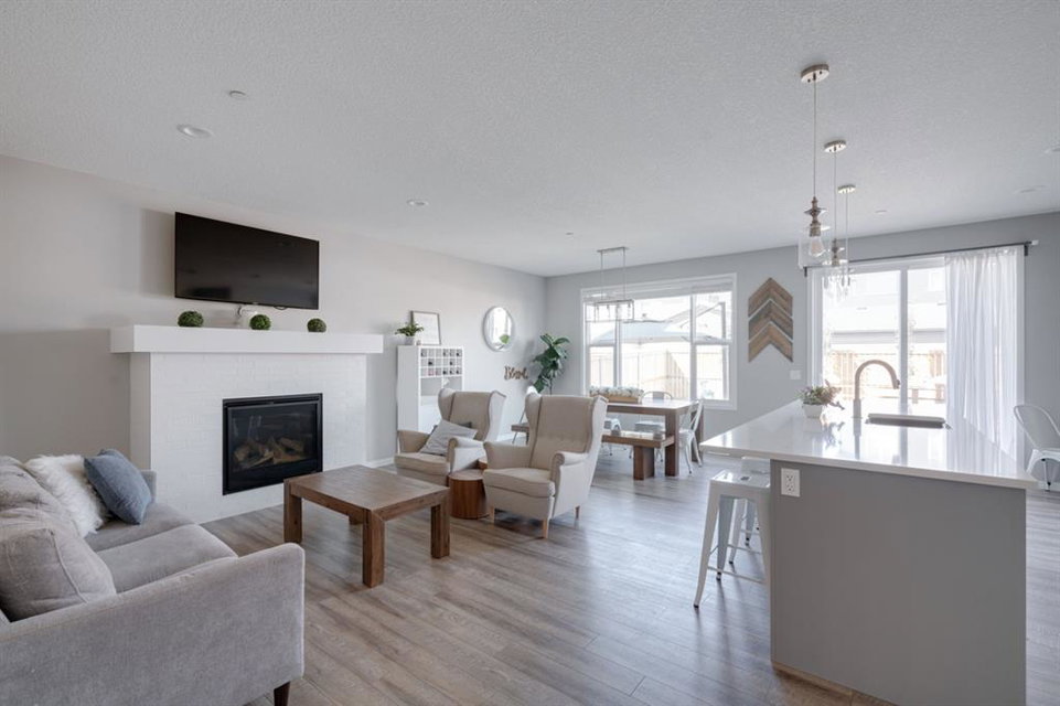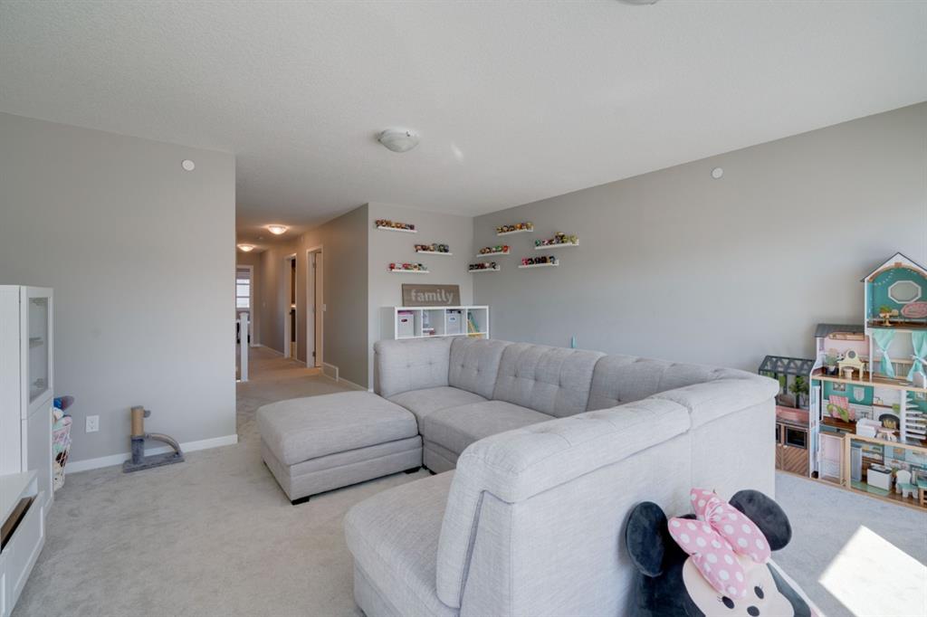 An absolutely stunning property that shows like-new and is fully move-in ready! This beautiful home was timeless designed throughout and features 3 bedrooms, 2.5 bathrooms, a private double attached garage, West backyard (optimal sunshine), central A/C, and an undeveloped basement that has endless possibilities. Located in the new community of Livingston and just blocks from the HOA and all of its amenities, this Cedarglen built home is the perfect fit for any family. The main level is completely open with a bright white kitchen including gas range, chimney hood fan and a large quartz island. The kitchen includes a walk-in pantry and it overlooks both living and dining areas, making it great for entertaining. The living area is complete with a central gas fireplace and a large window allows the dining room to overlook the backyard. Resilient LVP flooring flows throughout the main level – making it very kid and pet friendly! The upper level has an expansive bonus room with a wall of windows allowing for natural light to pour through. The primary bedroom includes a large private en suite with dual sinks, soaker tub, shower and walk-in closet. Two more bedrooms, a main bathroom and laundry room complete the upper level. The backyard has a two-tiered deck and low maintenance landscaping making it perfect for a busy family. Finding a home this well-appointed in such a great location with a West backyard isn’t easy so do not wait – this one will not last!
