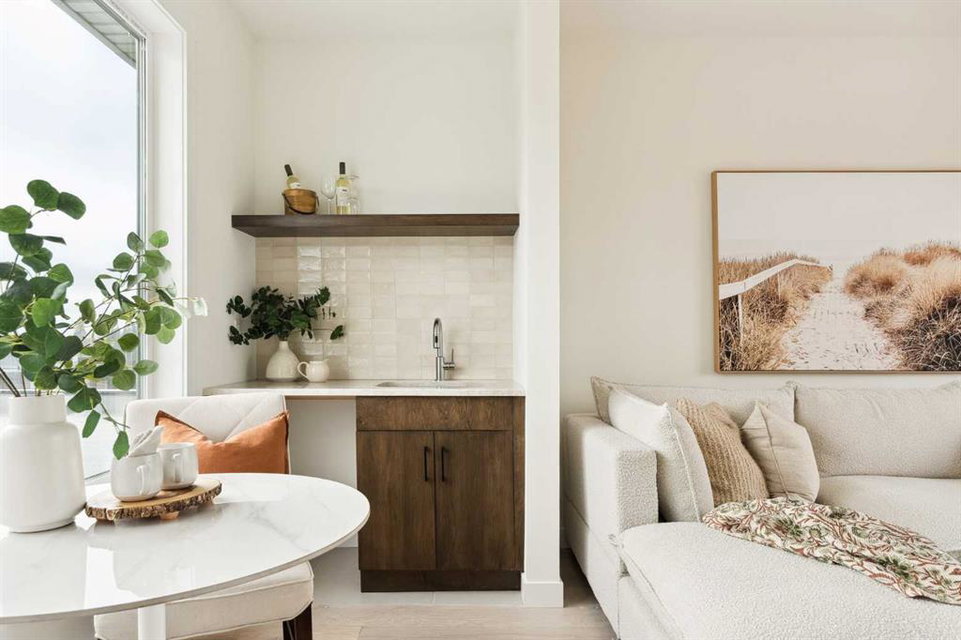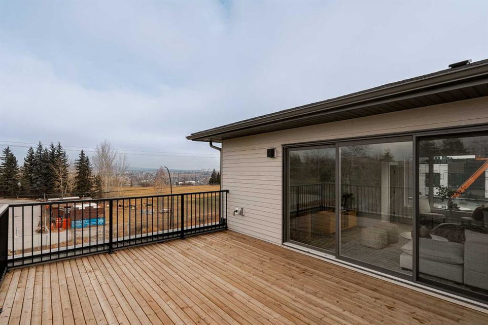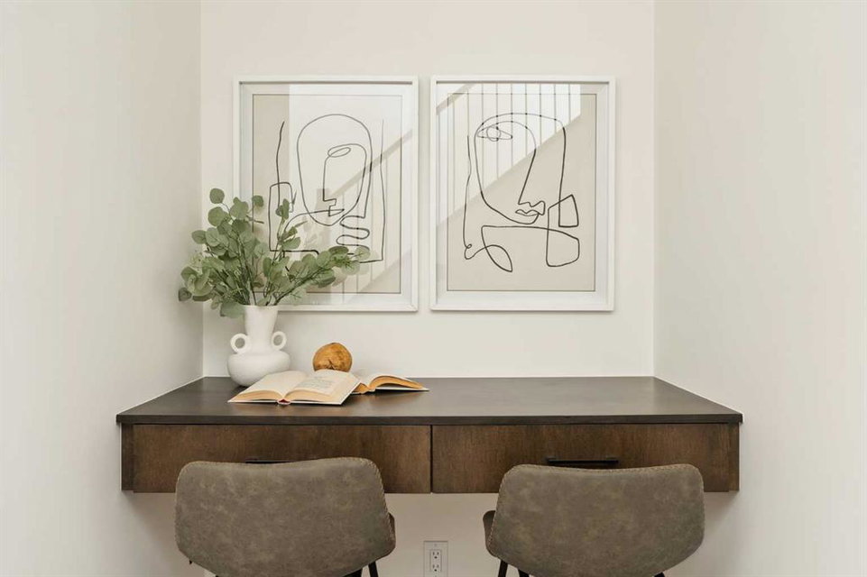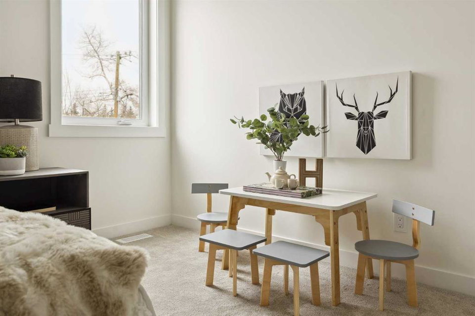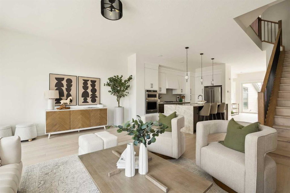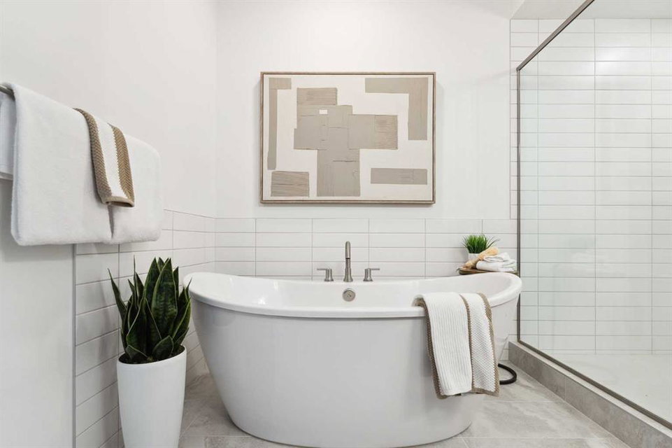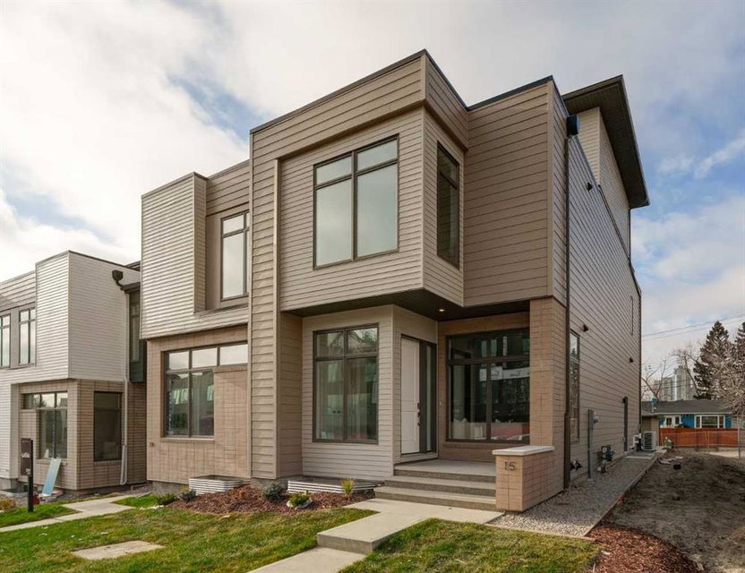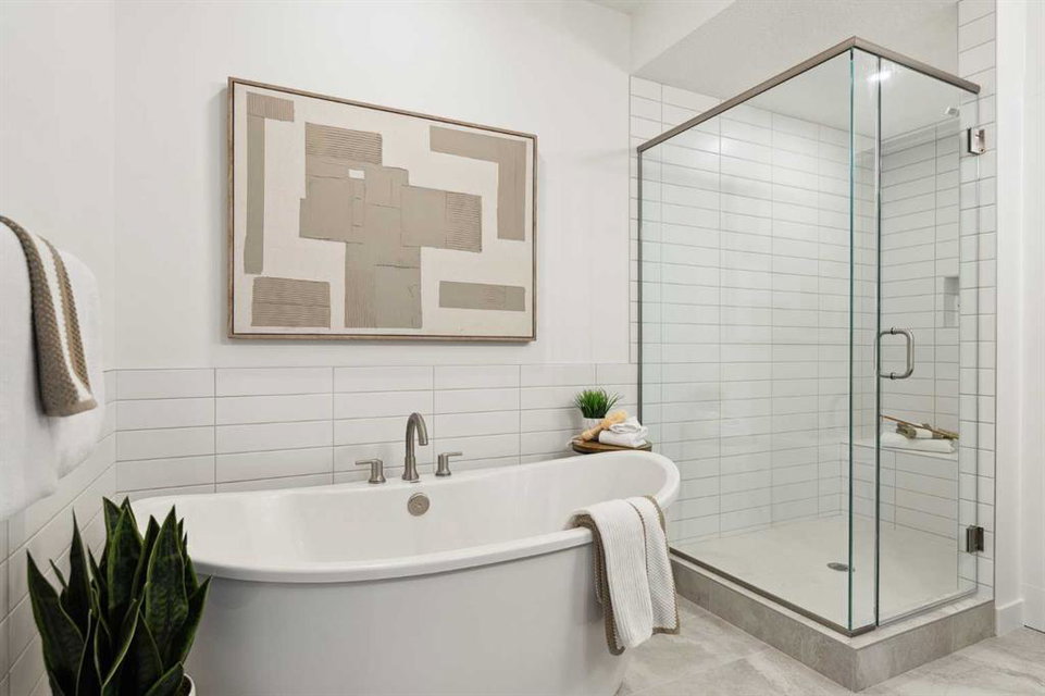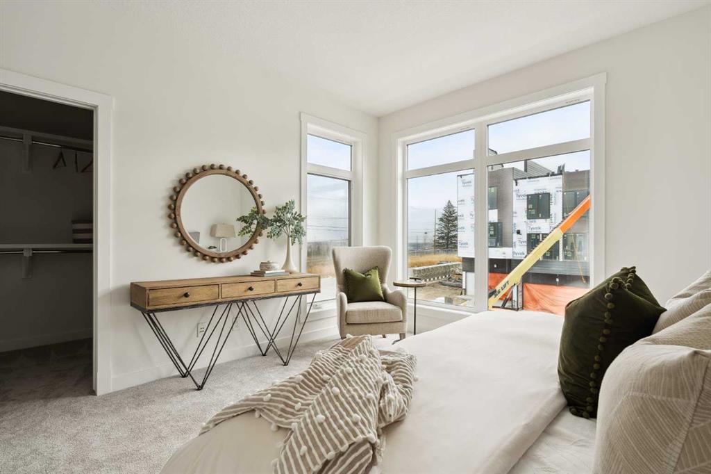 The stunning Executive Infills by Brookfield Residential offer unparalleled functionality and design and are situated on one of Calgary’s most coveted pieces of land – Crown Park. With nearly 2,500 square feet of living space + a developed legal basement suite with its own private entrance, this property is ideal for professionals, families and investors. The beautifully designed main level features wide-plank hardwood flooring, 10 ft ceilings, and a bright and spacious open concept design that isn’t reminiscent of your typical infill. The central kitchen is complete with warm natural wood-tone base cabinets, timeless white upper cabinets and stunning quartzite countertops including a waterfall island. The kitchen overlooks both the front living area and rear dining room, but intentional design separates the spaces, ideal for more formal evenings. The main level has direct access to the oversized double attached garage via a sprawling mud room and a wall of west-facing patio doors provide direct access from the dining room to the low-maintenance concrete patio / outdoor space. Hardwood flooring and iron spindle railings lead to the second level where there is a built-in desk in the hallway and 9′ ceilings throughout. The expansive primary suite is at the front of the home and complete with a walk-in closet and 5pc ensuite with pedestal soaker tub, tiled shower with 10mm glass surround and bench, dual sinks, and a private water closet. The secondary bedrooms are at the opposite end of the home, separated by the main bathroom and laundry room that is complete with additional storage and a laundry sink. The top level of the property is an entertainer’s dream with 9′ ceilings and a flex space that is complete with a wet bar and 2 pc bathroom – offering endless options but ideal for entertaining with its direct access to your sprawling rooftop patio with views to the south, west and north. The addition of a private legal suite makes this home appealing to those who have a nanny/caregiver, or would like additional space for guests. The legal one bedroom suite would also make the optimal rental if desired. Purchasing with a builder that has been in business for over half a century provides more than just peace of mind – it provides you with an incredible warranty and an intentionally designed space that will hold its value for years to come. This is the opportunity to get the beautiful new home you desire while allowing you to have something unique and purchase with confidence.