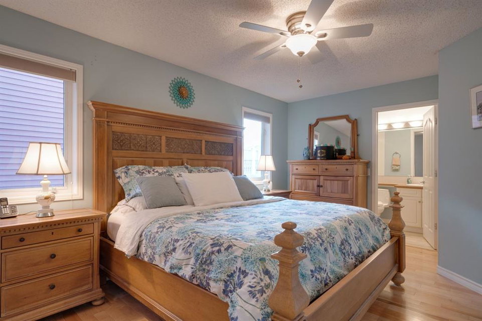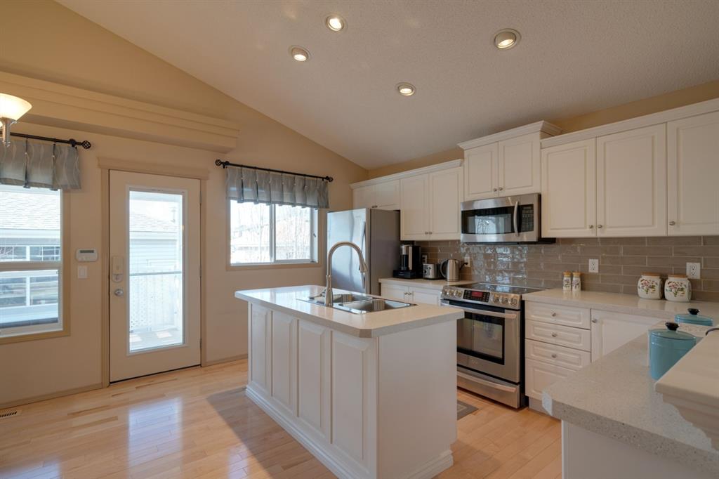 An incredibly well cared for home located in the heart of McKenzie Towne that is perfect for a growing family, those looking to downsize or an investor! Featuring 4 bedrooms, 3 bathrooms, 2 living areas and a home office, this home has ample space for any lifestyle. The oversized double detached garage with heigh ceilings is the perfect workspace and has endless possibilities for those looking for a shop! There are 3 additional sheds for added storage and still plenty of backyard space! Hardwood flooring flows throughout the bright and open main level with a central living area and a kitchen that is open to both living and dining. The timeless white kitchen has an updated backsplash and a suite of newer appliances throughout. The large primary bedroom is located on the main level with a private en suite and ample space for a king bedroom suite. A second bedroom, den (that could easily be converted to a third bedroom) and full bathroom complete the main level. The fully finished basement includes a bright rec room with large windows, two bedrooms, a full bathroom and a large laundry room in addition to storage. The large west-facing deck with pergola allows you to capture sunshine all summer long and the aggregate patio is the perfect low maintenance backyard space. If the west sun that flows through the home gets too hot, the central A/C will keep you cool all summer long. This home has many recent updates and truly ticks all the boxes.