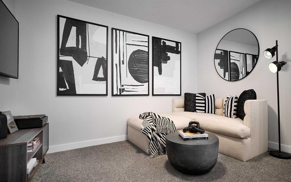 This beautiful brand-new home has been intelligently designed to offer 4 bedrooms (3 upstairs, 1 downstairs), 3.5 bathrooms, two distinct living areas, and a fully legal 1-bedroom basement suite. Located in desirable Silverado the ‘Wicklow’ model by Brookfield Residential is the perfect modern design, providing nearly 2,300 square feet of thoughtfully developed living space spread over three levels. The main floor boasts expansive west-facing front windows allowing natural light to flood the living space all day long. The open-concept layout is enhanced by 9-foot ceilings, offering a bright, comfortable living environment. The kitchen is a standout with full-height two-tone cabinetry, a large central island, a pantry, and a complete suite of stainless-steel appliances. The kitchen seamlessly flows into the dining area, with sliding patio doors leading out to the backyard—perfect for indoor-outdoor living. Upstairs, a central bonus room acts as a divider, offering privacy between the spacious primary suite and the two additional bedrooms. The primary suite features a walk-in closet, and a luxurious 5-piece ensuite with dual sinks. Two more bedrooms, a full bathroom, and an upper-level laundry room complete this level. The fully legal basement suite is ready for occupancy after possession. It includes its own mechanical system, a full kitchen, pantry, living/dining area, a generously sized bedroom, a full bathroom, and in-suite laundry—ideal for multi-generational living or as a potential rental for added income. The backyard leads to the double parking pad that can accommodate a double detached garage. This home comes with a builder’s warranty, as well as the Alberta New Home Warranty, giving you peace of mind. Situated a short walk from a playground and quick access to the scenic walking paths of the community this home offers a tranquil location. **Please note photos are from a show home model and are not an exact representation of the property for sale.