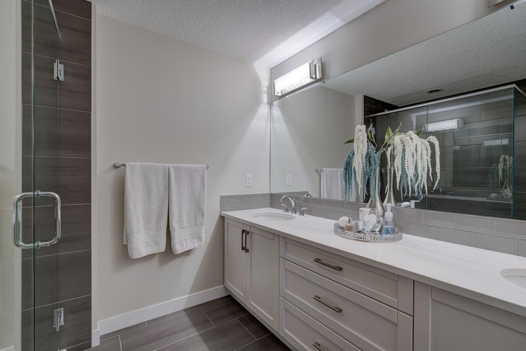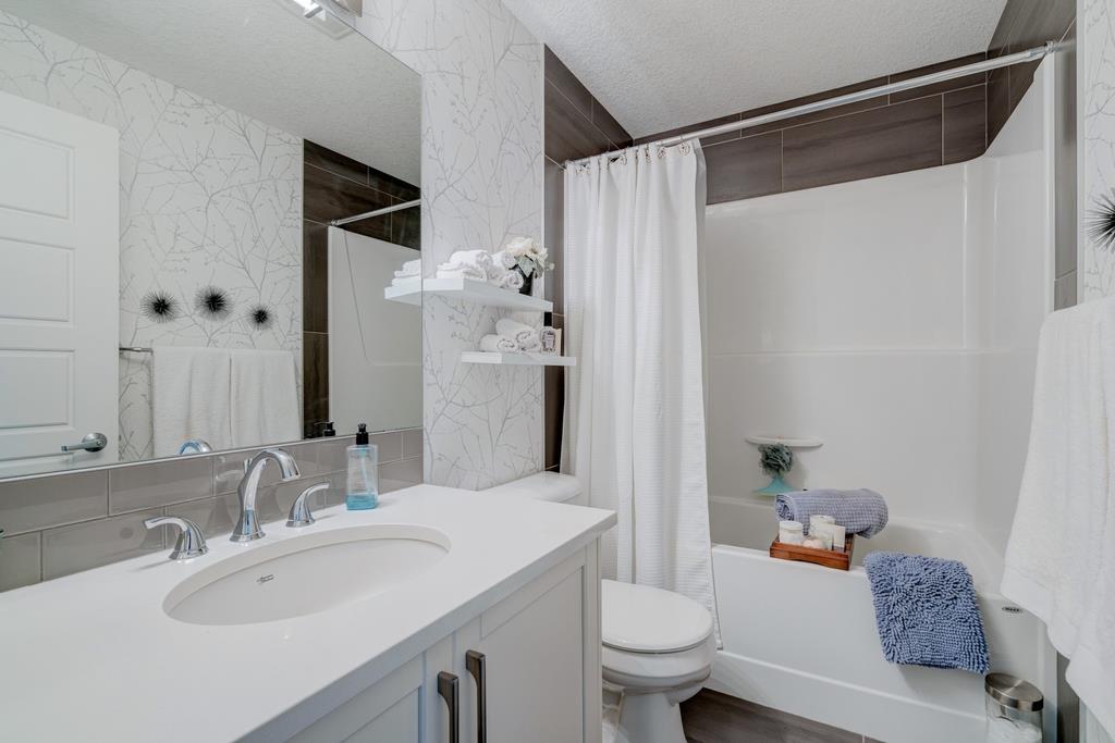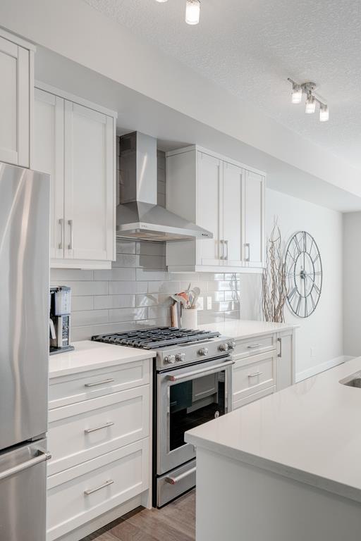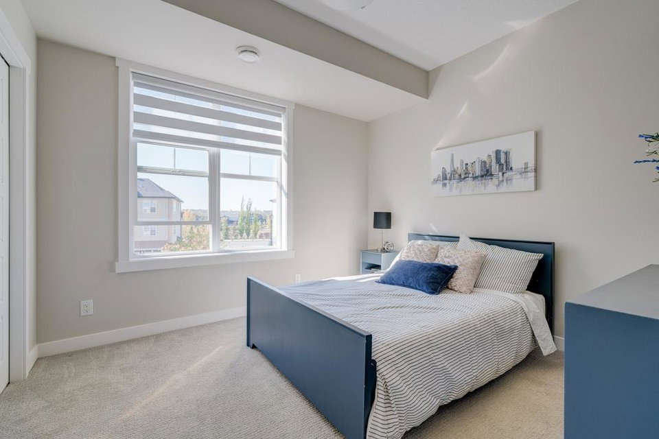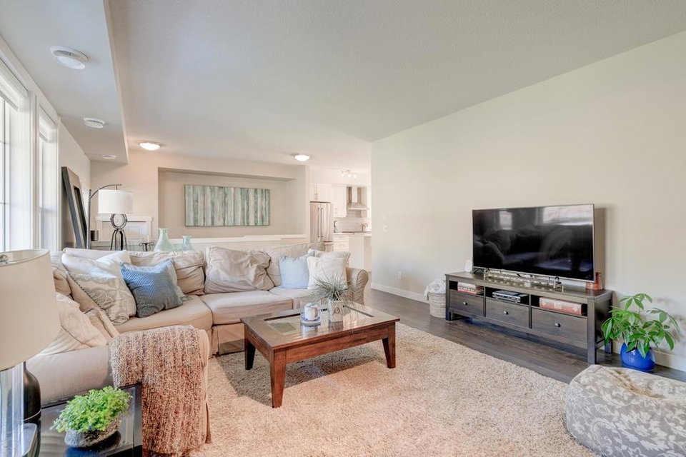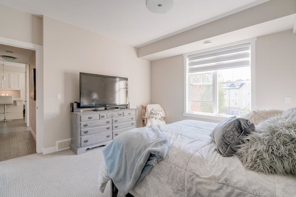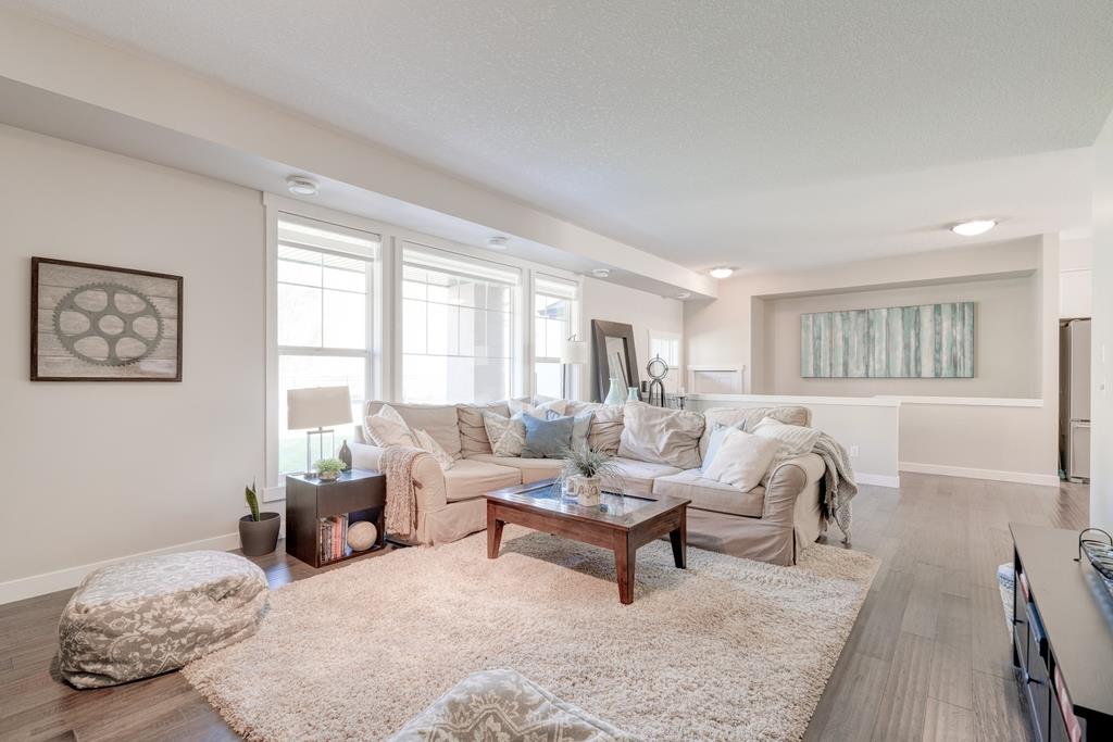 An incredible opportunity to own a main level townhome in desirable Mosaic Riverstone. Situated just steps away from the Bow River and surrounded by the beauty of Fish Creek Park, this property strikes the perfect balance of seclusion and convenience. This like-new townhouse features single-level living offering 2 bedrooms, 2 bathrooms, ample storage and an open concept design. Natural light flows through a wall of windows overlooking the picturesque escarpment, flooding the home with light. The timeless white kitchen is complete with subway tile backsplash, quartz countertops and a suite of premium stainless-steel appliances including a gas range and chimney hood fan. The kitchen overlooks the large dining area with ample seating for family dinners and living room with gas fireplace making it the perfect space for entertaining. The primary bedroom is complete with a walk-in closet, 4 piece bathroom with a full height tile shower and dual sinks. An additional bedroom allows ample space for a guest room and home office while the full laundry room provides added convenience for daily living. The lower level of the property provides endless possibilities for additional storage, a home gym or studio space. A double garage provides additional storage for bikes and provides secured parking for your vehicle all year. The homes include all the upgrades that everyone wants like upgraded lighting, flooring, custom window treatments (Hunter Douglas) and more. Enjoy the sunshine and the tranquil views of the escarpment on your private patio all summer long. With quick access to amenities and only minutes from Fish Creek Park, this home is the perfect fit for those looking to live in beautiful Riverstone surrounded by nature.