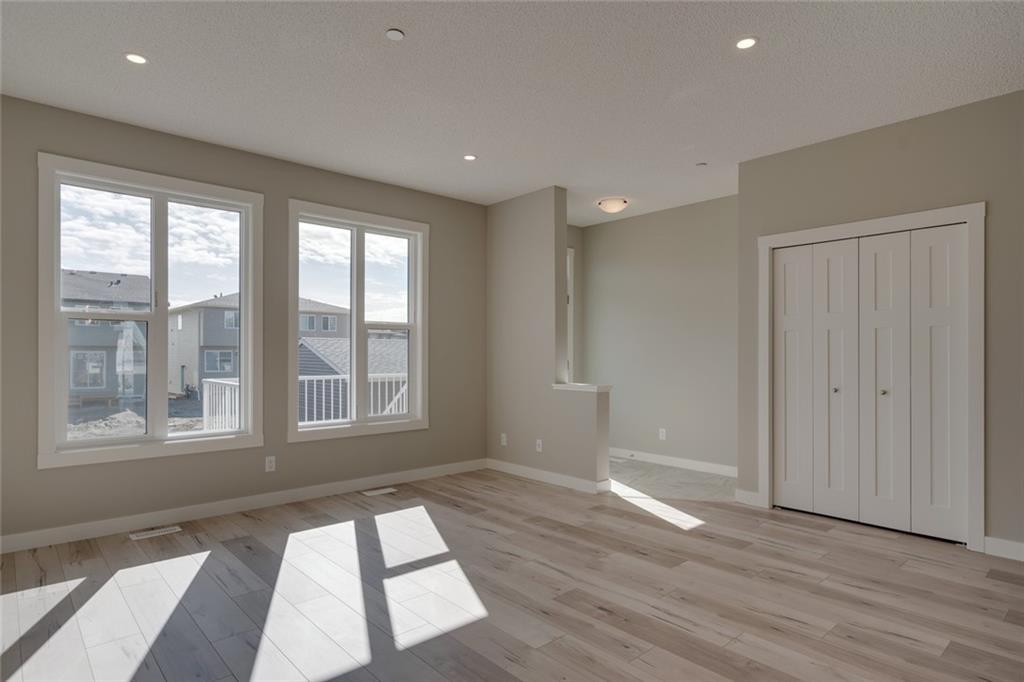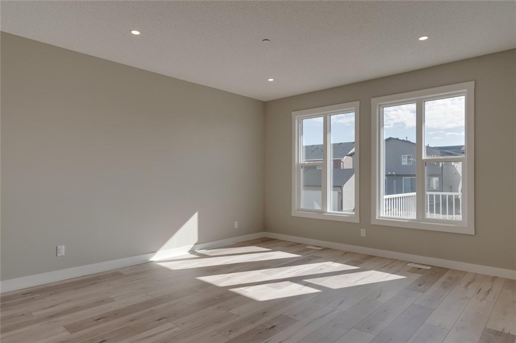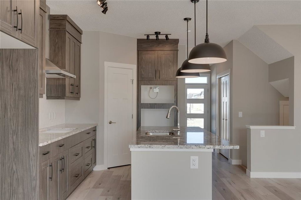 The Carlisle II is a stunning 3 bedroom, 2.5 bathroom, 1,815 square ft. home available for quick possession in the new community of Livingston! Situated close to the park and Home Owner’s Association, this open concept home boasts 9 ft. ceilings on the main level, large sliding patio doors opening onto a stunning raised rear deck, extended height cabinets, built-in appliances and large island – perfect for your inner chef and for entertaining! The main floor features a large living room with plenty of natural light and a flex area perfect for your home office. Enjoy the convenience of upper level laundry (washer and dryer included) and a bright undeveloped basement with 9 ft foundation walls. The master bedroom is complete with a full en suite, walk-in closet and private balcony! Luxurious upgraded laminate and tile flooring as well as gourmet stainless steel kitchen appliance package. Alberta New Home Warranty included with the purchase of this brand new home.