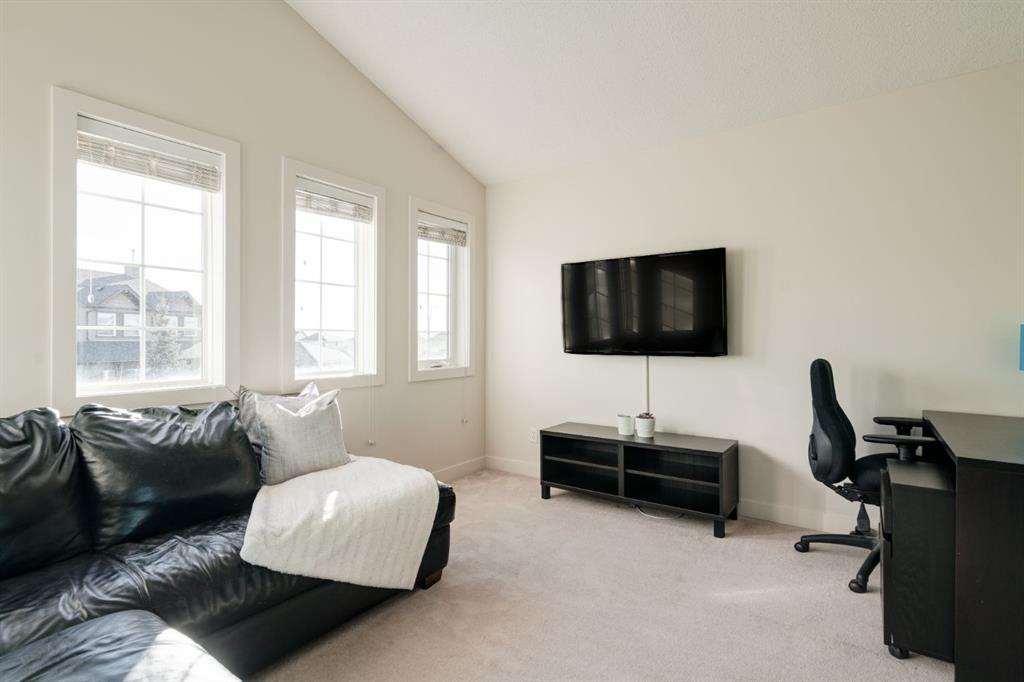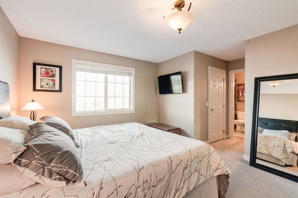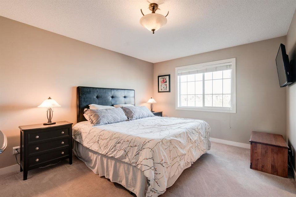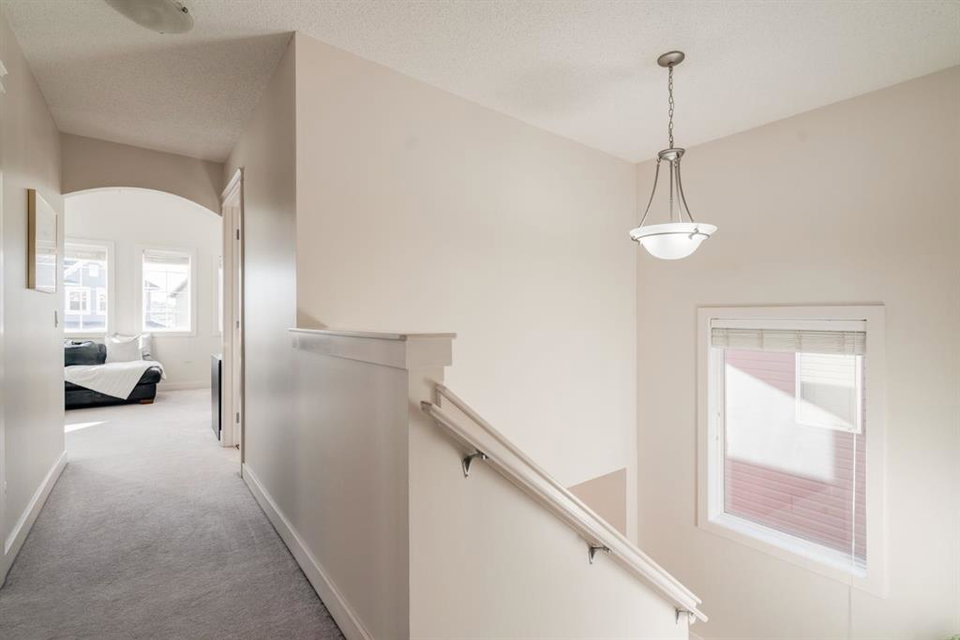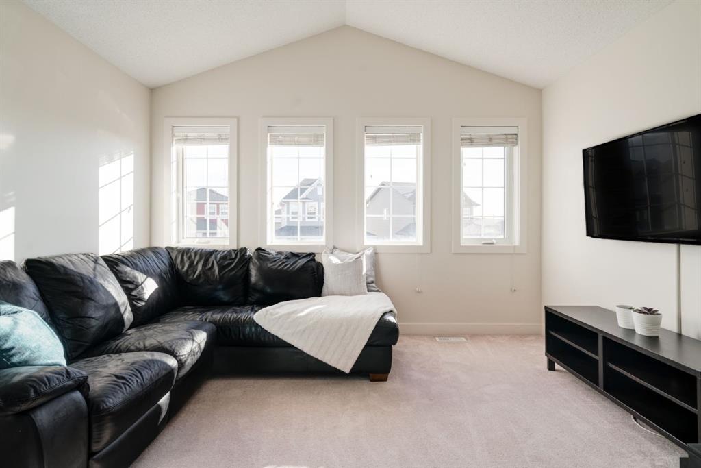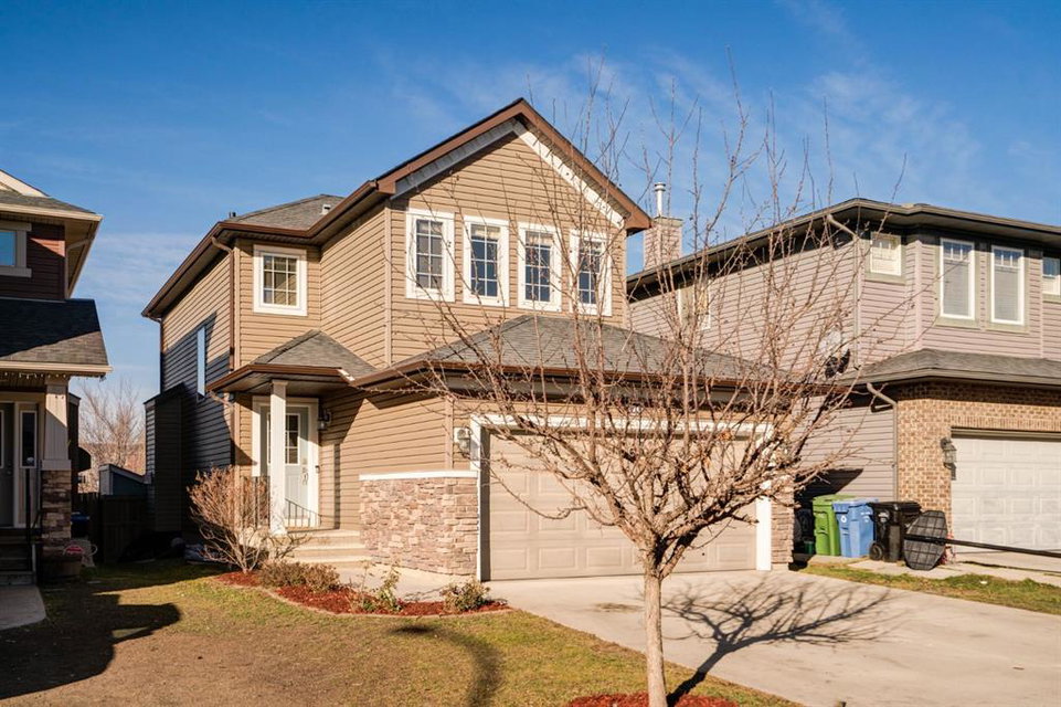 Welcome to this beautiful 2-storey home located in the heart of Evanston. This lovingly cared for property offers 3 bedrooms, 2.5 bathrooms, and over 2,100 square feet of developed living space on 3 levels. The main level features an open concept design with large windows at the rear of the property which allows natural light to flow into the home all day. The kitchen features timeless warm maple cabinets, newer electric stove and dishwasher, a corner pantry, and a center island with a double sink and a raised breakfast bar for additional seating. The kitchen overlooks both the dining and living area – making this the perfect space to entertain friends and family and the living area is situated around a gas fireplace – perfect for the cooler weather. The main level is complete with a 2-piece bathroom and a rear laundry room/mudroom. The upper level offers 3 bedrooms, 2 full bathrooms, and a spacious bonus room. The bonus room sits above the garage making the ideal space for a media room or home office space. The large primary bedroom features a walk-in closet and a 4-piece ensuite bathroom. The fully developed lower level of the home offers an additional living space with large rec room with a corner gas fireplace, workout area and a bar. The spacious west-facing backyard is fully fenced with plenty of green space for the family to enjoy. The upper deck has ample room for a BBQ and has expansive views to the west. The lower patio offers an additional seating area for long summer days. Completing the yard is a storage shed and dog run. A double attached garage offers secure storage for your vehicles and keeps them warm and clean during the winter. Much of the home has been recently painted and newer washer and dryer are included in the sale. Evanston features countless amenities including schools, shopping, parks, playground, walking paths, and offers quick access to Stoney Trail for daily commuting. Don’t miss out on this incredible opportunity in Evanston! **Virtual Tour available upon request**