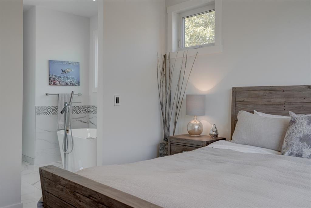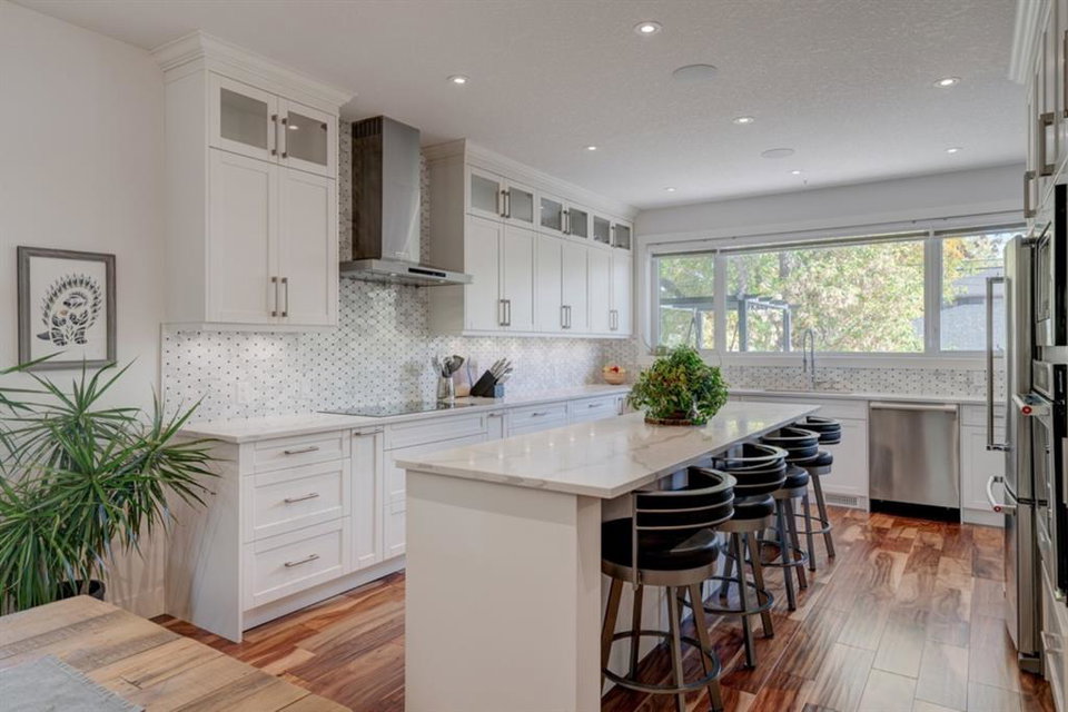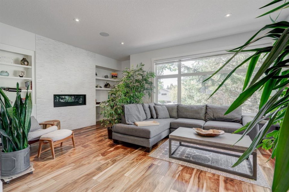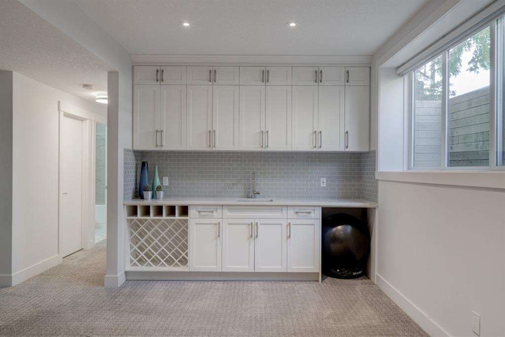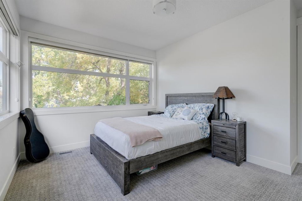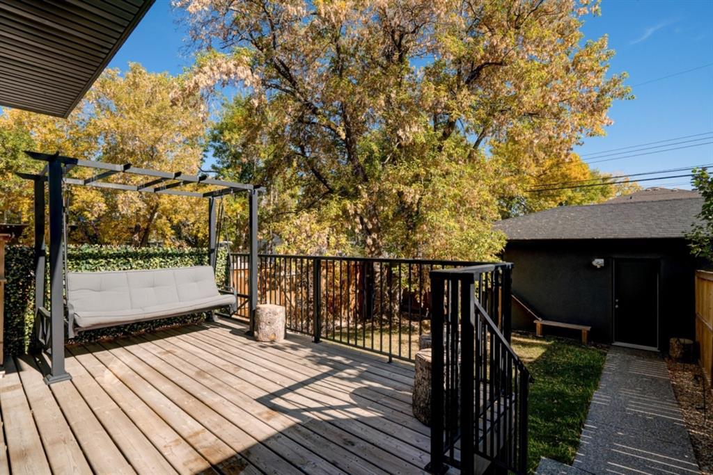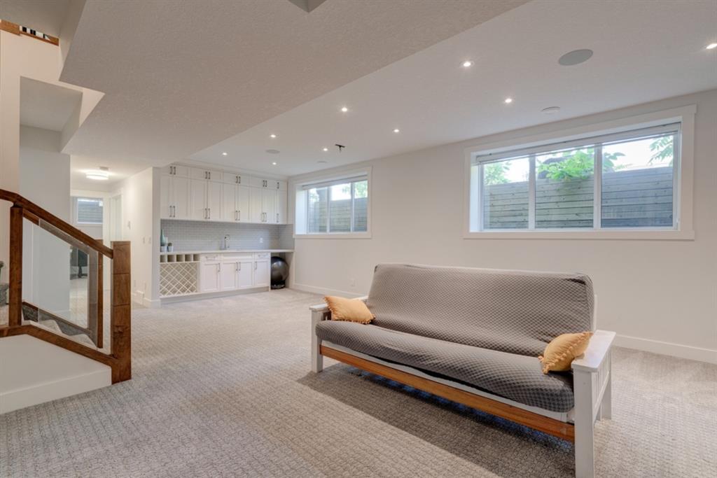 An incredible opportunity to own a like-new 4 bedroom, 3.5 bathroom home on a tree-lined street in the heart of Capitol Hill. Situated on a corner lot with extra large windows and mature trees, this home has natural light pouring through all day while maintaining ample privacy within the home. The superior built-quality can be felt throughout this entire property from the oversized windows to the 8′ doors and 9′ ceilings, to the 5 zone speaker system, central A/C and more. The main level has an expansive kitchen with timeless white cabinetry to the ceiling, and includes a suite of built-in appliances including an induction cooktop. A complete wall of windows on the back of the home overlooks the backyard and allows natural light to flow through the main level all day. The kitchen is open to both the dining and main living area, providing the perfect space for entertaining. The main living space is complete with a gas fireplace and built-ins that allow for a main level office space or additional storage. Maple railings with 10mm glass panels flow from the top level to the basement, keeping the open feel of the home consistent throughout. The primary bedroom includes a large walk-in closet and expansive en suite complete with a steam shower with bench, soaker tub and dual sinks. Two more large bedrooms, a 5 pc main bathroom and full laundry room with sink complete the upper level. The basement has a large entertainment space with a built-in theatre area, wet bar with full height cabinetry, and ample space for a games area in addition to TV space. A large bedroom, full bathroom and more storage space complete the lower level. The large windows are consistent throughout the entire property – keeping every space bright all year long. The backyard has a deck, mature trees and privacy all year and the double detached garage is fully insulated and heated with an additional parking stall beside for an RV. The entire property has been professionally landscaped adding to the curb appeal of this untypical infill that has quick access to the University, Hospitals and countless nearby amenities.
