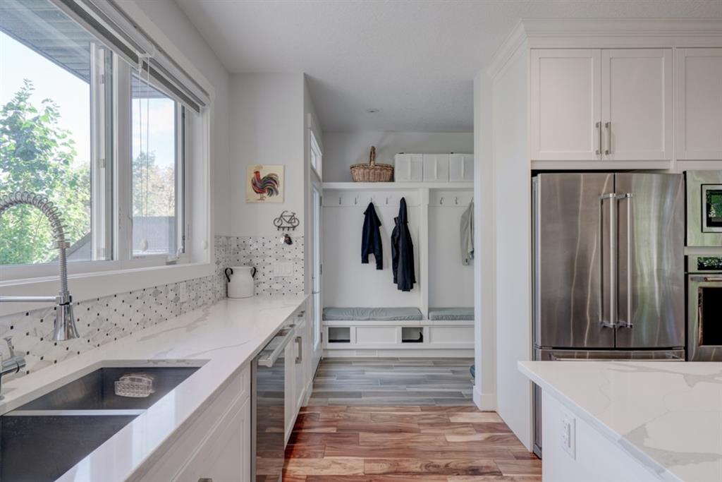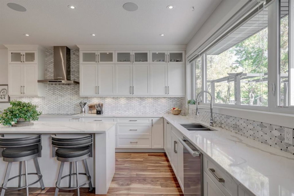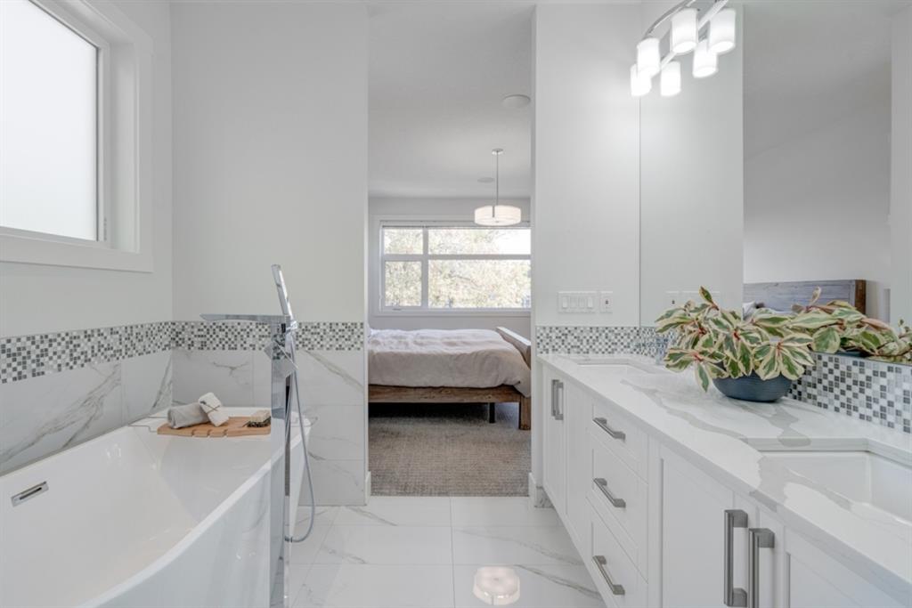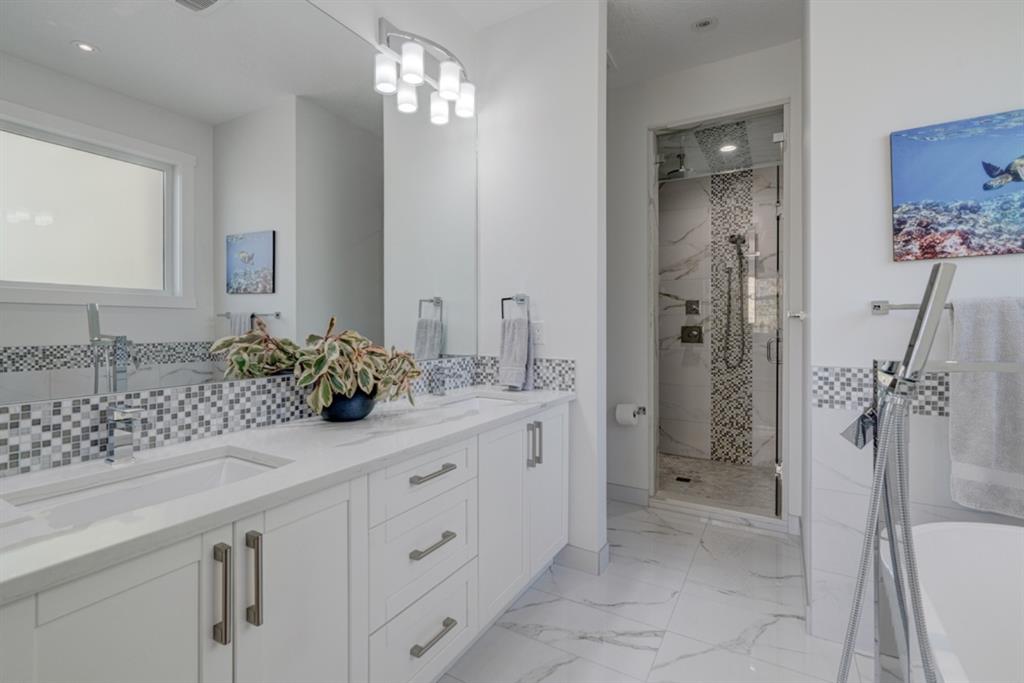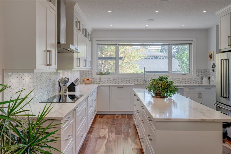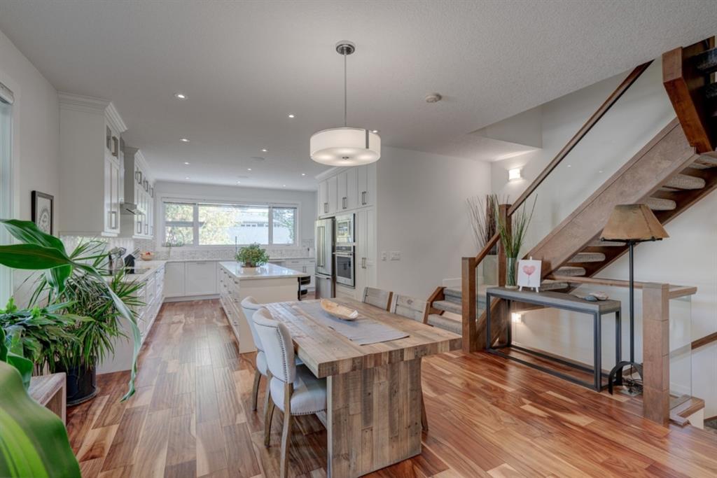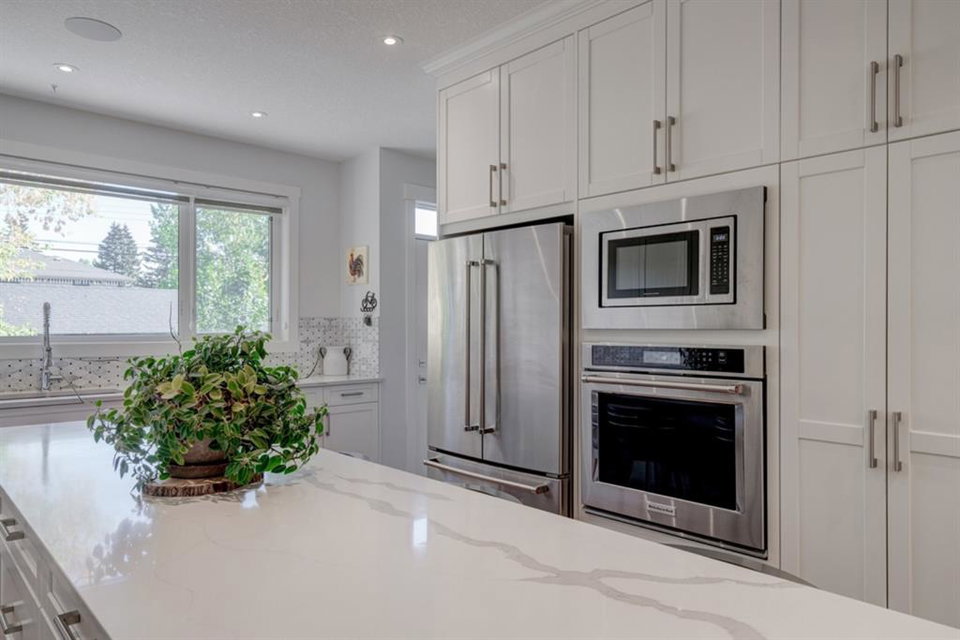 An incredible opportunity to own a like-new 4 bedroom, 3.5 bathroom home on a tree-lined street in the heart of Capitol Hill. Situated on a corner lot with extra large windows and mature trees, this home has natural light pouring through all day while maintaining ample privacy within the home. The superior built-quality can be felt throughout this entire property from the oversized windows to the 8′ doors and 9′ ceilings, to the 5 zone speaker system, central A/C and more. The main level has an expansive kitchen with timeless white cabinetry to the ceiling, and includes a suite of built-in appliances including an induction cooktop. A complete wall of windows on the back of the home overlooks the backyard and allows natural light to flow through the main level all day. The kitchen is open to both the dining and main living area, providing the perfect space for entertaining. The main living space is complete with a gas fireplace and built-ins that allow for a main level office space or additional storage. Maple railings with 10mm glass panels flow from the top level to the basement, keeping the open feel of the home consistent throughout. The primary bedroom includes a large walk-in closet and expansive en suite complete with a steam shower with bench, soaker tub and dual sinks. Two more large bedrooms, a 5 pc main bathroom and full laundry room with sink complete the upper level. The basement has a large entertainment space with a built-in theatre area, wet bar with full height cabinetry, and ample space for a games area in addition to TV space. A large bedroom, full bathroom and more storage space complete the lower level. The large windows are consistent throughout the entire property – keeping every space bright all year long. The backyard has a deck, mature trees and privacy all year and the double detached garage is fully insulated and heated with an additional parking stall beside for an RV. The entire property has been professionally landscaped adding to the curb appeal of this untypical infill that has quick access to the University, Hospitals and countless nearby amenities.