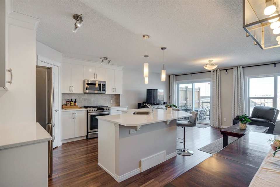 Incredible opportunity on a massive pie lot overlooking green space and dog park! This beautiful like-new semi-detached home features 3 bedrooms, 2.5 bathrooms and has an open concept main living area that is designed for entertaining. The large timeless white kitchen has an island with additional seating and overlooks the main living and dining areas. Up one half set of stairs you’ll find the primary retreat complete with vaulted ceilings, large south facing windows, a full private en suite and walk-in closet. Up another half set of stairs is where you’ll find a large bonus room, two more bedrooms and the main bathroom. This 3 bedroom, 2.5 bathroom home also has a full basement with two large windows providing plenty of natural light. Perfectly situated in Auburn Bay where you enjoy the benefits of a lake community all year, this property is also within walking distance to Auburn Station and Mahogany Village’s countless amenities. If you’re looking for a newer home with an incredibly large private and quiet lot, this is it! This property is perfect for families, first time buyers, downsizers and investors.