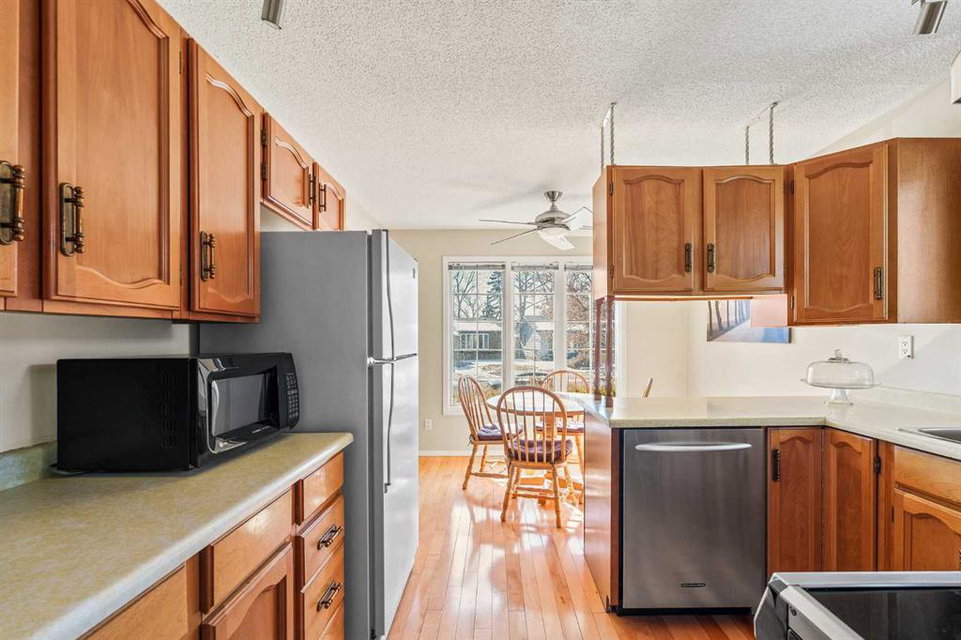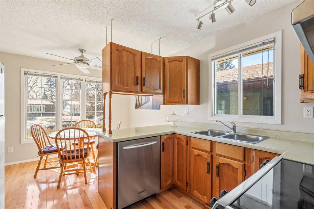 Incredible opportunity to own a well-maintained detached home for under $500K in Deer Run! Located on a quiet street just steps from a green space, this bungalow-style property offers an unbeatable combination of potential and location. Situated on a 4,822 square foot pie-shaped corner lot, this home is perfect for those looking to renovate and personalize or for an investor seeking a property in outstanding condition. With nearly 1,900 square feet of developed living space, this home features 4 bedrooms (3 upstairs, 1 downstairs), 1.5 bathrooms, and 2 living spaces. Beautiful hardwood flooring flows throughout the main living areas, and large south-facing windows bathe the space in natural light. The open layout is ideal for family living, with a large front living room that seamlessly transitions into the dining area and kitchen—creating the perfect space for entertaining. The kitchen features well-maintained warm maple wood cabinetry and a suite of newer stainless-steel appliances, including a stove and dishwasher. The primary suite includes a private 2-piece ensuite and a spacious closet. Two additional bedrooms and a 4-piece bathroom complete the main level. The lower level has its own private side entrance, making it an ideal space for a future basement suite (subject to city permits and approval). The fully developed basement offers additional living space, with a large rec room and family room that could easily be converted into a kitchen, living room and dining area (subject to city permits and approval). The basement features new carpet throughout the living areas and has a rough-in for a future bathroom. The basement has a 4th bedroom (window does not meet egress) and a large den that could be converted into a 5th bedroom. The basement is completed with a corner gas fireplace, offering endless possibilities, whether you want a playroom, media room, or a cozy family space. The pie-shaped corner lot creates an oversized backyard that is perfect for outdoor living and relaxation, with direct access to a large green space behind the home, ideal for entertaining friends and family. Recent updates include newer hardwood flooring, a newer roof, soffits, fascia, gutters, and a new hot water tank. Whether you’re looking to update the home to your taste or invest, these upgrades—along with the home’s well-maintained condition—offer an incredible opportunity in a prime location within the community. This property is located within walking distance to schools, parks, shopping, and Fish Creek Park. With easy access to Deerfoot Trail and Macleod Trail, commuting throughout Calgary is a breeze. Don’t miss out on this chance to own a move-in ready bungalow with immense potential! Virtual tour available upon request.