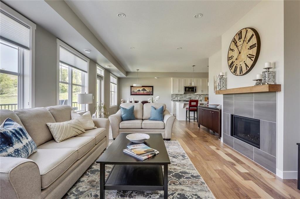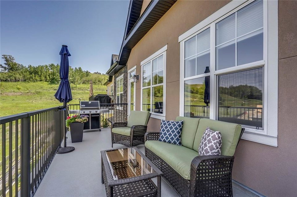Absolutely stunning Estate Townhome in the heart of Riverstone with one of the best locations on site! Mosaic Riverstone is home to just 64 bungalow-style homes with double attached garages and maintenance-free living. Featuring 3 bedrooms, 2 bathrooms, A/C, a finished basement and stunning views of the river valley and mountains, this home provides the perfect tranquil setting. An open concept living area with a wall of windows provide natural light all day long. Warm hardwood flooring and a timeless kitchen provide a decor that works well with any design palette. The large master bedroom can accommodate a king suite and the ensuite includes a walk-in shower providing added comfort. Two additional bedrooms and a full bathroom complete this bungalow-style home. The 29′ X 8′ balcony provides breathtaking unobstructed views with space for a living and dining outside. Rare to find, the finished basement provides the perfect den or home gym. Purchase with confidence with Alberta New Home Warranty remaining!