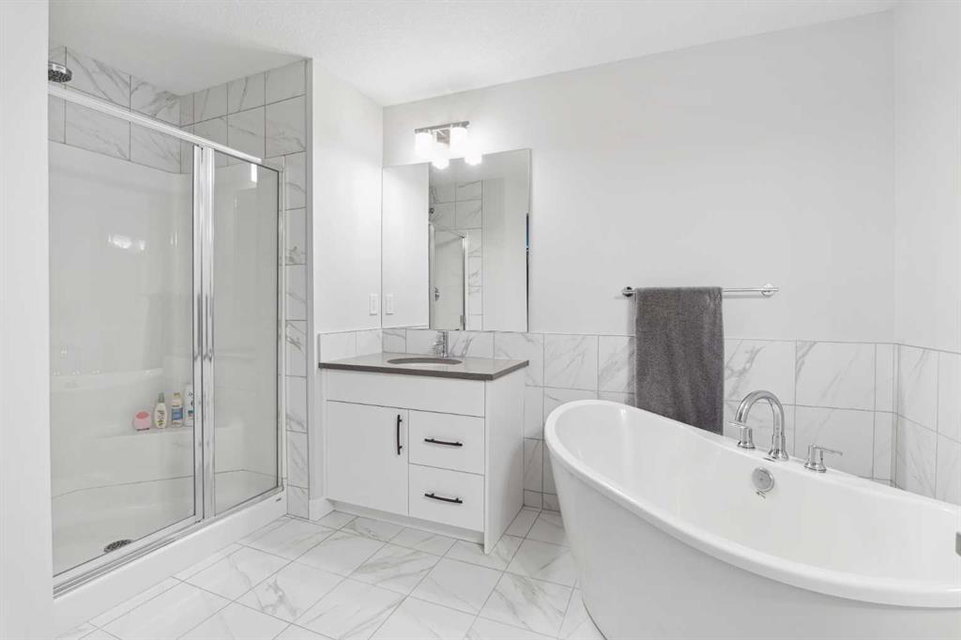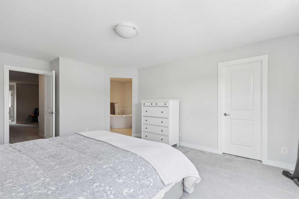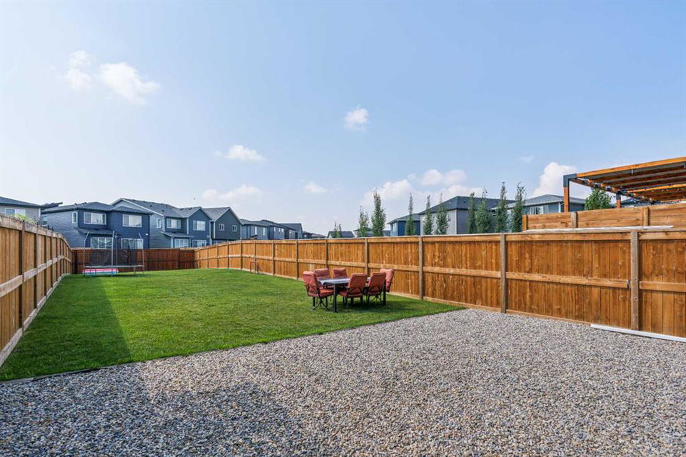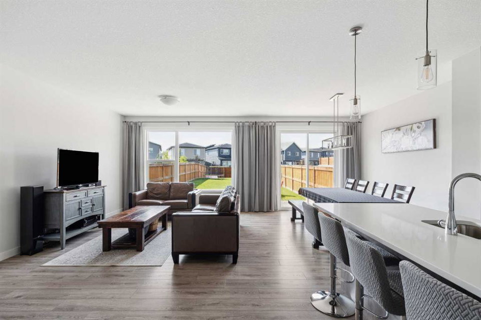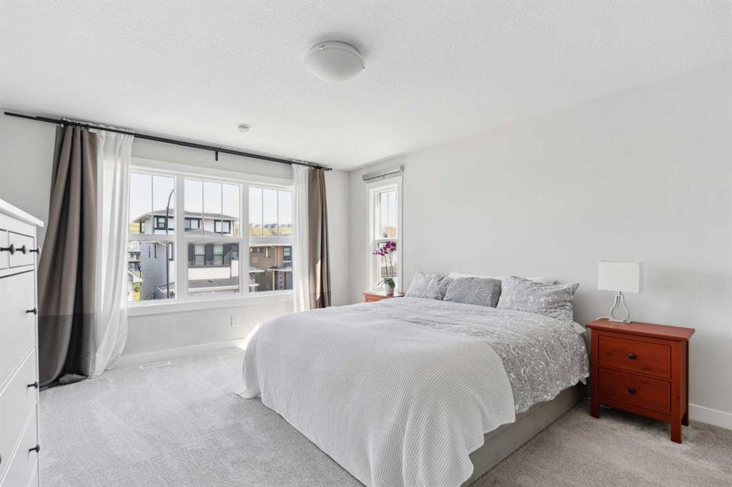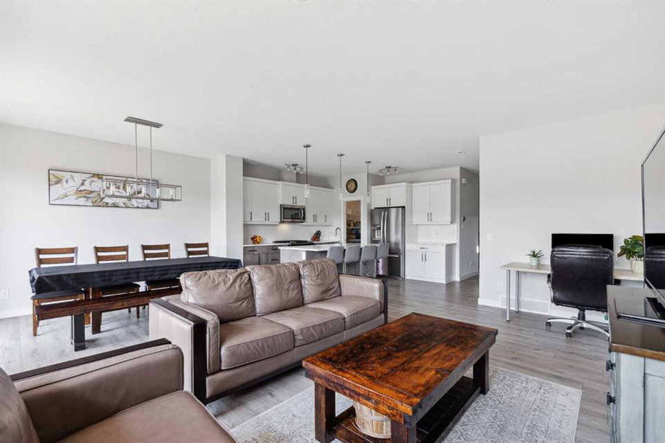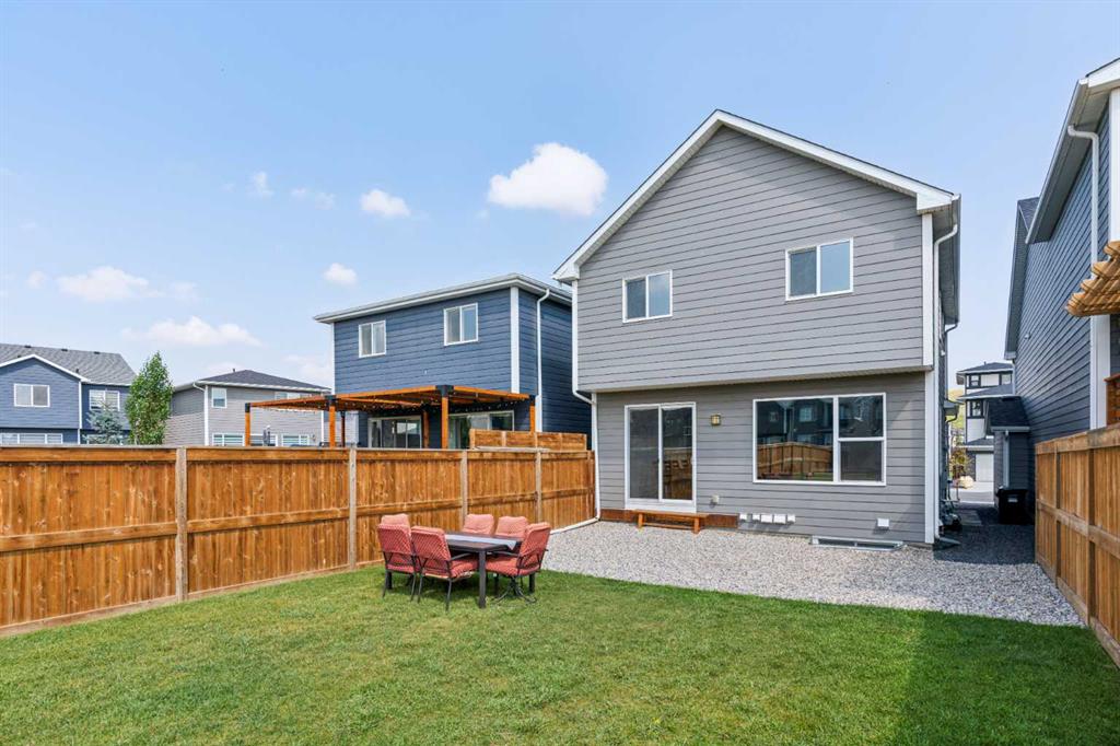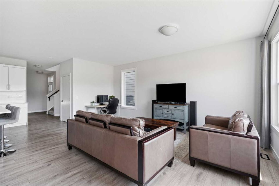 A rare opportunity to own a like-new move-up home in the heart of Riverstone with a fully legal basement suite situated on an incredibly large lot! The main level features an open concept living space with a large kitchen that overlooks both the living and dining areas – making the perfect space for entertaining guests. The kitchen is complete with two tone cabinetry, quartz countertops, a gas range and a large walk-through pantry that has direct access from the mud room off of the double attached garage. The expansive main living and dining space is completely open, providing added flexibility for furnishing and is complete with a wall of windows and patio doors that overlook the 185′ deep backyard! A 2 pc bathroom and resilient laminate flooring complete the main level – making it the perfect home for those with children and pets. The upper level has a central family room that has ample space for an office space and TV area. The primary bedroom is located at the front of the home – separated from the secondary bedrooms by the central bonus space. The primary suite is an impressive 13’1″ x 18’10” in size and that is in addition to its walk-in closet and 5 pc ensuite complete with a walk-in shower, soaker tub and two individual vanities. Two more large bedrooms, a full bathroom and conveniently located laundry room complete the second level. A private side entrance leads to the fully legal basement suite which is perfect for those looking to reduce their monthly expenses! The beautiful one bedroom suite is complete with a full kitchen (full size appliances), large dining / flex space, living area, bedroom, full bathroom and oversized laundry room with additional storage space. Beyond all the home has to offer inside is the incredible backyard that provides endless opportunities! The fully fenced, landscaped and private backyard has ample space for future sitting, dining and lounging areas with plenty of extra room for a play space and much more. This truly unique lot and property is a very rare find in the new community of Riverstone that is just wrapping up its final stages of development. Riverstone has endless pathways along the Bow River and Fish Creek Park while being just minutes from countless amenities. This private and tranquil community truly provides the suburban lifestyle combined with nature while not missing out on the convenience of amenities nearby.