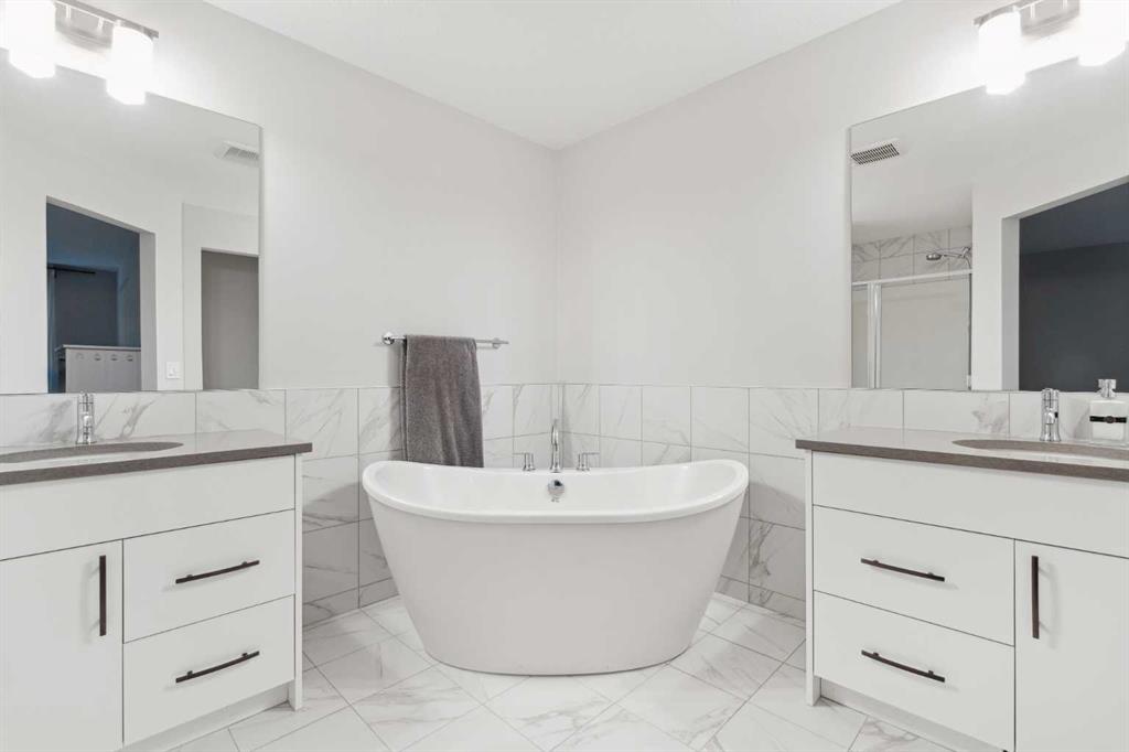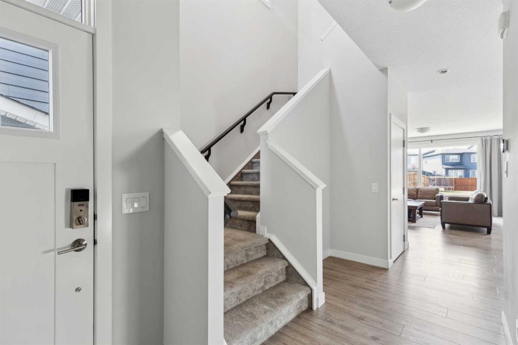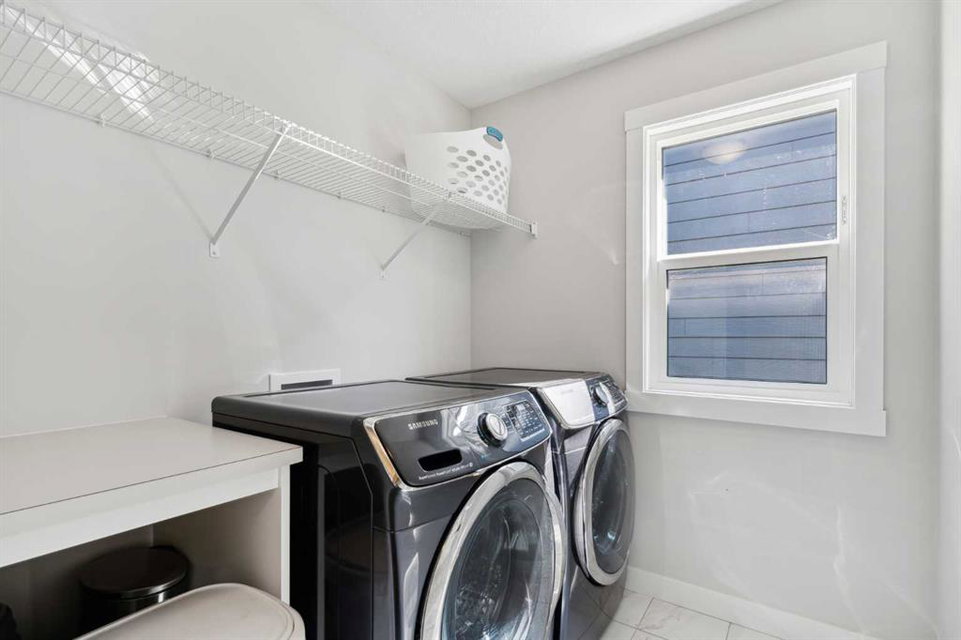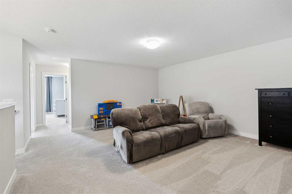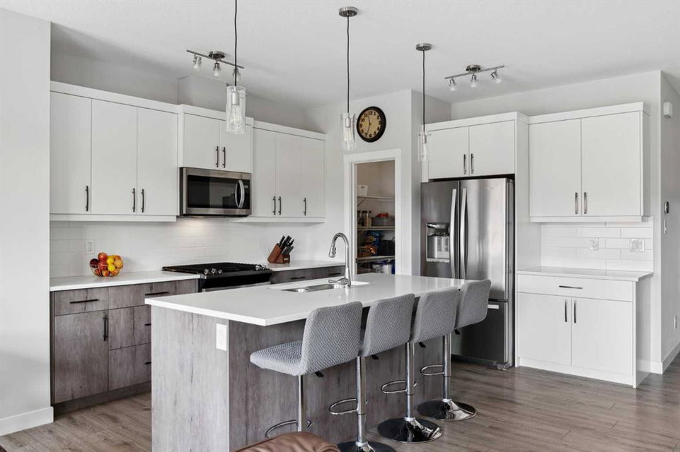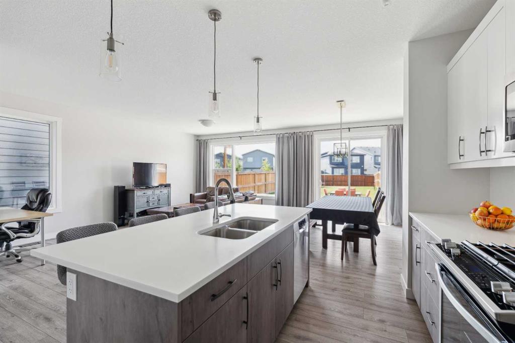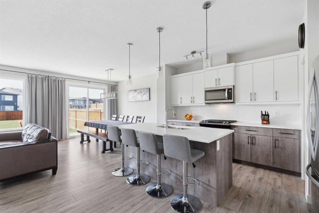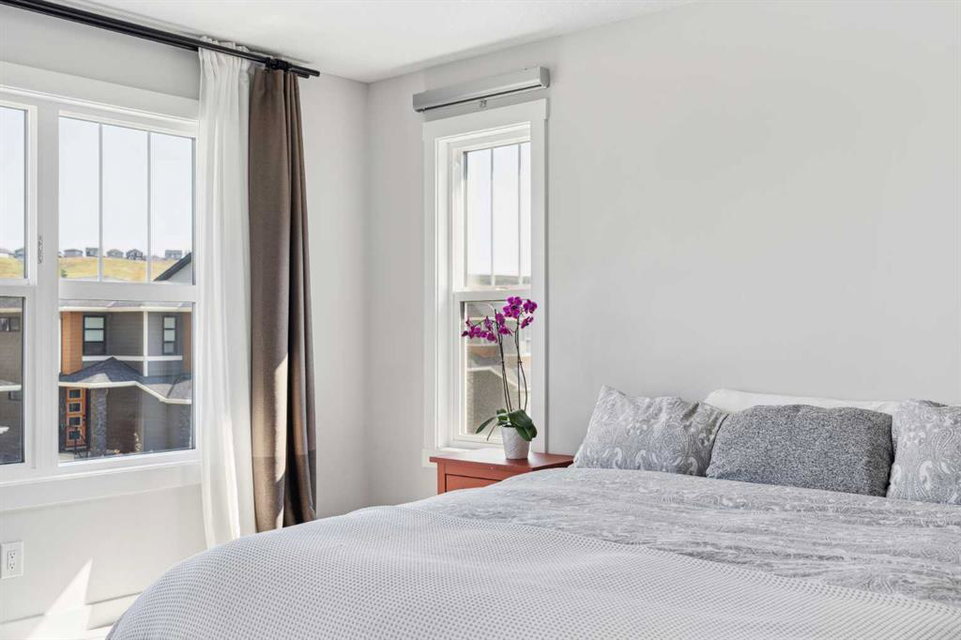 A rare opportunity to own a like-new move-up home in the heart of Riverstone with a fully legal basement suite situated on an incredibly large lot! The main level features an open concept living space with a large kitchen that overlooks both the living and dining areas – making the perfect space for entertaining guests. The kitchen is complete with two tone cabinetry, quartz countertops, a gas range and a large walk-through pantry that has direct access from the mud room off of the double attached garage. The expansive main living and dining space is completely open, providing added flexibility for furnishing and is complete with a wall of windows and patio doors that overlook the 185′ deep backyard! A 2 pc bathroom and resilient laminate flooring complete the main level – making it the perfect home for those with children and pets. The upper level has a central family room that has ample space for an office space and TV area. The primary bedroom is located at the front of the home – separated from the secondary bedrooms by the central bonus space. The primary suite is an impressive 13’1″ x 18’10” in size and that is in addition to its walk-in closet and 5 pc ensuite complete with a walk-in shower, soaker tub and two individual vanities. Two more large bedrooms, a full bathroom and conveniently located laundry room complete the second level. A private side entrance leads to the fully legal basement suite which is perfect for those looking to reduce their monthly expenses! The beautiful one bedroom suite is complete with a full kitchen (full size appliances), large dining / flex space, living area, bedroom, full bathroom and oversized laundry room with additional storage space. Beyond all the home has to offer inside is the incredible backyard that provides endless opportunities! The fully fenced, landscaped and private backyard has ample space for future sitting, dining and lounging areas with plenty of extra room for a play space and much more. This truly unique lot and property is a very rare find in the new community of Riverstone that is just wrapping up its final stages of development. Riverstone has endless pathways along the Bow River and Fish Creek Park while being just minutes from countless amenities. This private and tranquil community truly provides the suburban lifestyle combined with nature while not missing out on the convenience of amenities nearby.