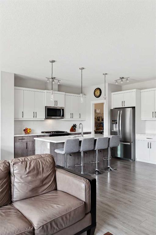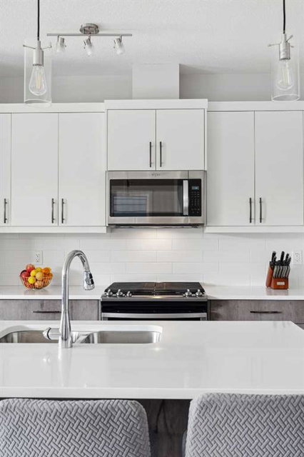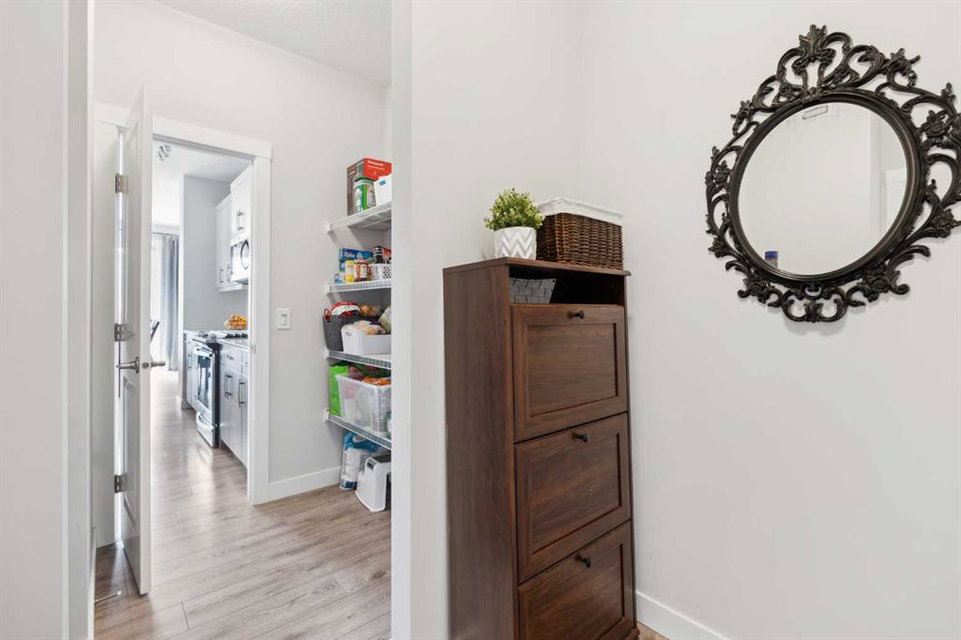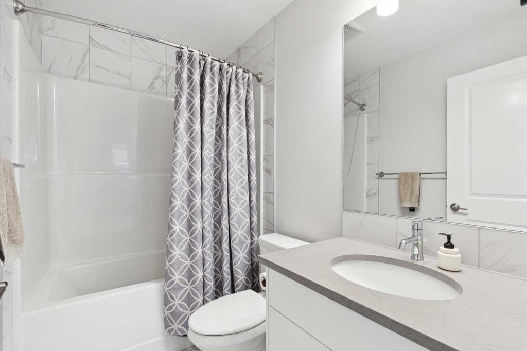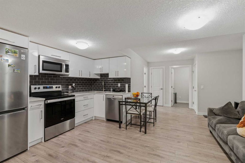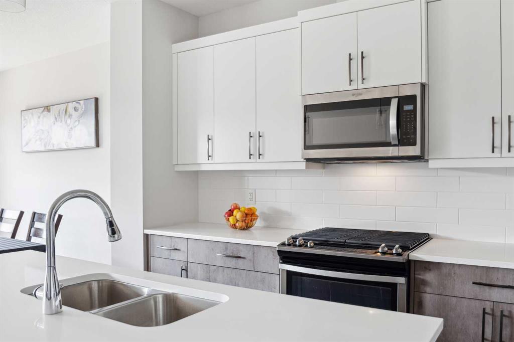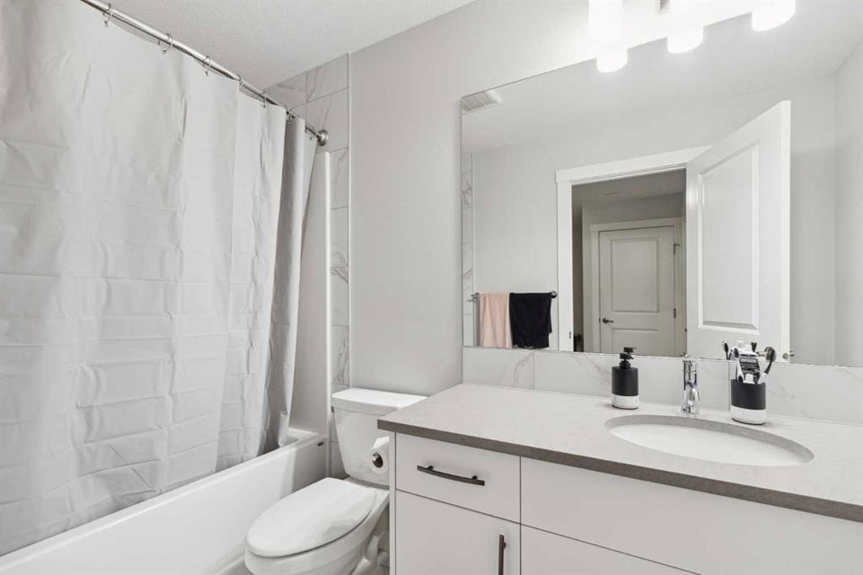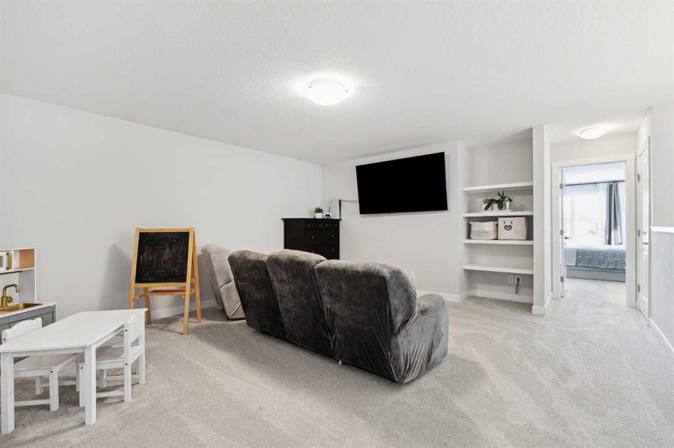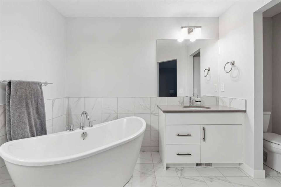 A rare opportunity to own a like-new move-up home in the heart of Riverstone with a fully legal basement suite situated on an incredibly large lot! The main level features an open concept living space with a large kitchen that overlooks both the living and dining areas – making the perfect space for entertaining guests. The kitchen is complete with two tone cabinetry, quartz countertops, a gas range and a large walk-through pantry that has direct access from the mud room off of the double attached garage. The expansive main living and dining space is completely open, providing added flexibility for furnishing and is complete with a wall of windows and patio doors that overlook the 185′ deep backyard! A 2 pc bathroom and resilient laminate flooring complete the main level – making it the perfect home for those with children and pets. The upper level has a central family room that has ample space for an office space and TV area. The primary bedroom is located at the front of the home – separated from the secondary bedrooms by the central bonus space. The primary suite is an impressive 13’1″ x 18’10” in size and that is in addition to its walk-in closet and 5 pc ensuite complete with a walk-in shower, soaker tub and two individual vanities. Two more large bedrooms, a full bathroom and conveniently located laundry room complete the second level. A private side entrance leads to the fully legal basement suite which is perfect for those looking to reduce their monthly expenses! The beautiful one bedroom suite is complete with a full kitchen (full size appliances), large dining / flex space, living area, bedroom, full bathroom and oversized laundry room with additional storage space. Beyond all the home has to offer inside is the incredible backyard that provides endless opportunities! The fully fenced, landscaped and private backyard has ample space for future sitting, dining and lounging areas with plenty of extra room for a play space and much more. This truly unique lot and property is a very rare find in the new community of Riverstone that is just wrapping up its final stages of development. Riverstone has endless pathways along the Bow River and Fish Creek Park while being just minutes from countless amenities. This private and tranquil community truly provides the suburban lifestyle combined with nature while not missing out on the convenience of amenities nearby.