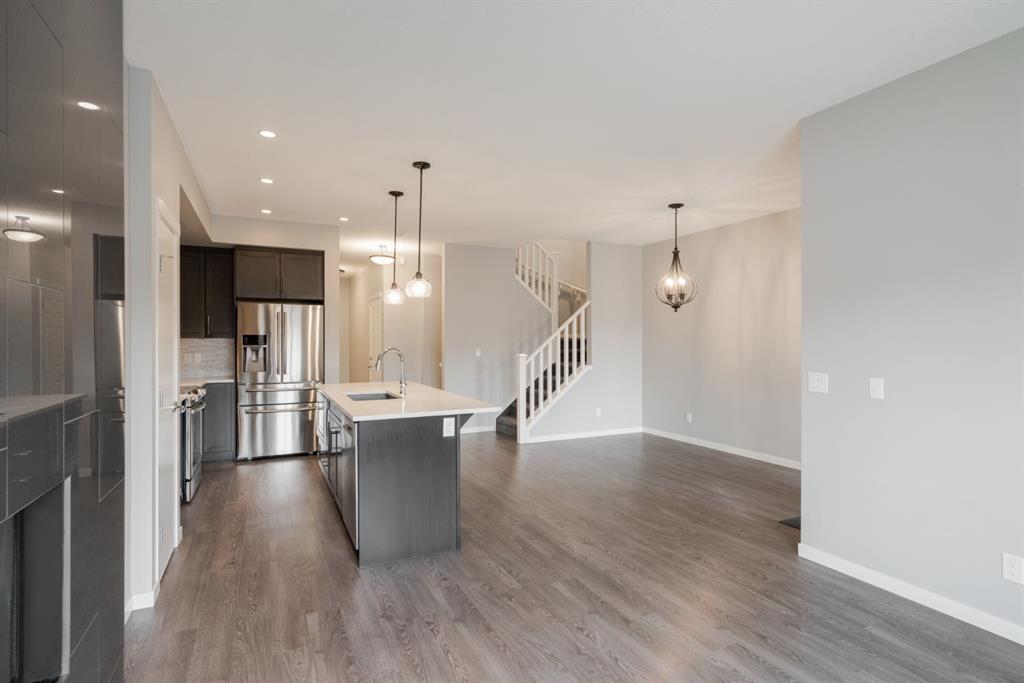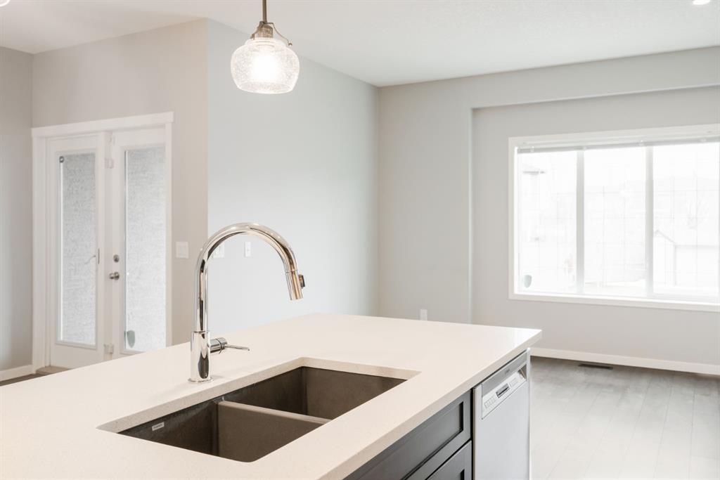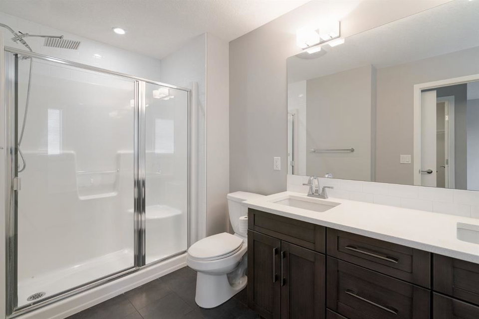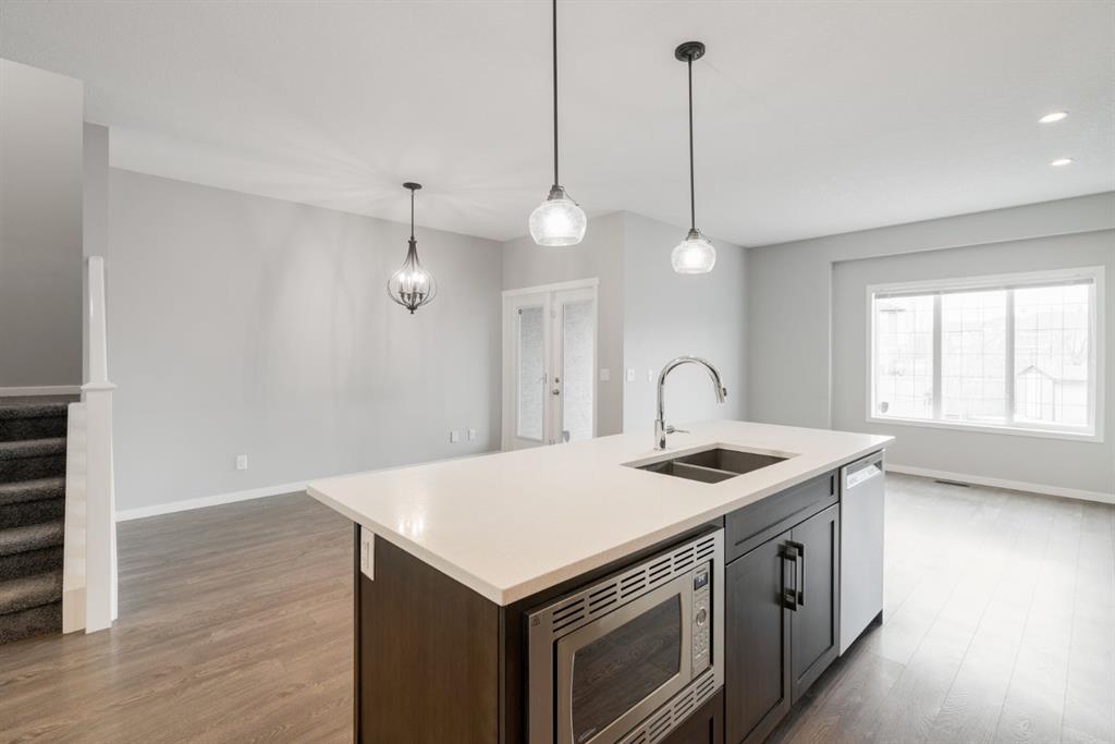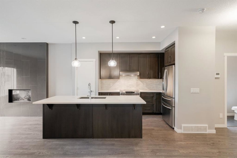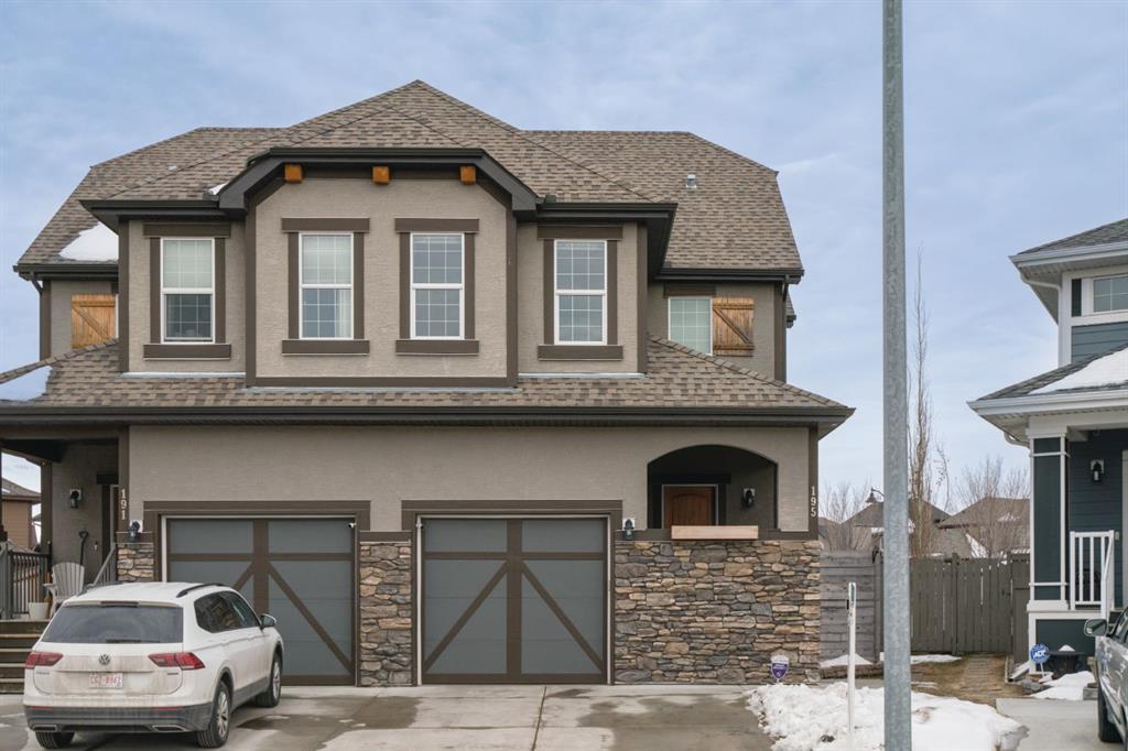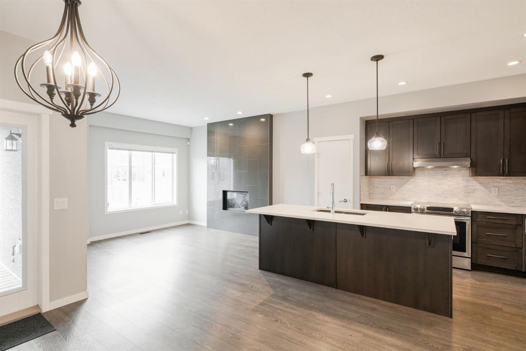 This stunning fully developed home features 2 bedrooms, 3.5 bathrooms, 3 living areas and over 2,200 square feet of living space over three levels, situated on one of the best lots in Mahogany! At over 6,600 square feet, this expansive pie lot is over 2 x larger than a typical lot for this home, giving you an incredible yard to enjoy all year long. The main level is bright and open with resilient laminate flooring flowing throughout. The kitchen is complete with a suite of stainless steel appliances including a slide-in range, range hood, and a microwave built into the island – creating a seamless look and the perfect space for entertaining. The kitchen is complete with quartz countertops and a large island that overlooks both the living and dining spaces, making the perfect space for entertaining. The large living space has a central gas fireplace with floor-to-ceiling tile and a wall of windows that overlook the backyard. The expansive dining space has doors leading to the back deck and overlooking the backyard. The main level is complete with a two piece powder room. The upper level has a large central bonus room with window that separates the upper level bedrooms, providing added privacy. The large primary bedroom located at the front of the home spans over 20′ wide and features a walk-in closet and full 5 pc en suite with soaker tub, walk-in shower and dual vanity. The second primary bedroom is complete with a walk-in closet and direct access to the upper level’s main bathroom and a conveniently located laundry room completes the second level. The professionally developed basement features a large rec space that is completely open. The basement could easily accommodate a third bedroom if desired by adding a wall and the space is complete with another full bathroom. The utility room has an additional storage space, providing added comfort for everyday living. This property is complete with an oversized single attached garage and double driveway, providing ample parking and the perfect space to keep your vehicle and valuables safe all year long. The incredible south-facing backyard is truly a rare find and offers endless potential. A truly unique property find located in the desirable and amenity rich lake community of Mahogany.
