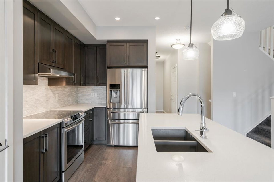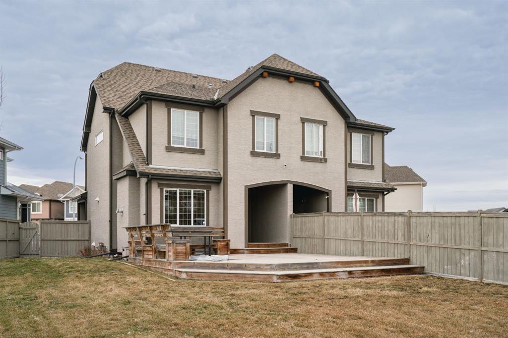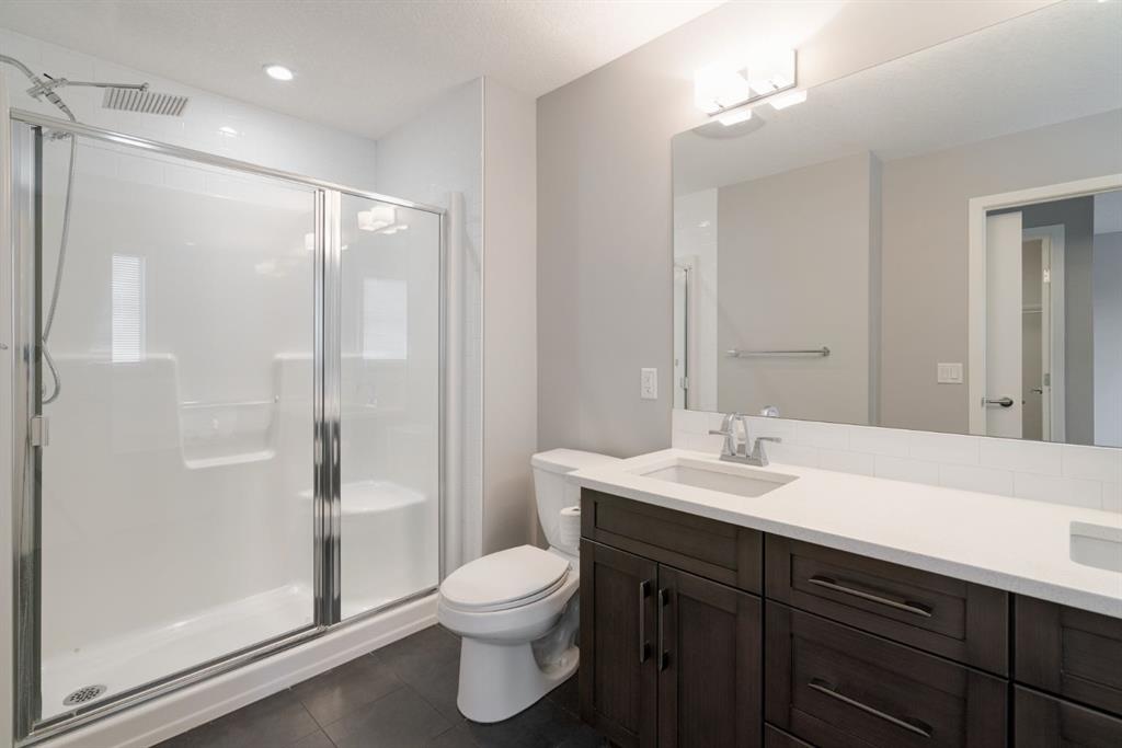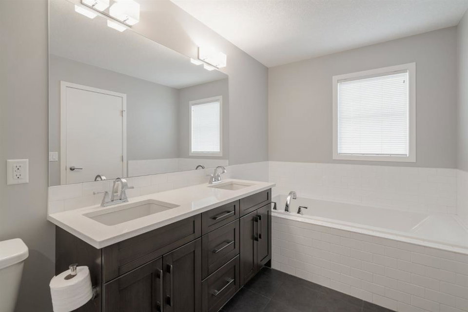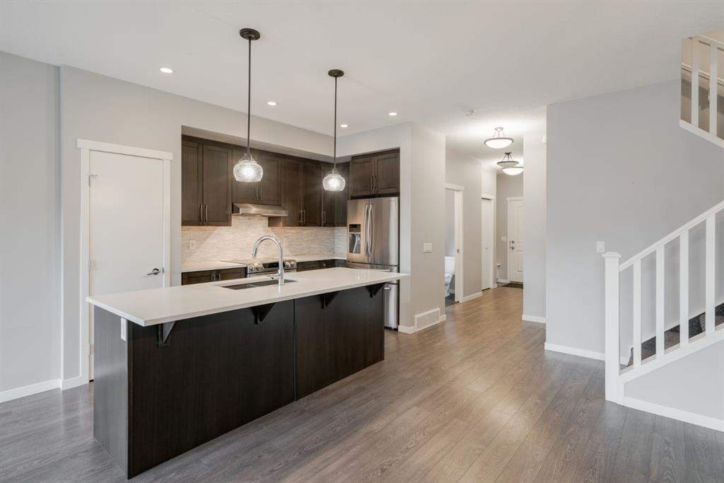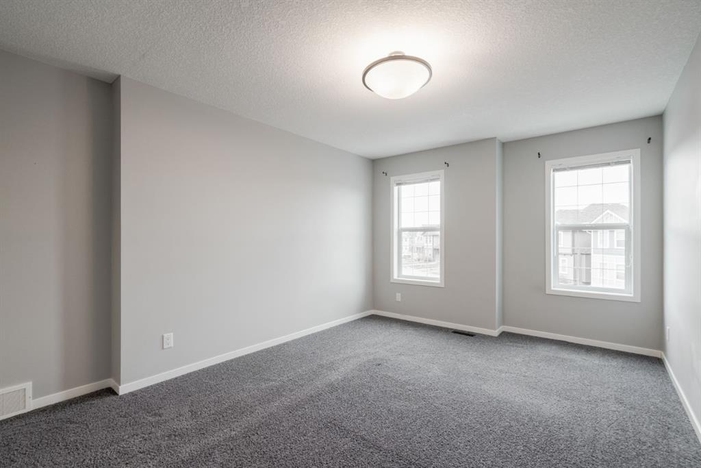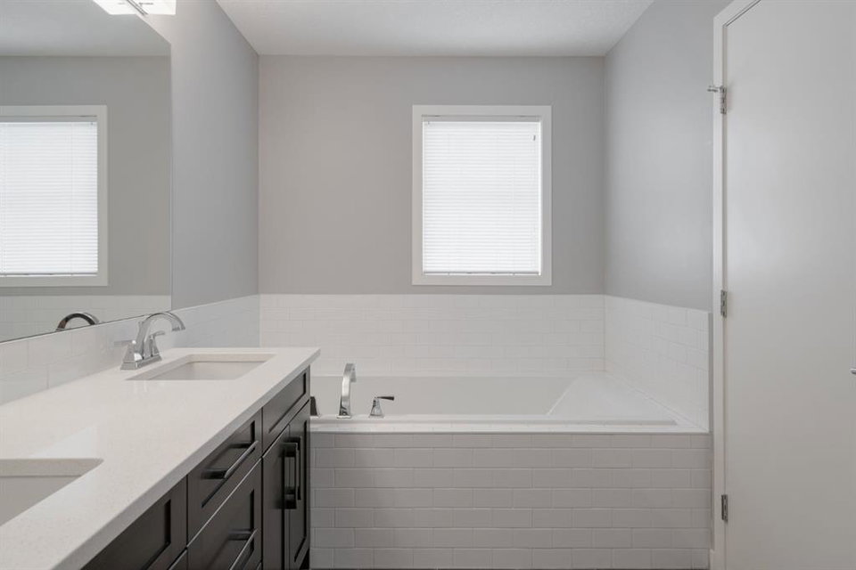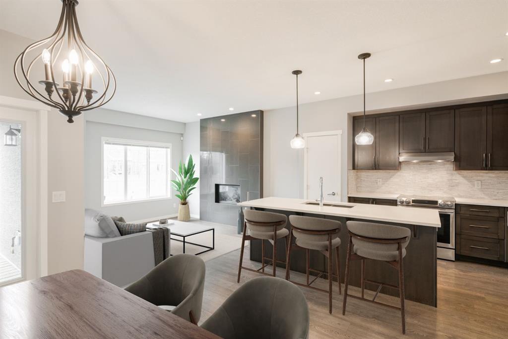 This stunning fully developed home features 2 bedrooms, 3.5 bathrooms, 3 living areas and over 2,200 square feet of living space over three levels, situated on one of the best lots in Mahogany! At over 6,600 square feet, this expansive pie lot is over 2 x larger than a typical lot for this home, giving you an incredible yard to enjoy all year long. The main level is bright and open with resilient laminate flooring flowing throughout. The kitchen is complete with a suite of stainless steel appliances including a slide-in range, range hood, and a microwave built into the island – creating a seamless look and the perfect space for entertaining. The kitchen is complete with quartz countertops and a large island that overlooks both the living and dining spaces, making the perfect space for entertaining. The large living space has a central gas fireplace with floor-to-ceiling tile and a wall of windows that overlook the backyard. The expansive dining space has doors leading to the back deck and overlooking the backyard. The main level is complete with a two piece powder room. The upper level has a large central bonus room with window that separates the upper level bedrooms, providing added privacy. The large primary bedroom located at the front of the home spans over 20′ wide and features a walk-in closet and full 5 pc en suite with soaker tub, walk-in shower and dual vanity. The second primary bedroom is complete with a walk-in closet and direct access to the upper level’s main bathroom and a conveniently located laundry room completes the second level. The professionally developed basement features a large rec space that is completely open. The basement could easily accommodate a third bedroom if desired by adding a wall and the space is complete with another full bathroom. The utility room has an additional storage space, providing added comfort for everyday living. This property is complete with an oversized single attached garage and double driveway, providing ample parking and the perfect space to keep your vehicle and valuables safe all year long. The incredible south-facing backyard is truly a rare find and offers endless potential. A truly unique property find located in the desirable and amenity rich lake community of Mahogany.