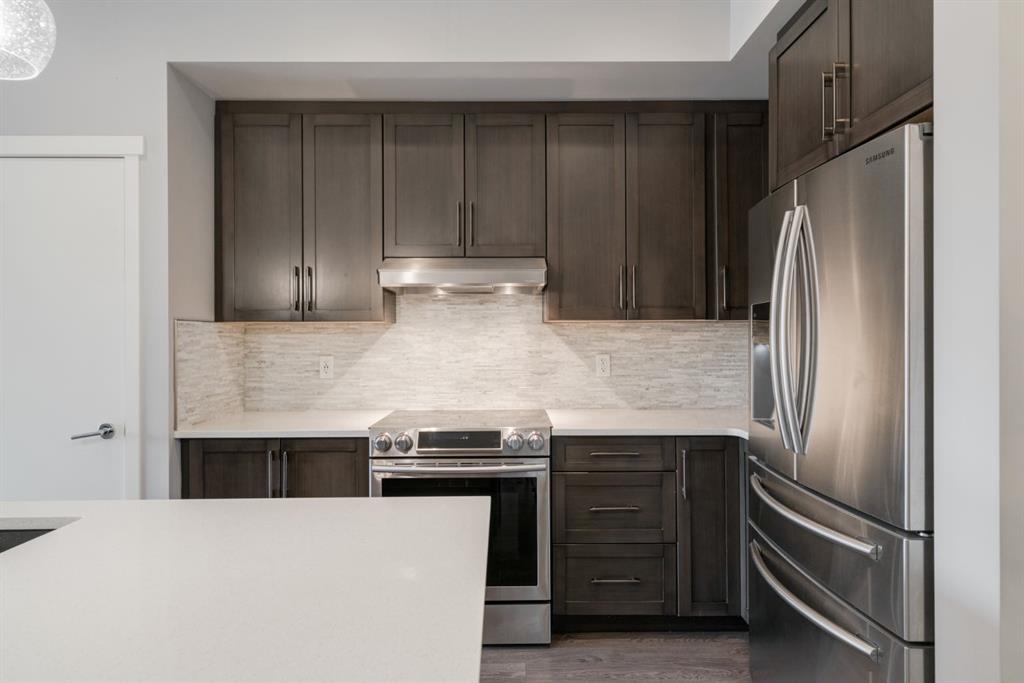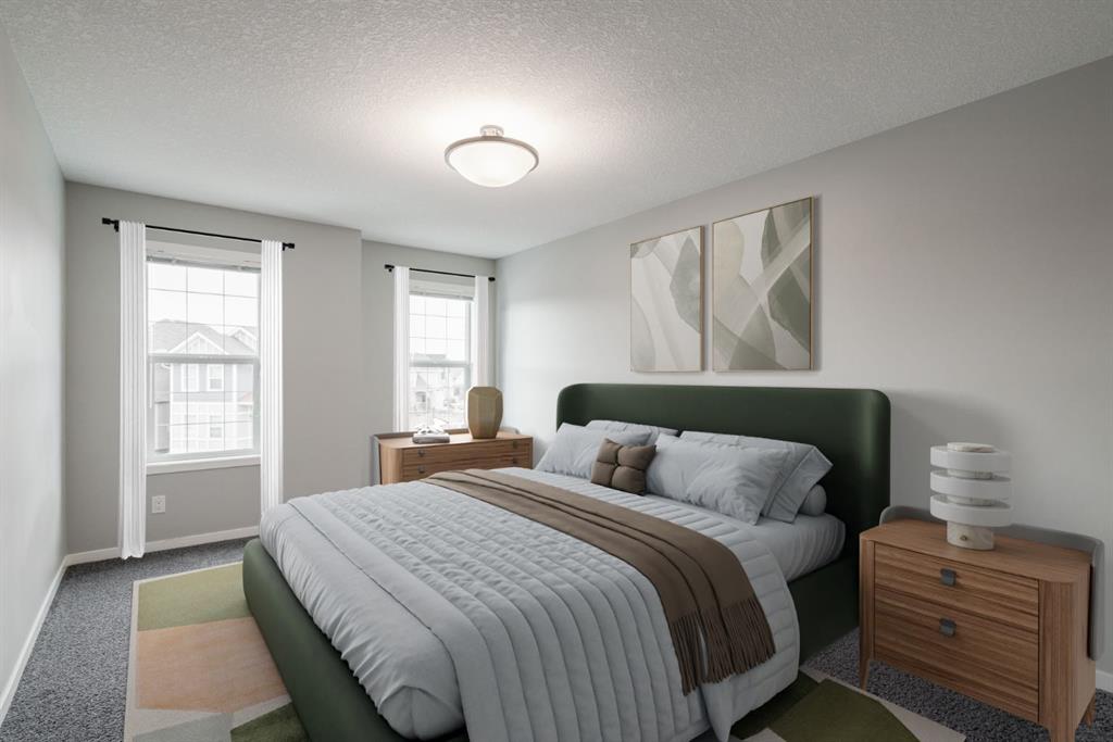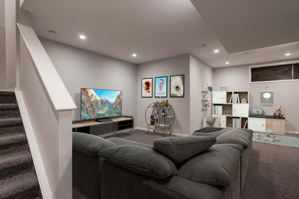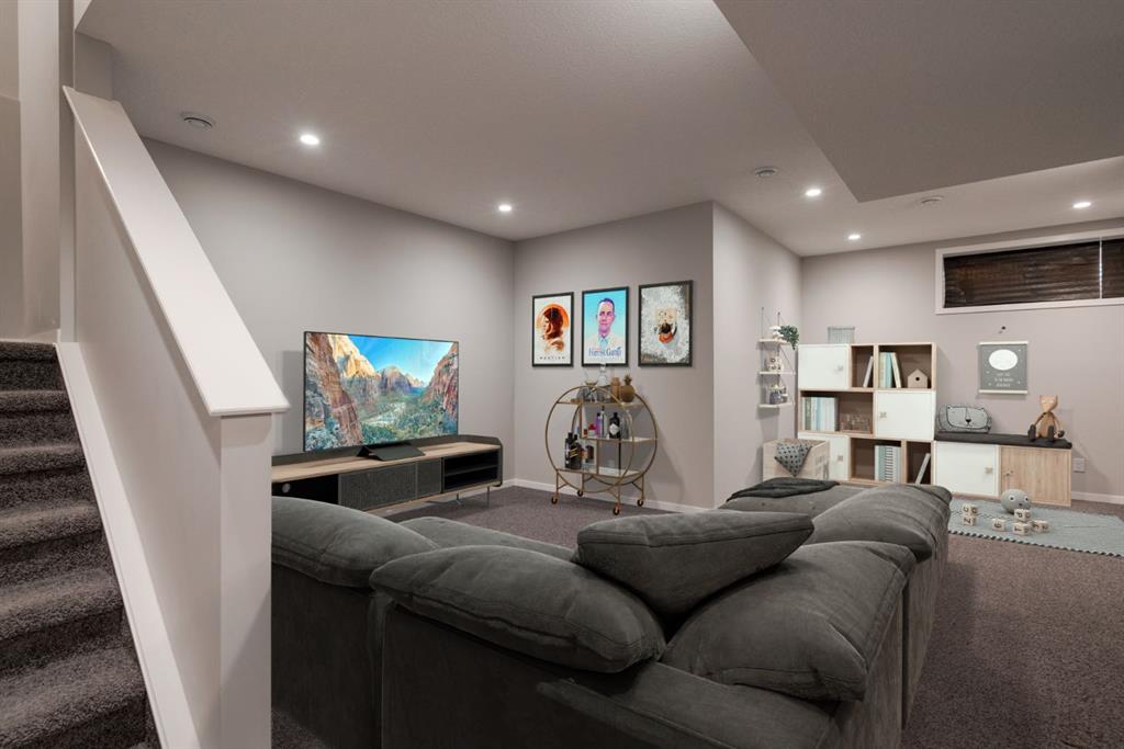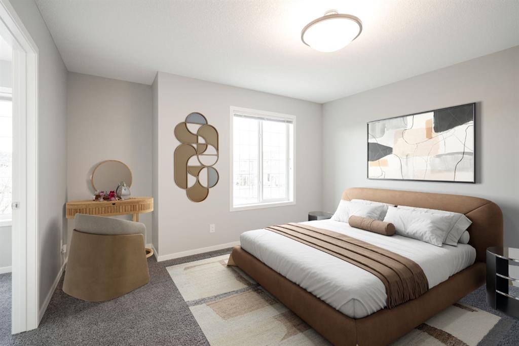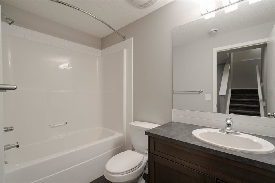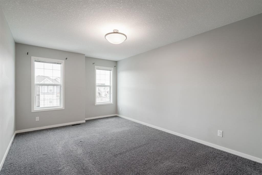 This stunning fully developed home features 2 bedrooms, 3.5 bathrooms, 3 living areas and over 2,200 square feet of living space over three levels, situated on one of the best lots in Mahogany! At over 6,600 square feet, this expansive pie lot is over 2 x larger than a typical lot for this home, giving you an incredible yard to enjoy all year long. The main level is bright and open with resilient laminate flooring flowing throughout. The kitchen is complete with a suite of stainless steel appliances including a slide-in range, range hood, and a microwave built into the island – creating a seamless look and the perfect space for entertaining. The kitchen is complete with quartz countertops and a large island that overlooks both the living and dining spaces, making the perfect space for entertaining. The large living space has a central gas fireplace with floor-to-ceiling tile and a wall of windows that overlook the backyard. The expansive dining space has doors leading to the back deck and overlooking the backyard. The main level is complete with a two piece powder room. The upper level has a large central bonus room with window that separates the upper level bedrooms, providing added privacy. The large primary bedroom located at the front of the home spans over 20′ wide and features a walk-in closet and full 5 pc en suite with soaker tub, walk-in shower and dual vanity. The second primary bedroom is complete with a walk-in closet and direct access to the upper level’s main bathroom and a conveniently located laundry room completes the second level. The professionally developed basement features a large rec space that is completely open. The basement could easily accommodate a third bedroom if desired by adding a wall and the space is complete with another full bathroom. The utility room has an additional storage space, providing added comfort for everyday living. This property is complete with an oversized single attached garage and double driveway, providing ample parking and the perfect space to keep your vehicle and valuables safe all year long. The incredible south-facing backyard is truly a rare find and offers endless potential. A truly unique property find located in the desirable and amenity rich lake community of Mahogany.