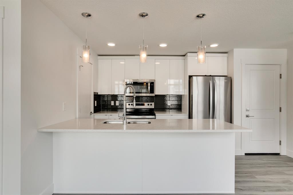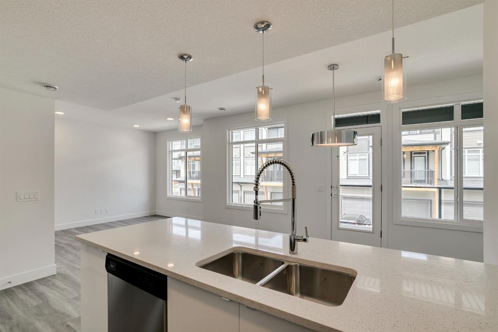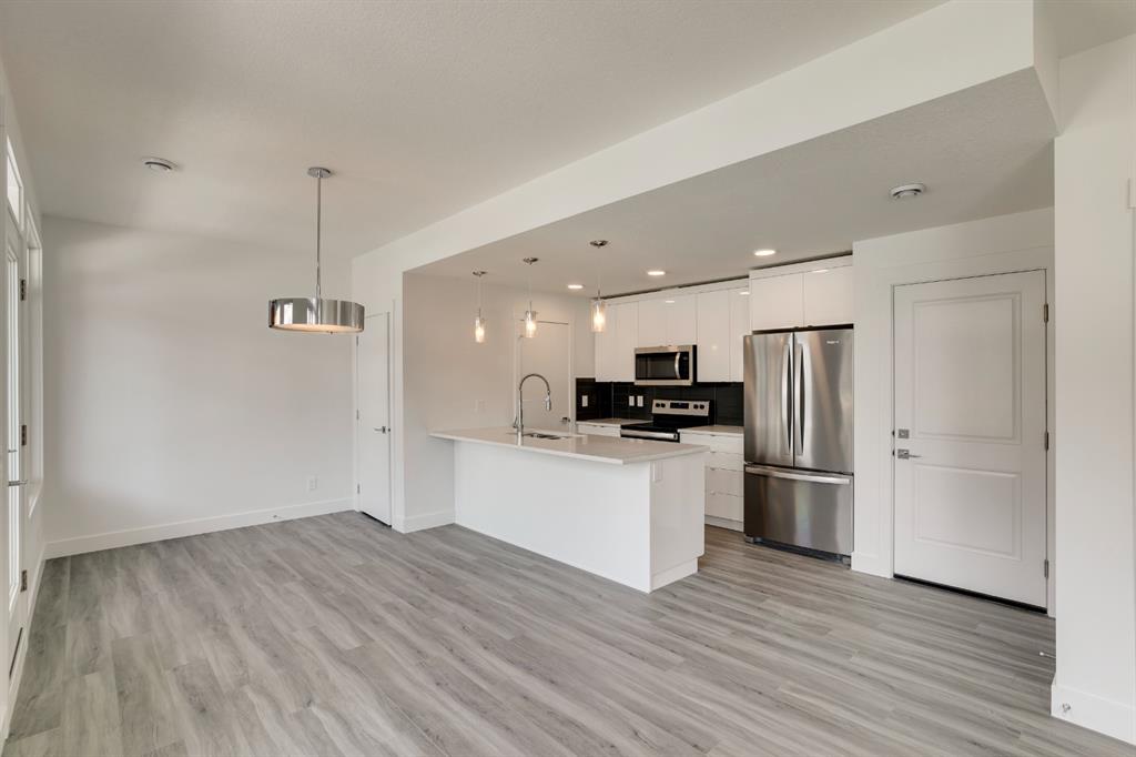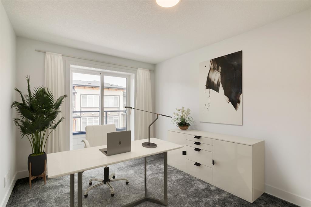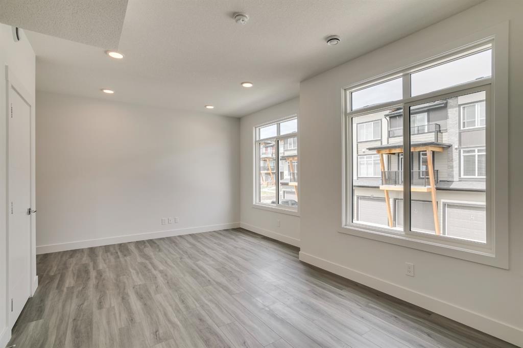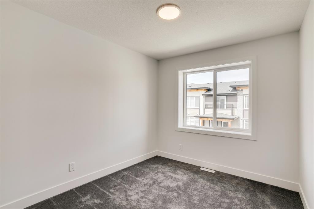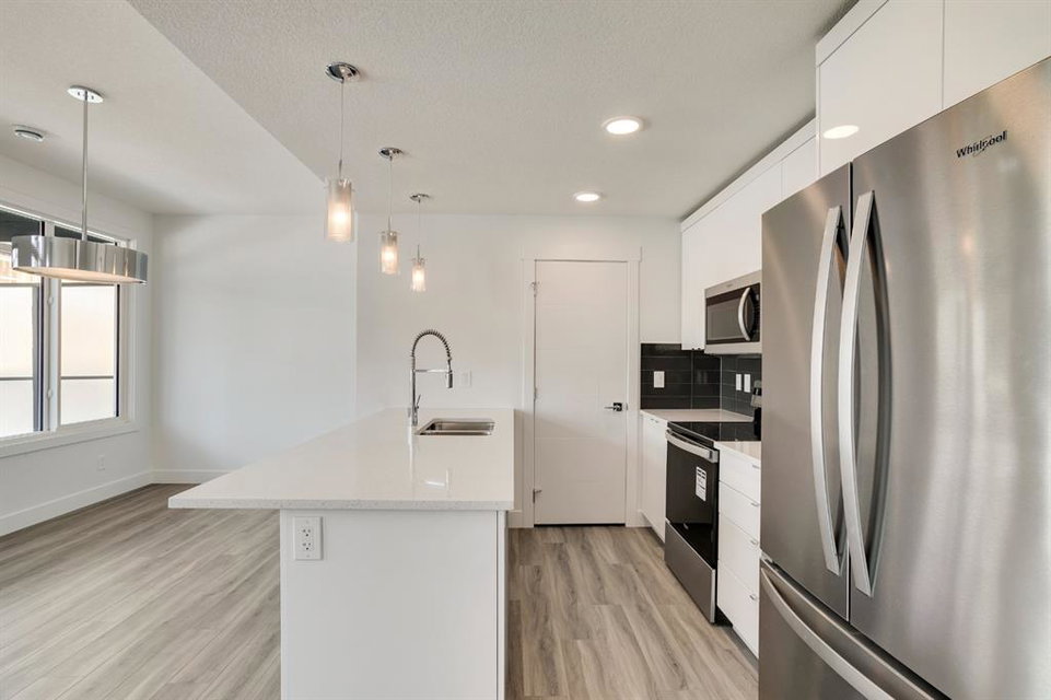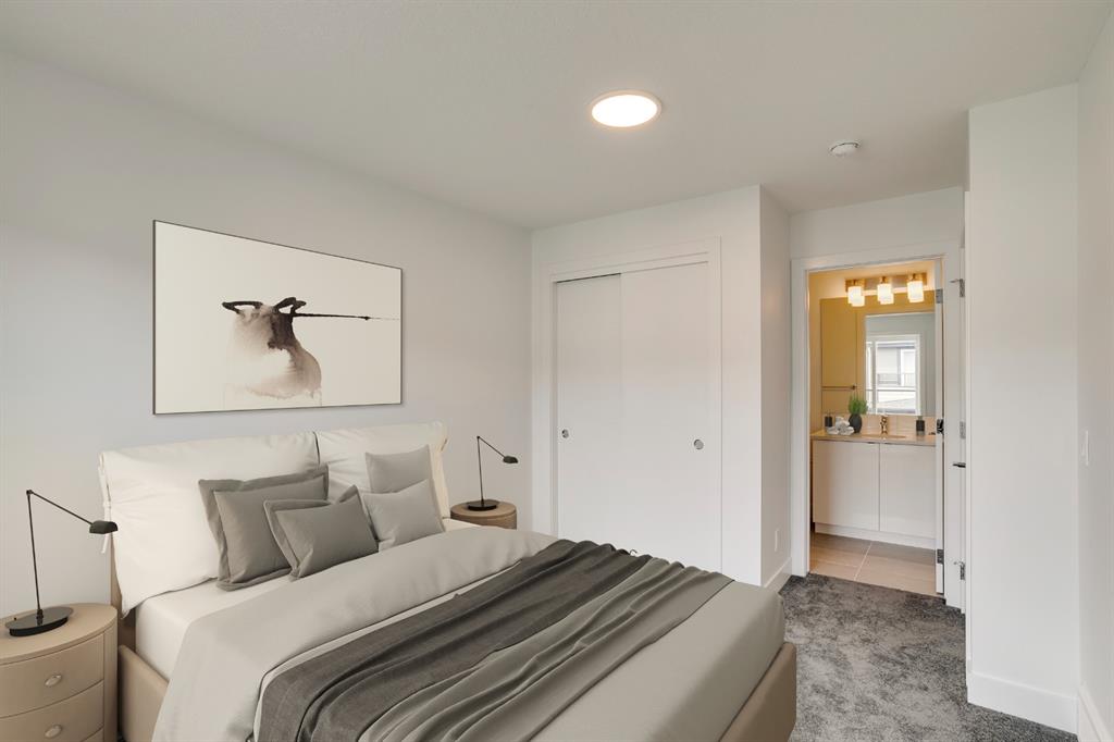 The ‘Birch’ Built by Rohit Communities, one of Alberta’s largest homebuilders is a beautifully designed townhouse combining functionality and design, feeling more like a single-family home than a townhouse. Finished in the ‘Glass Tower’ interior, this intelligently designed open-concept main living area provides the perfect space for entertaining. The large kitchen is open to living and dining areas with walls of windows, providing a bright and timeless space. The kitchen features sleek high gloss white cabinetry with quartz countertops, designer fixtures, stainless steel appliances, and laminate flooring in the living space and tiled bathroom floors. The upper level has a large master bedroom with a private en suite & 2comfortable bedrooms ideal for guests or as a home office area. Completing the upper level is a laundry room and a full bathroom. To top it off this home as a hard to find double attached garage with space for 2 vehicles + storage space. *Please note: the property is under construction and photos are from a show suite.