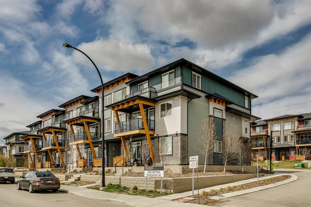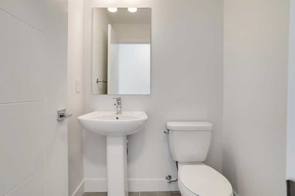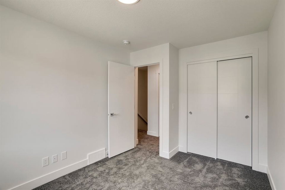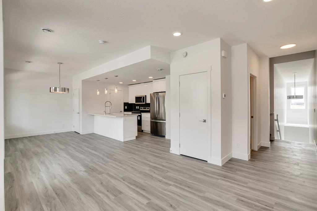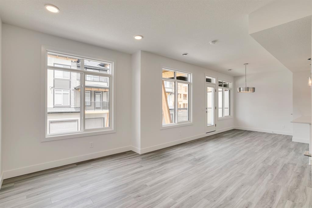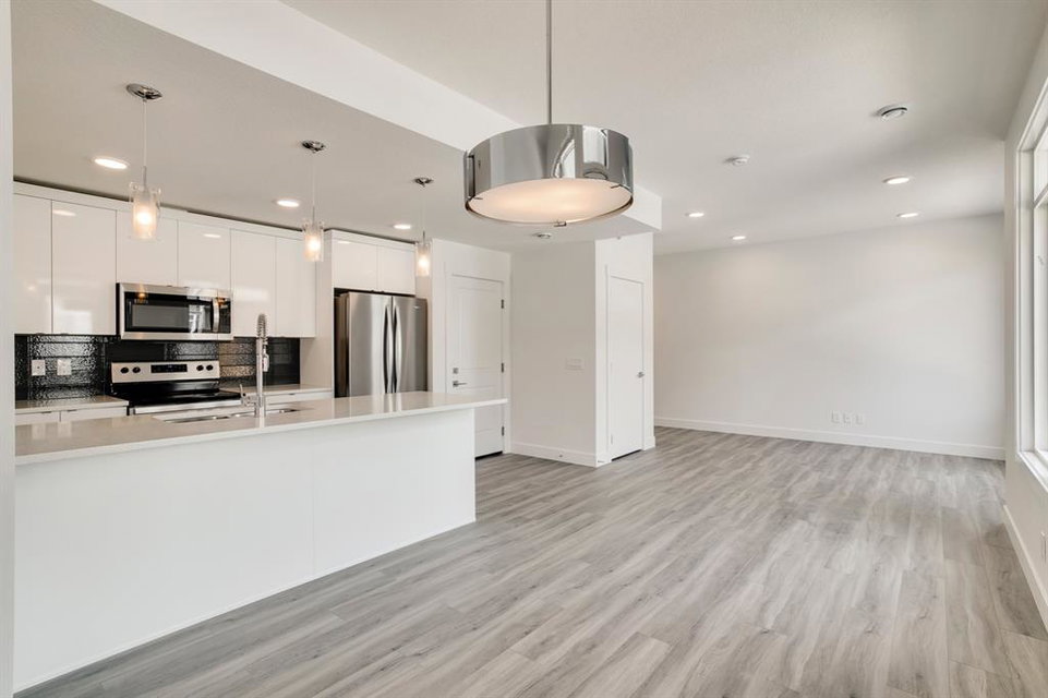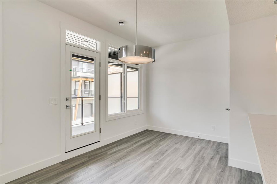 **END UNIT. The ‘Birch’ Built by Rohit Communities, one of Alberta’s largest homebuilders is a beautifully designed townhouse combining functionality and design, feeling more like a single-family home than a townhouse. Finished in the ‘Boho Chic’ interior, this intelligently designed open-concept main living area provides the perfect space for entertaining. The large kitchen is open to living and dining areas with walls of windows, providing a bright and timeless space. The kitchen features Two-tone white upper and blue base cabinets and gold hardware complimented with quartz countertops, designer fixtures, stainless-steel appliances, and laminate flooring in the living space and tiled bathroom floors. The upper level has a large master bedroom with a private ensuite & 2 comfortable bedrooms ideal for guests or as a home office area. Completing the upper level is a laundry room and a full bathroom. To top it off this home as a hard to find double attached garage with space for 2 vehicles + storage space. *Please note: property is under construction and photos are from a show suite. Actual homes finish will vary.