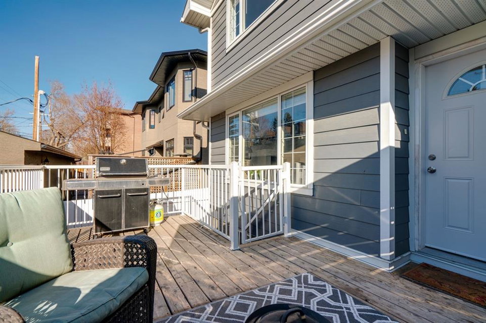 An incredible opportunity to own a desirable Richmond/Killarney townhome. This 3 bedroom, 2.5 bathroom fully developed property is conveniently located steps away from 17th Avenue and the countless nearby amenities of the beltline and the downtown core. Hardwood flooring flows throughout the open concept main level which is perfect for entertaining. The large kitchen is equipped with ample cabinet space, an eat-in bar and a large corner pantry. The kitchen overlooks both the dining and living areas and large windows at the rear of the home allow natural light to pour through the space all day. A gas fireplace completes the main living area and is perfect for cozy winter nights. A main level powder room and main floor laundry provide added convenience for daily living. The skylight allows natural light to flow through to the second level down to the main floor providing additional natural light. The primary bedroom has plenty space for a desk or nursery, large west-facing windows, a walk-in closet and private en suite access. A second bedroom with walk-in closets and a large bathroom featuring a jetted soaker tub, walk-in shower and additional storage complete the upper level. The basement is fully developed with a large rec area / flex space, perfect for a media area or home gym. The lower-level bedroom with en suite creates the perfect space for a home office or studio. Additional storage is available in the basement. Keep your car safe all year long in the detached single garage. This incredibly well-maintained townhouse complex has a brand new Hardie Board exterior and has been completely updated including a new private west facing rear deck to capture all the summer sun. This home is fully move-in ready with new paint in the entire home. The home is bright, the location is perfect, the condo fees are low, and the costly exterior work has been completed. Come see all this property has to offer today!